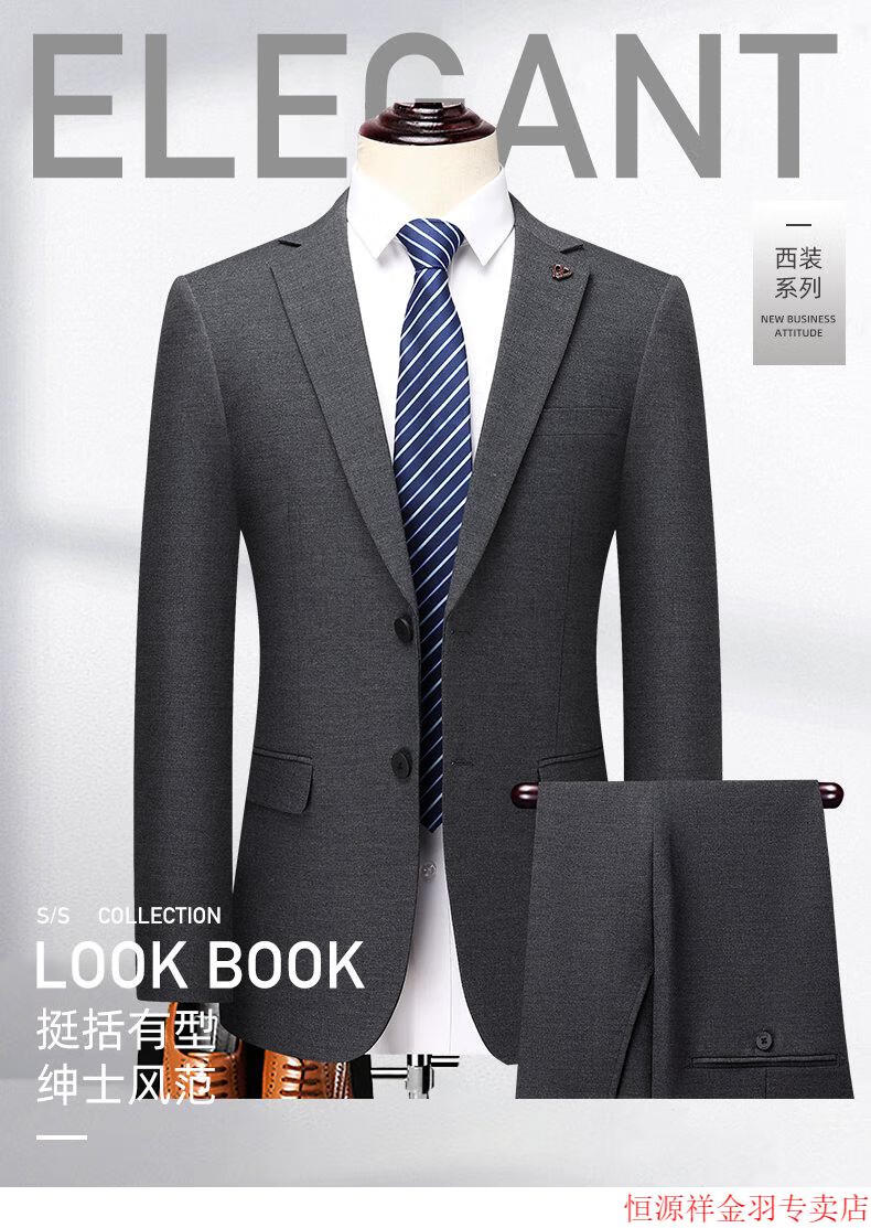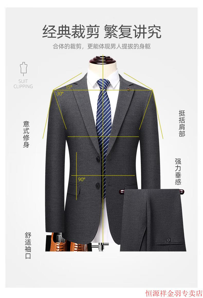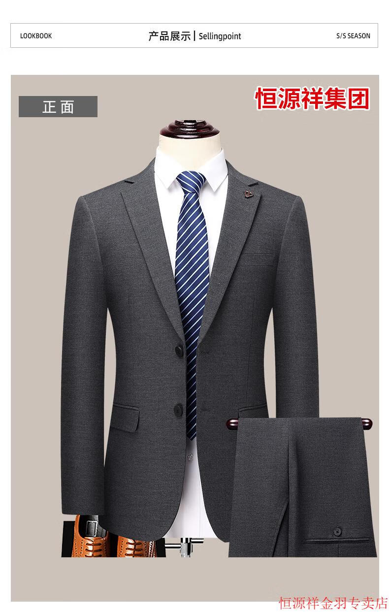 Hengyuanxiang autumn and winter solid color versatile wool suit suit for middle-aged men's banquet business slim formal suit without ironing gray suit 170/M recommended 100-120 Jin Jin equals 0.5 kg