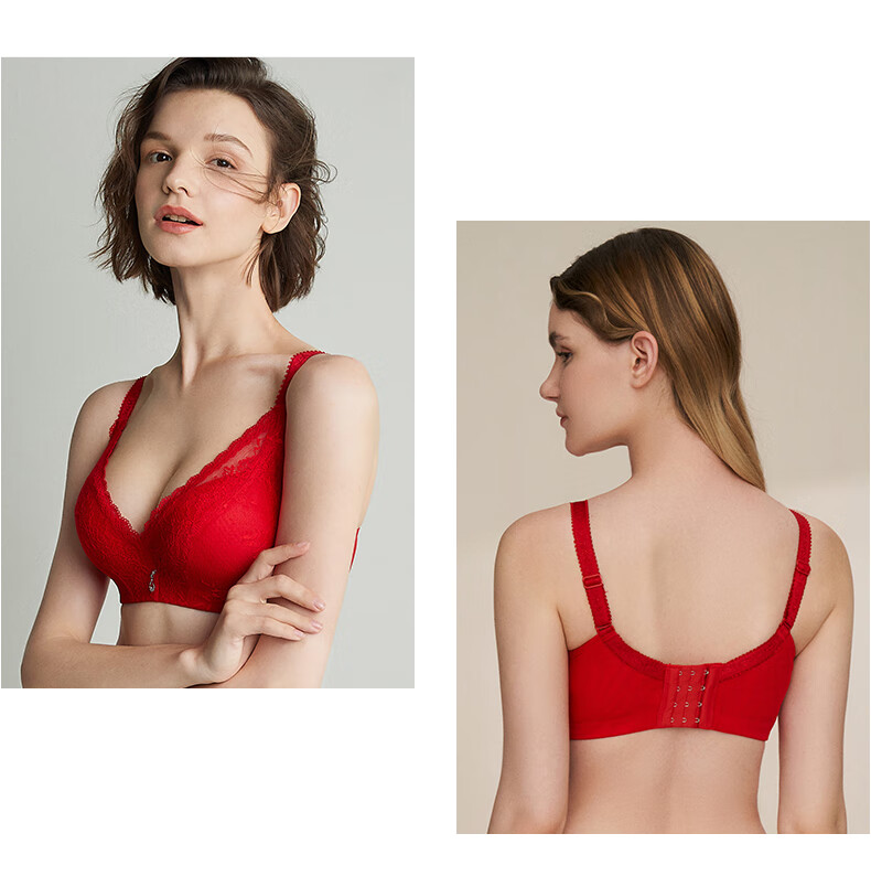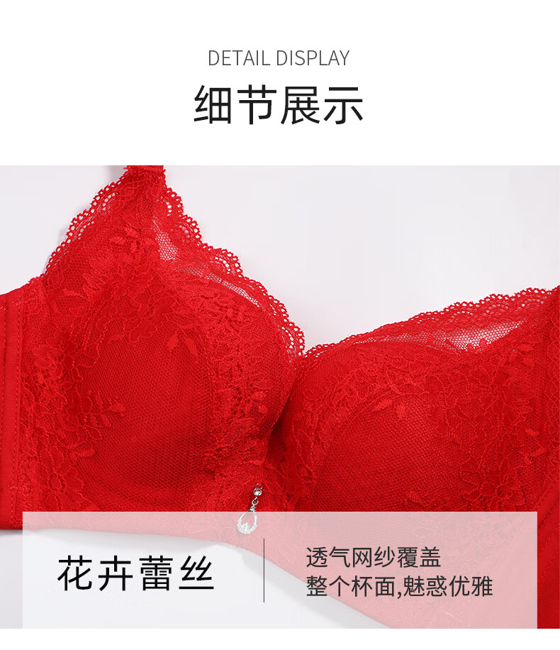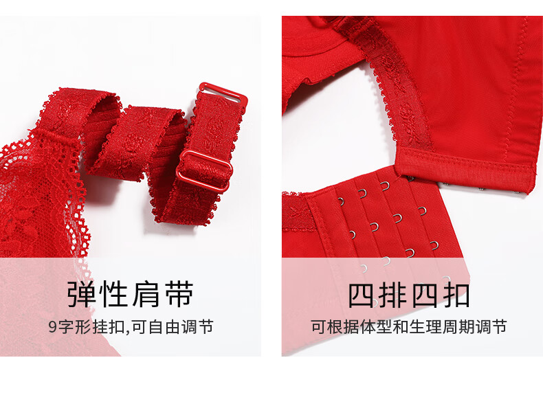 Eve's Show Zodiac Year Women's Red Underwear Set Push-Up Adjustable Lace Push-up Showing Breast Bra Panties Dark Red Set (3773) 85C /38C