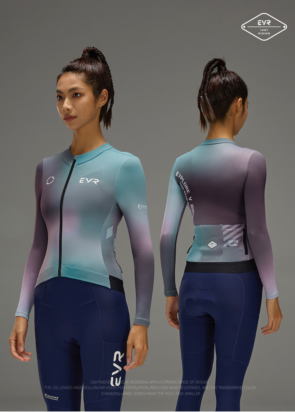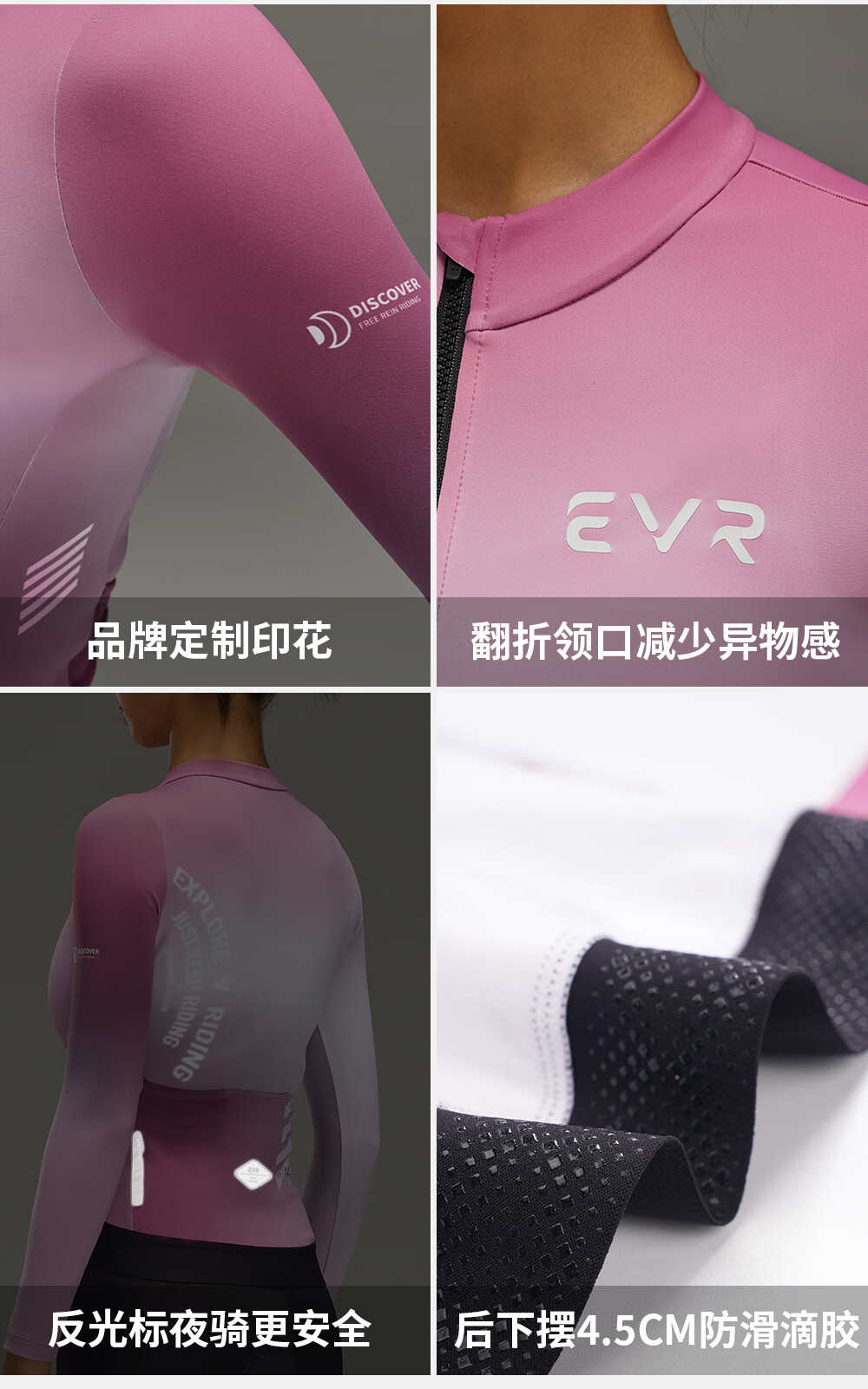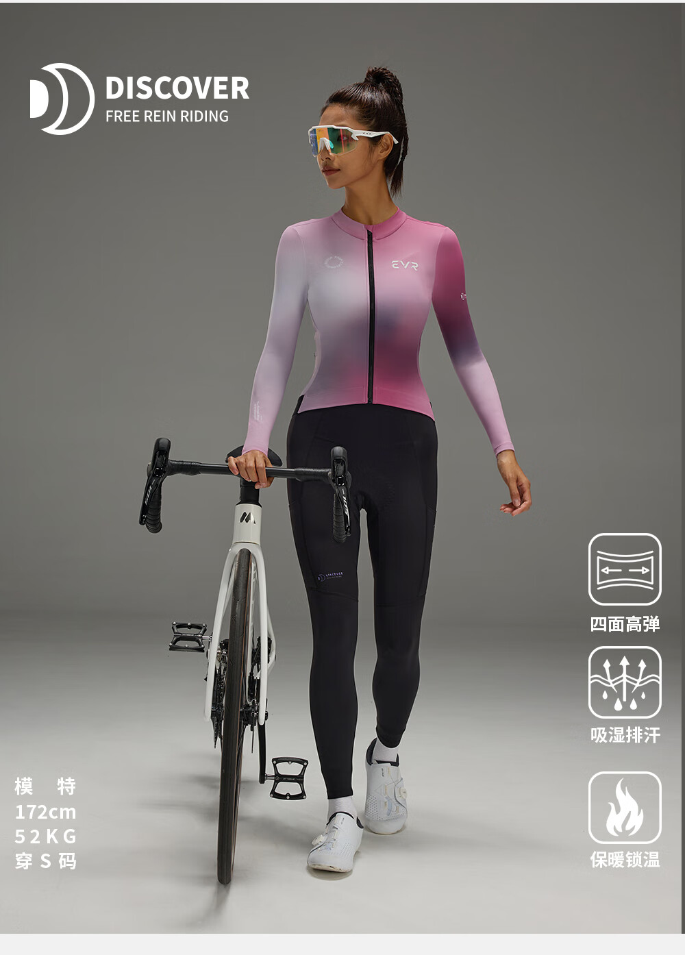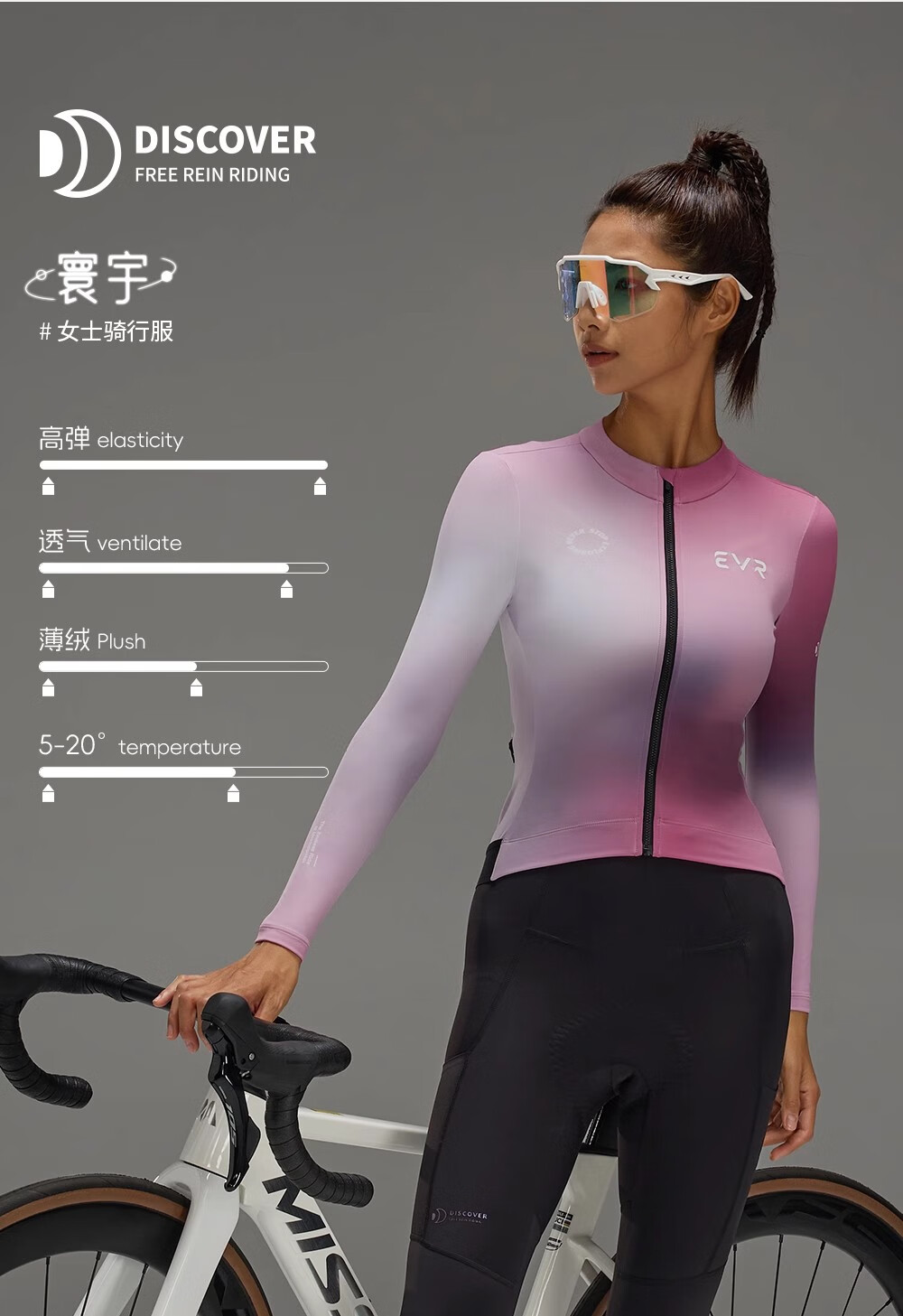 EVR Winter Cycling Suit Women's Discover Fleece High Elastic Moisture Absorption Professional Cycling Road Tops Shuo Huan Huan Yu - Gradient Pink M