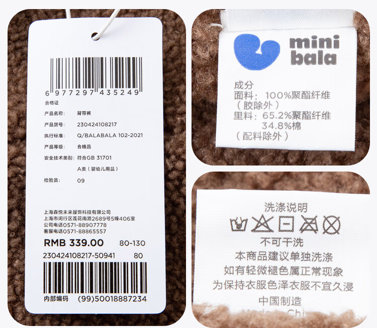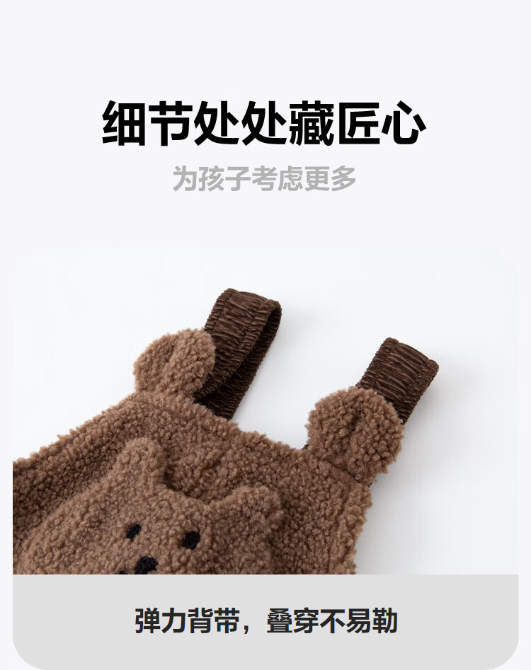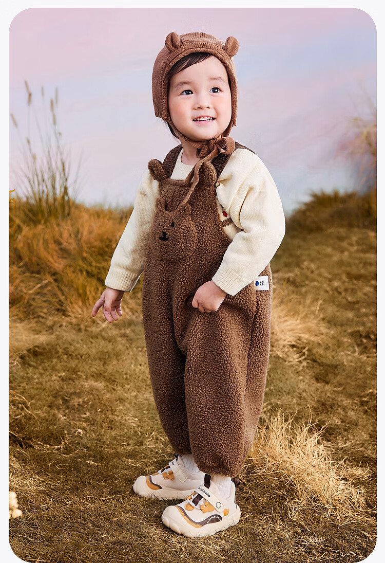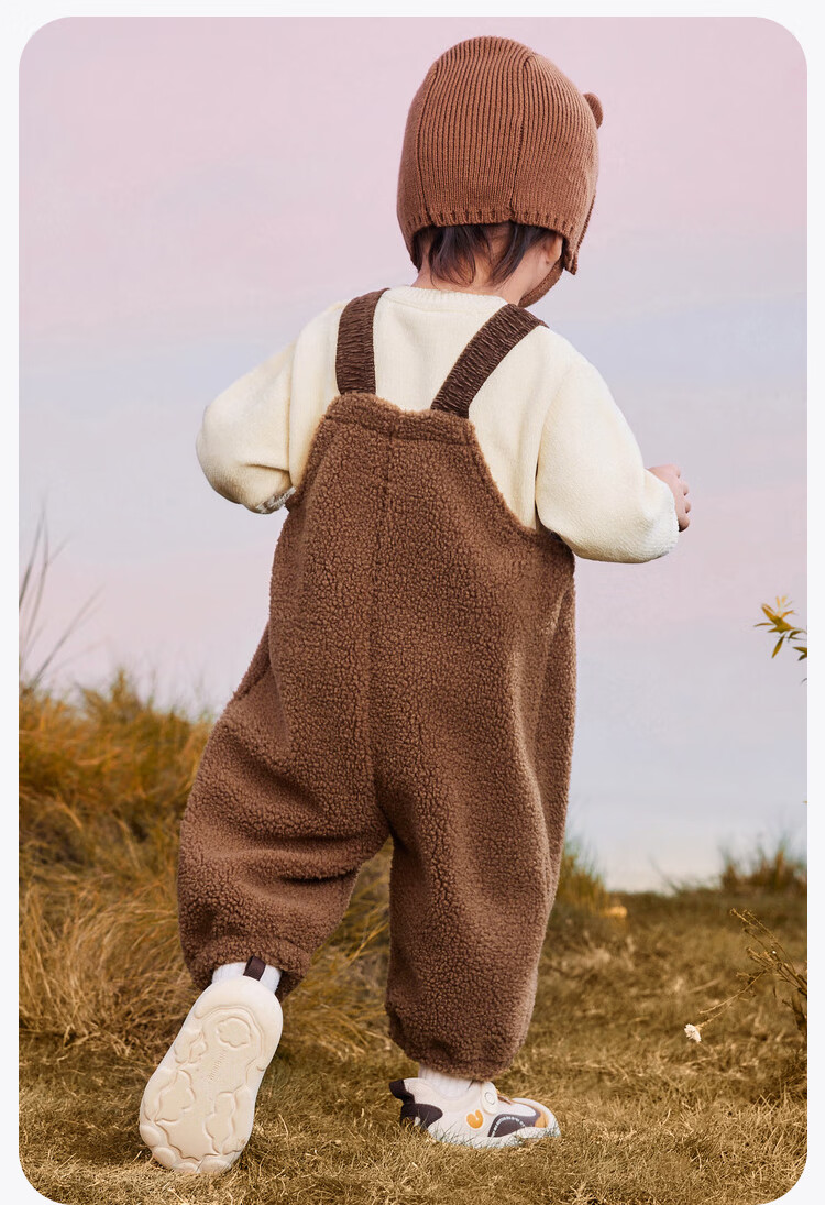 Mini Bala overalls, new winter double-sided velvet pants for boys and girls, warm styling trousers, dark coffee 50941 90
