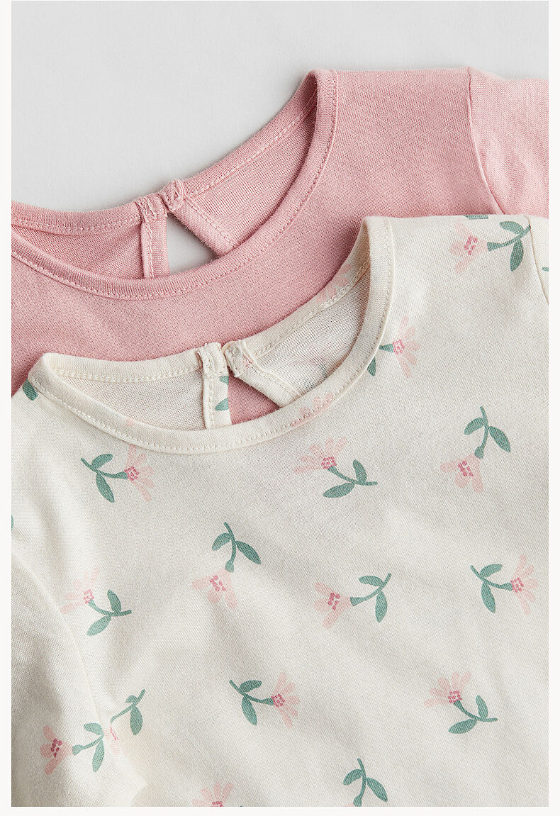 H&M children's clothing baby girl T-shirt 2-pack printed soft and simple cotton long-sleeved inner layering shirt 1236886 light pink/flower 80 80/48 (9-12M)