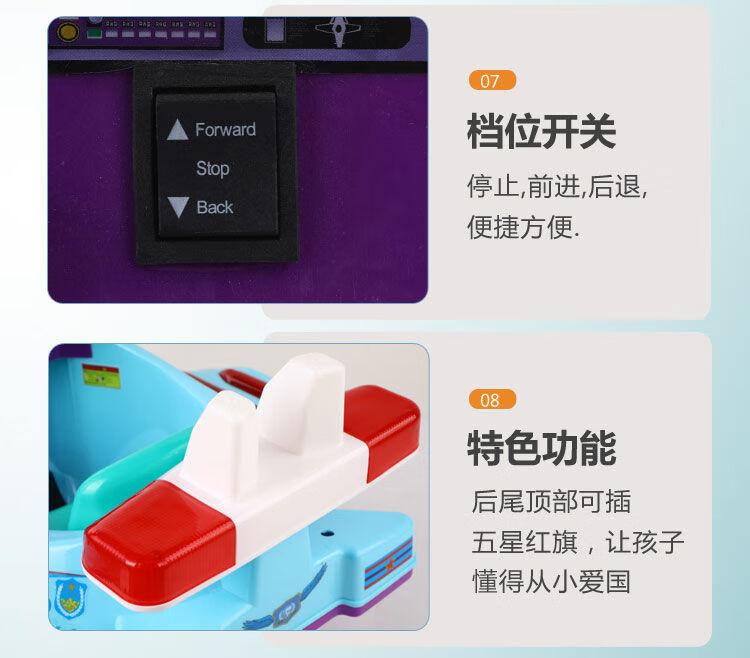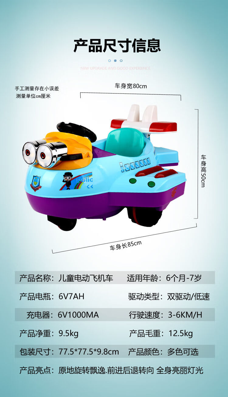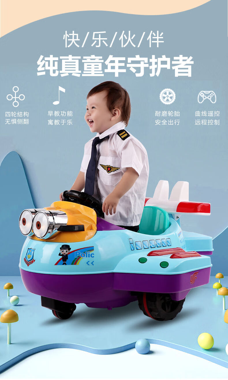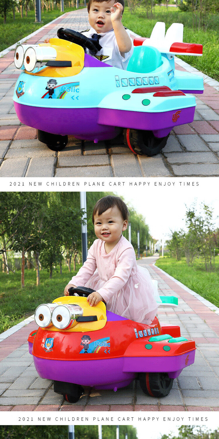 Jingxuan children's large airplane toy can sit on children's electric toy car for infants and young children, male and female babies, remote control car, upgraded special version blue + 12V battery enhancement, car head can be replaced + remote control, dual drive