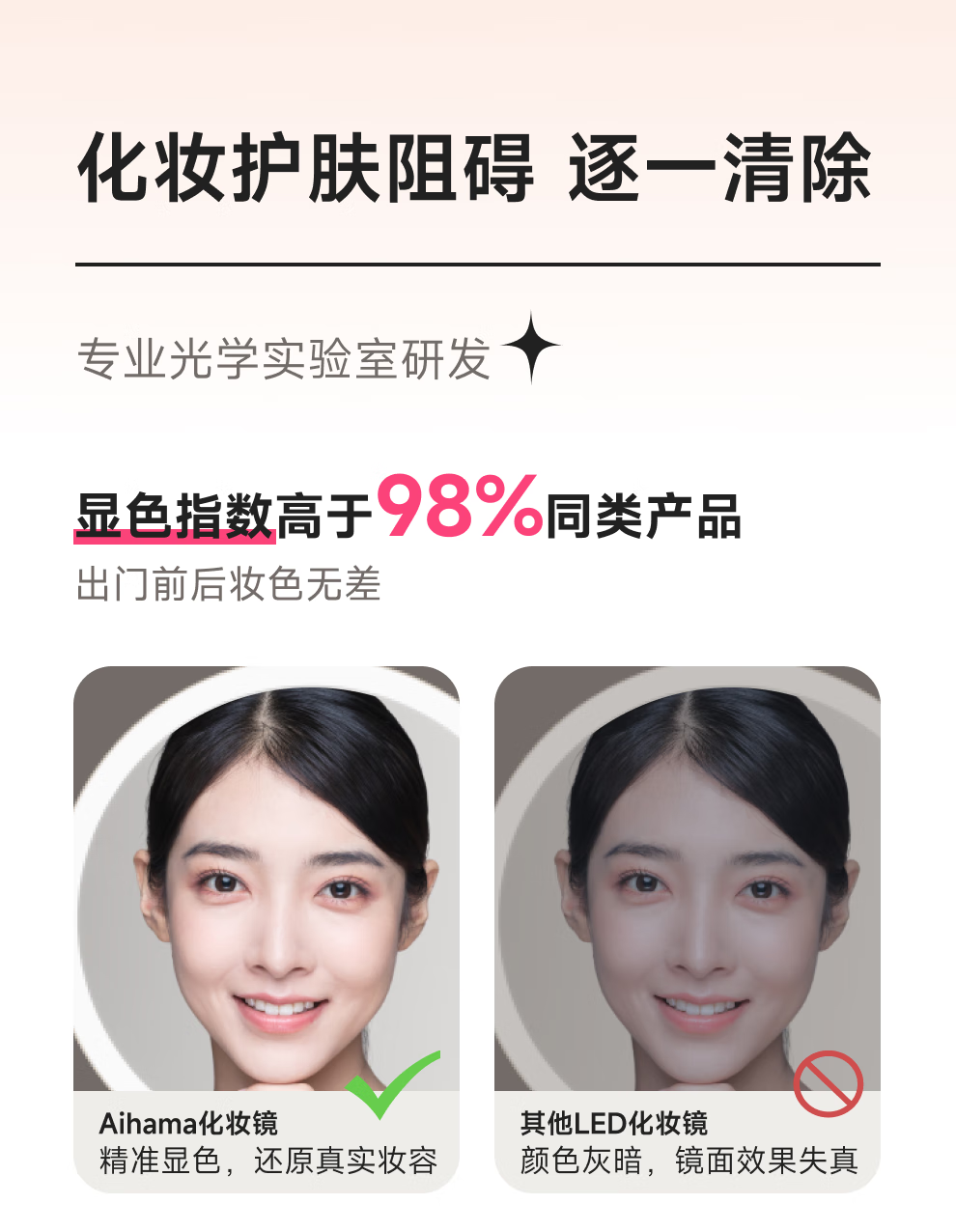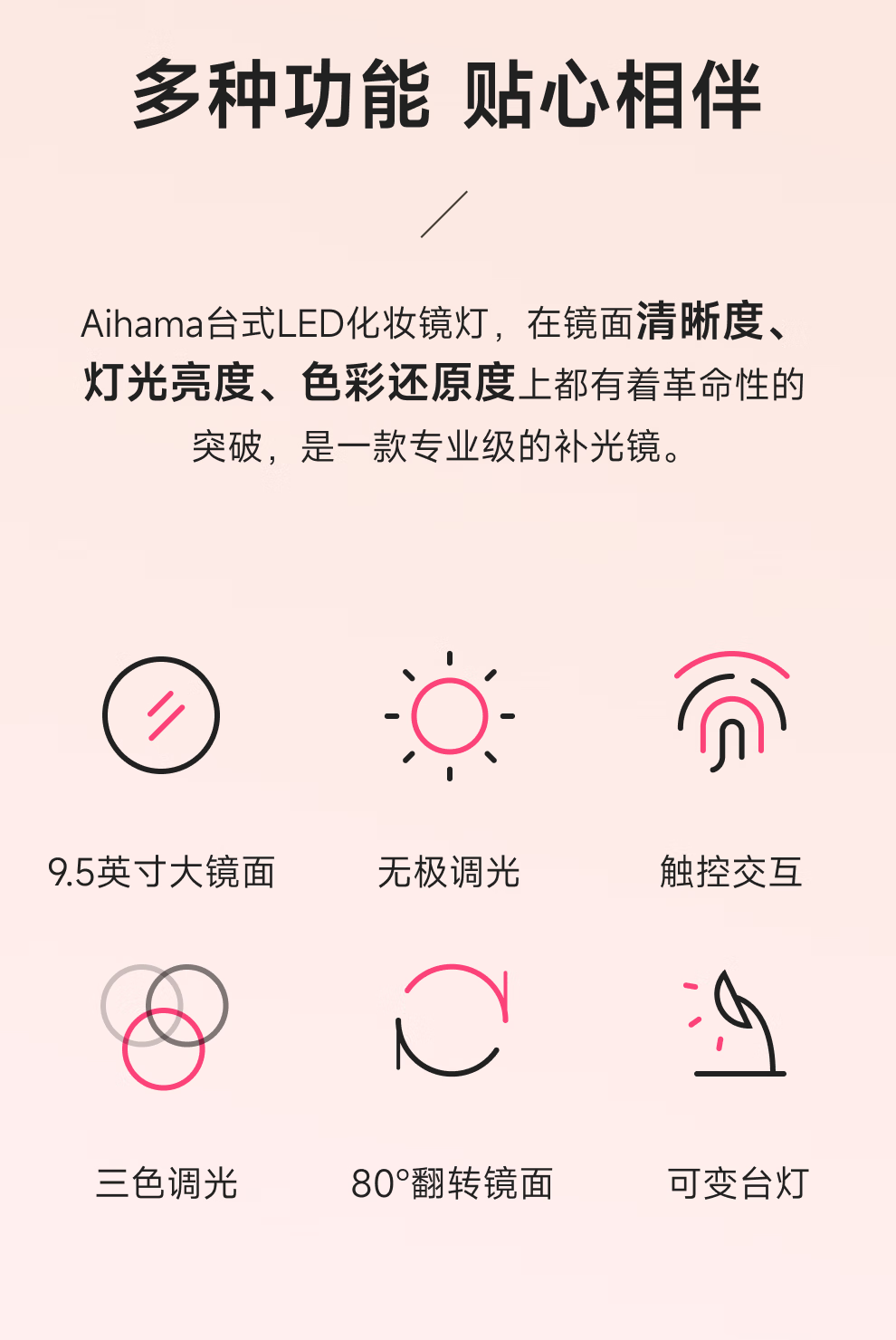 Aihama Makeup Mirror with Light Mirror Desktop Makeup Mirror Smart LED Internet Celebrity Makeup Mirror for Valentine's Day for Girlfriend and Wife, Lotus Color