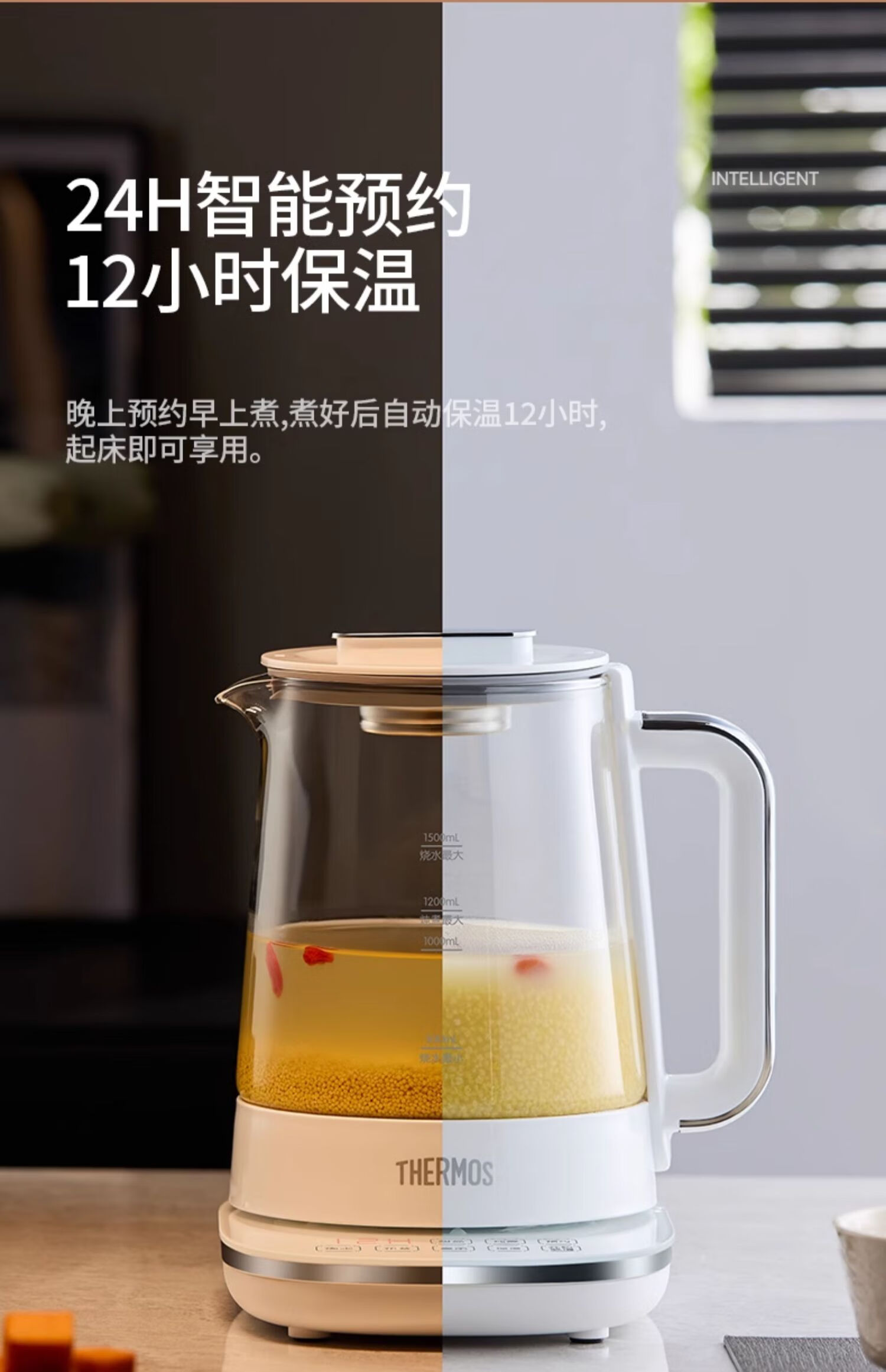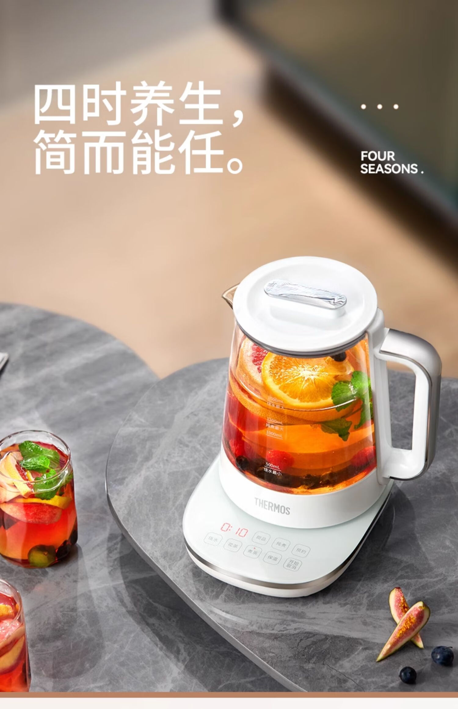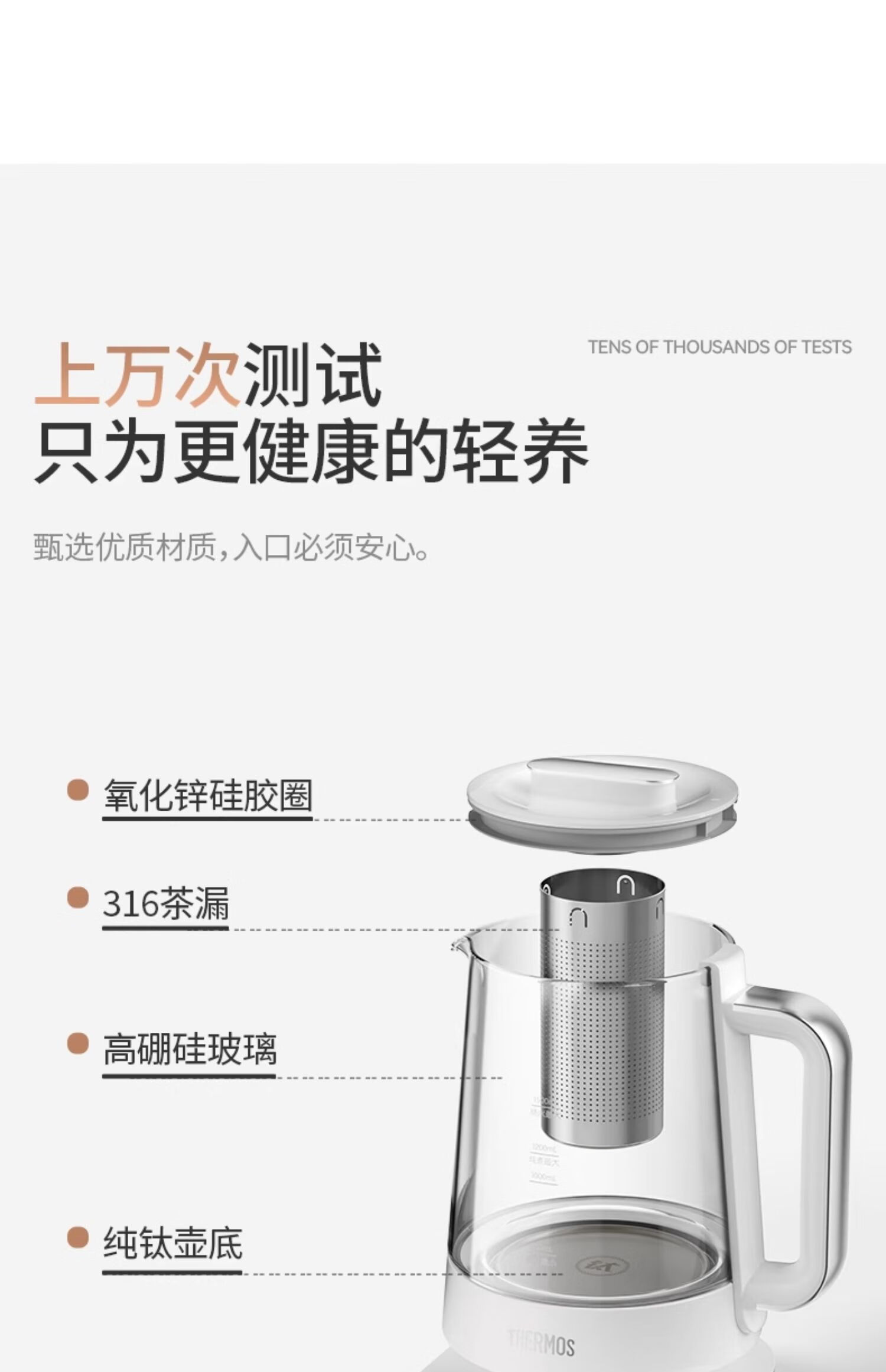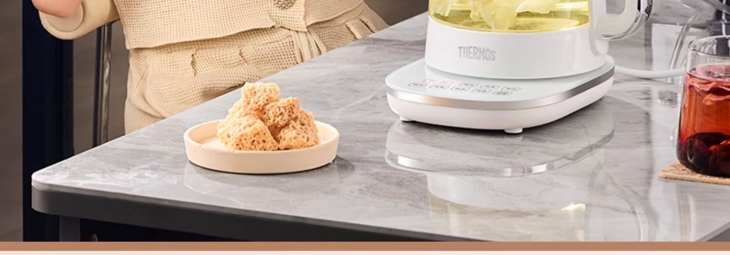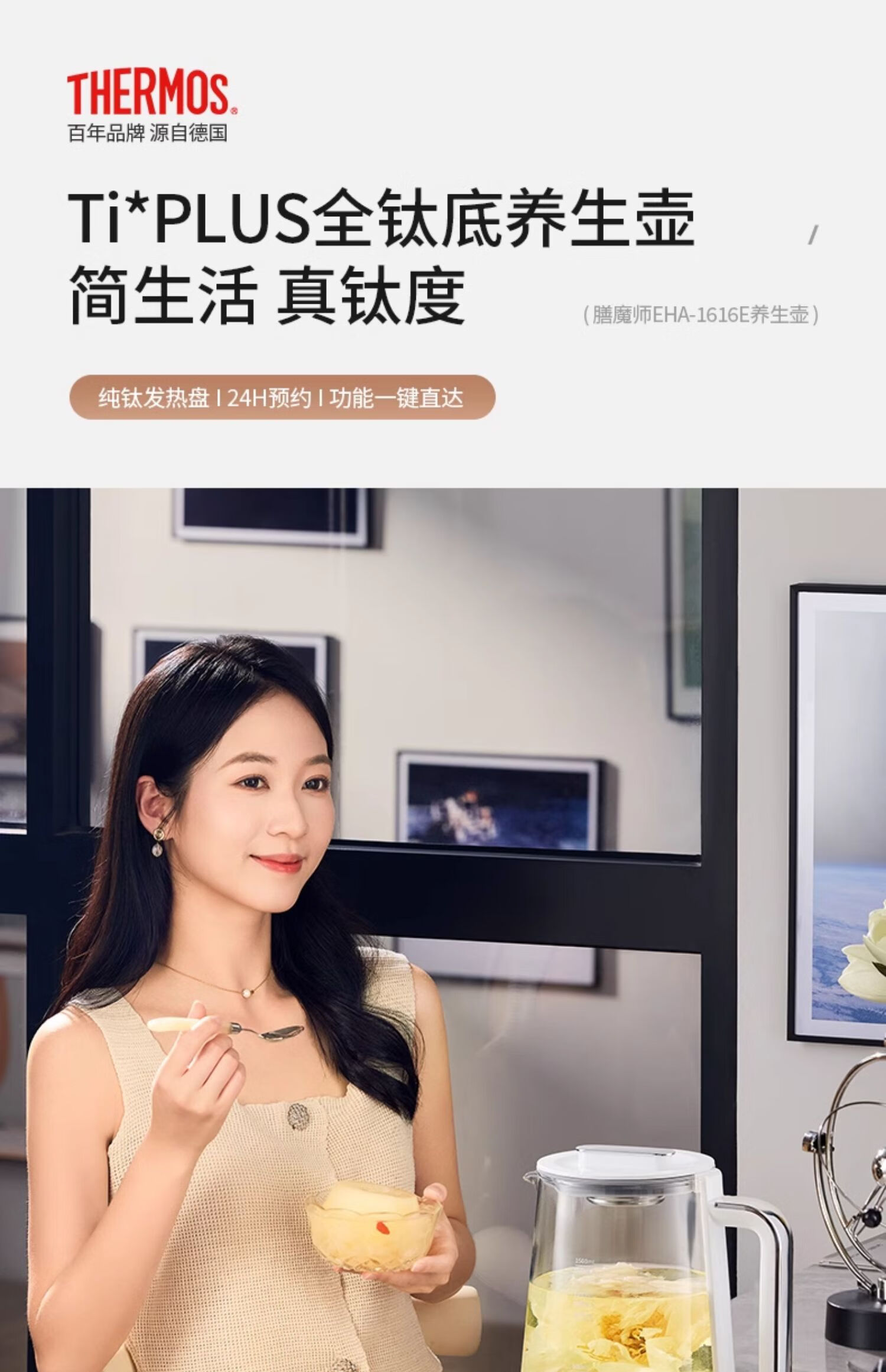 THERMOS Health Pot Pure Titanium Bottom Household Multifunctional High-end Office Small 2024 New Kettle Teapot Tea Maker EHA-1616E White 1.5L