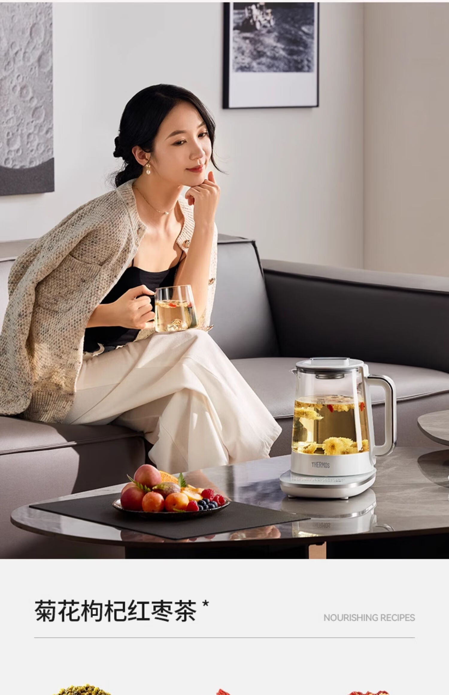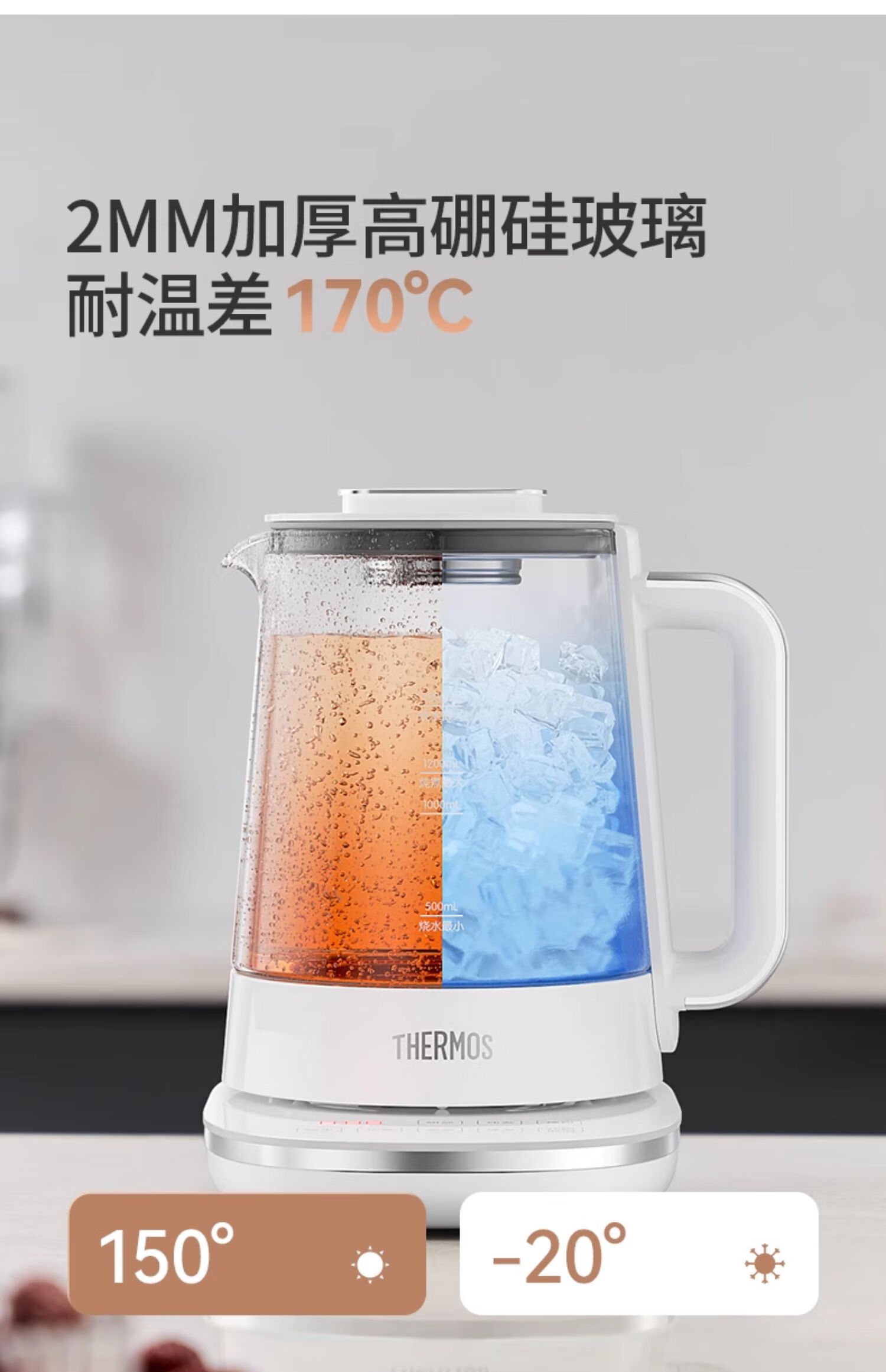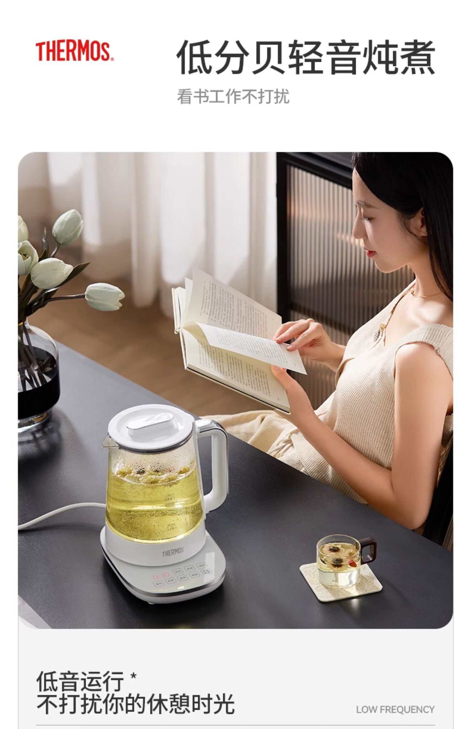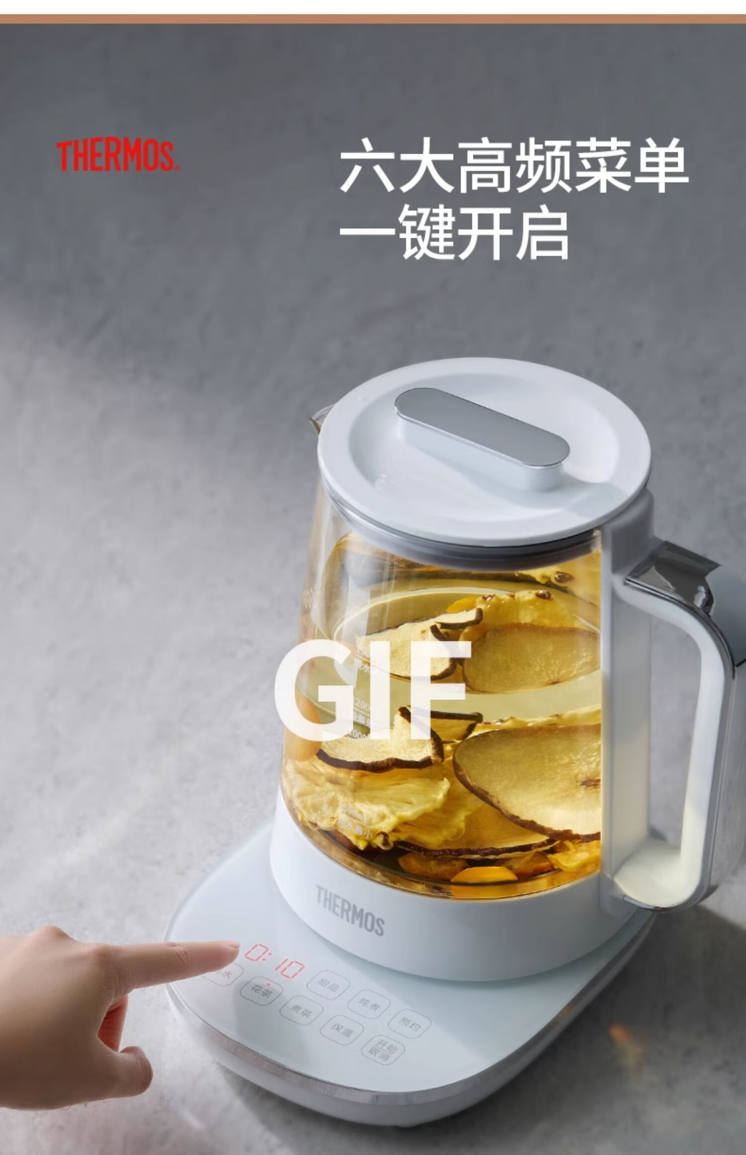 THERMOS Health Pot Pure Titanium Bottom Household Multifunctional High-end Office Small 2024 New Kettle Teapot Tea Maker EHA-1616E White 1.5L