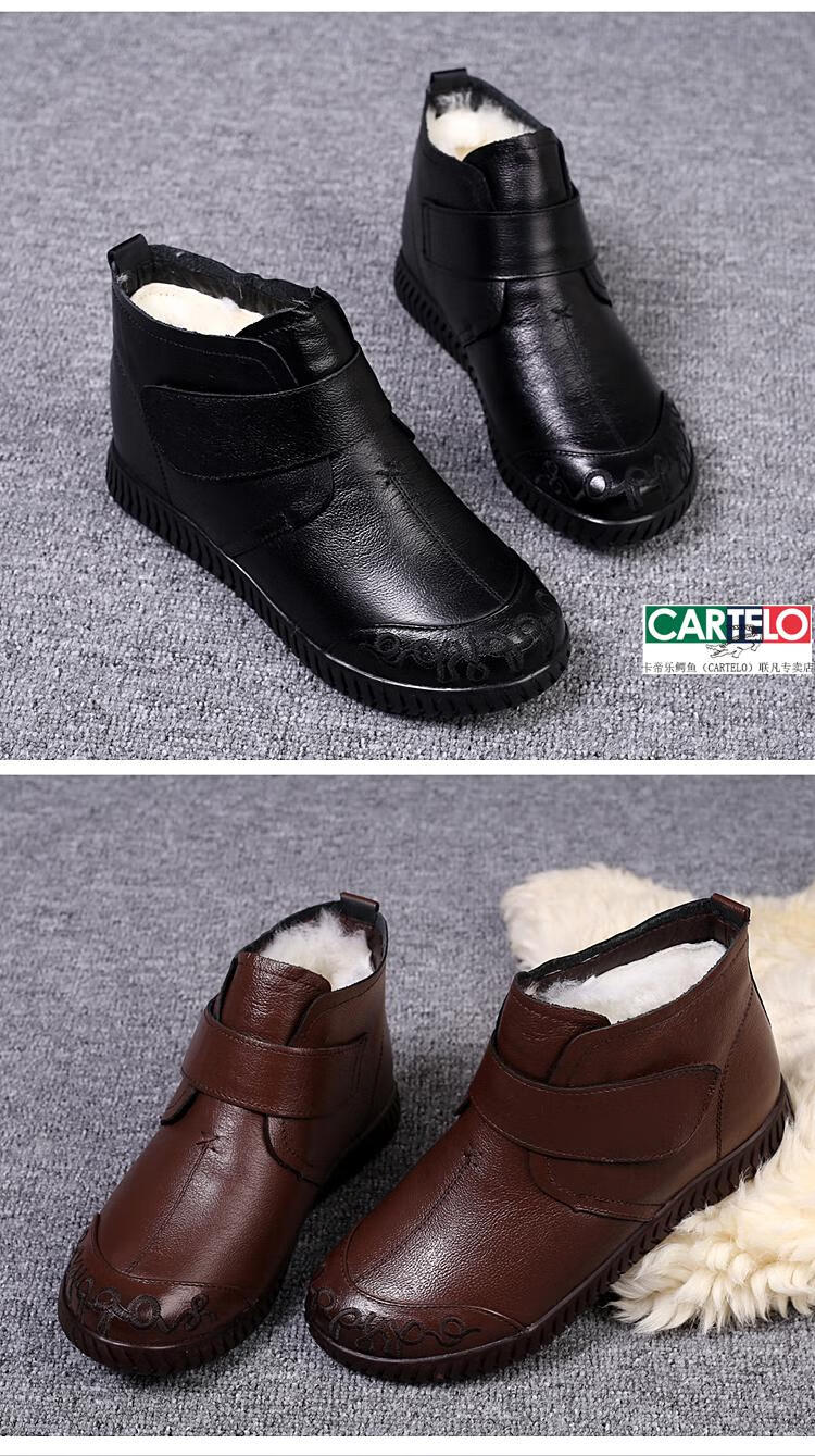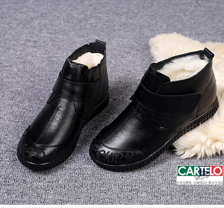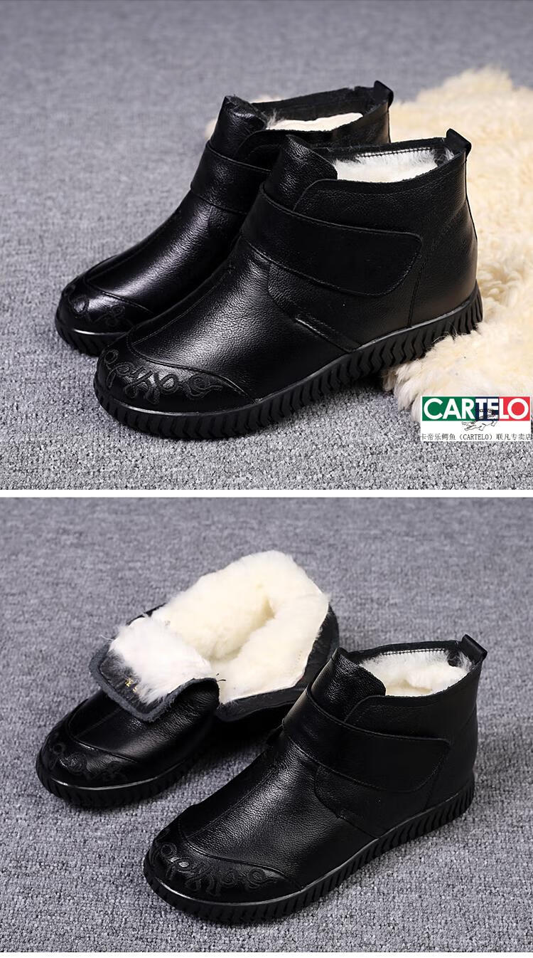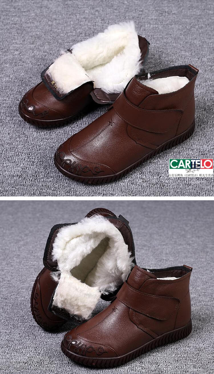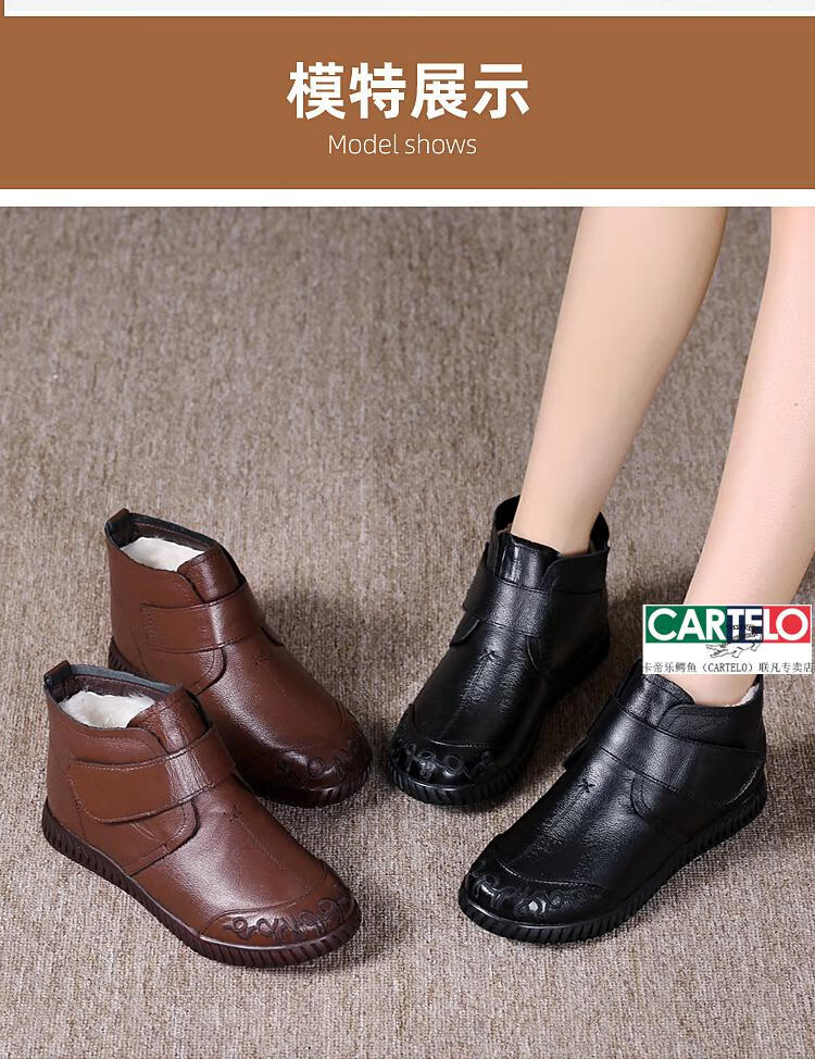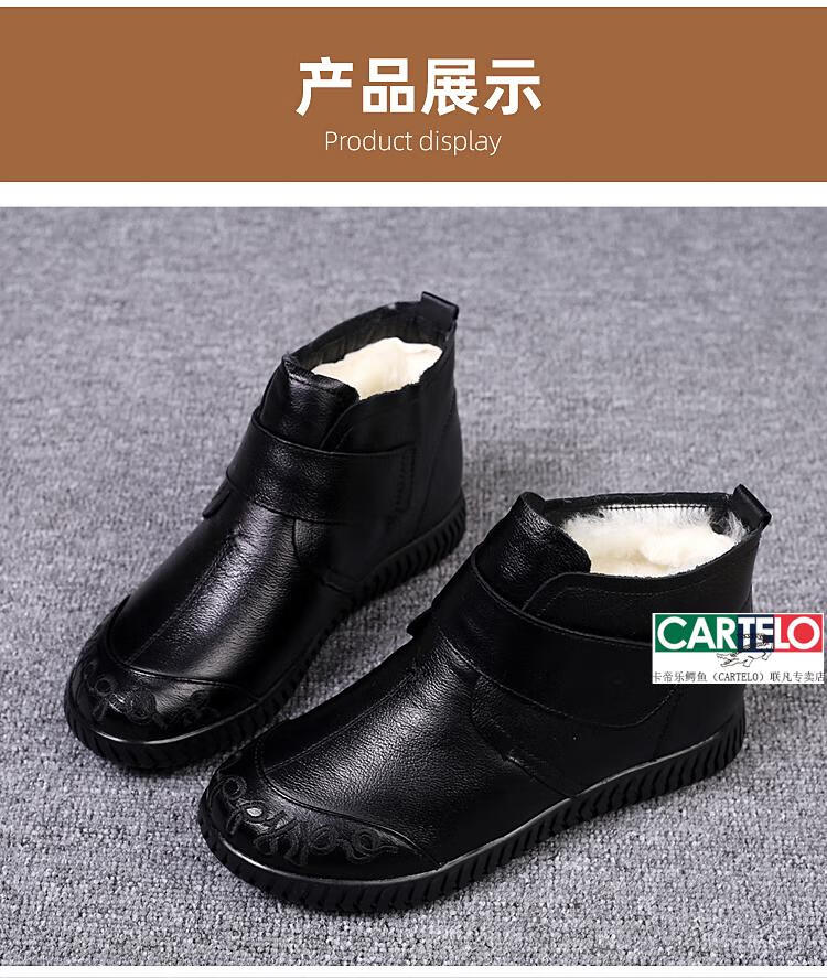 CARTELO genuine leather cotton shoes for the elderly, women's autumn and winter velvet snow boots, soft-soled leather shoes for middle-aged and elderly grandmothers, warm and non-slip mother's shoes, black (thick wool, take one size larger) 37