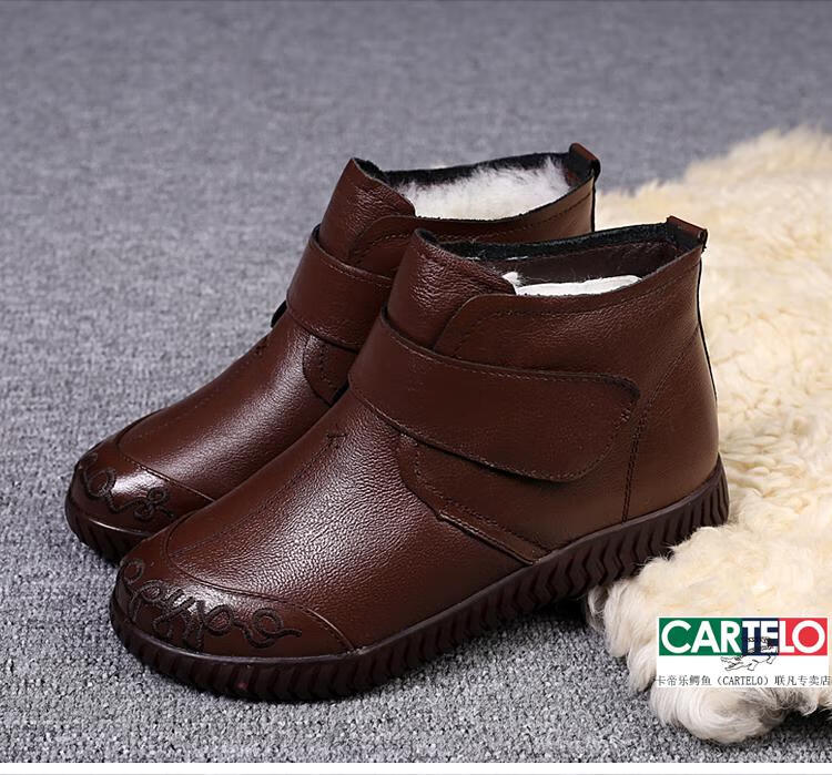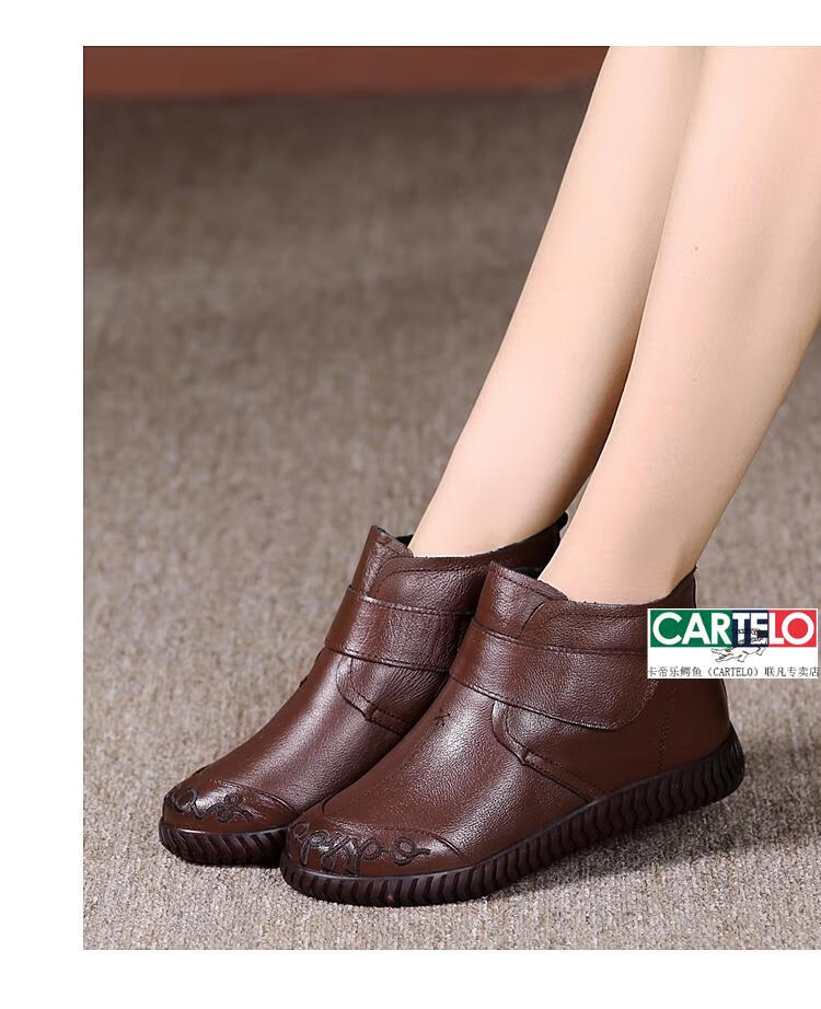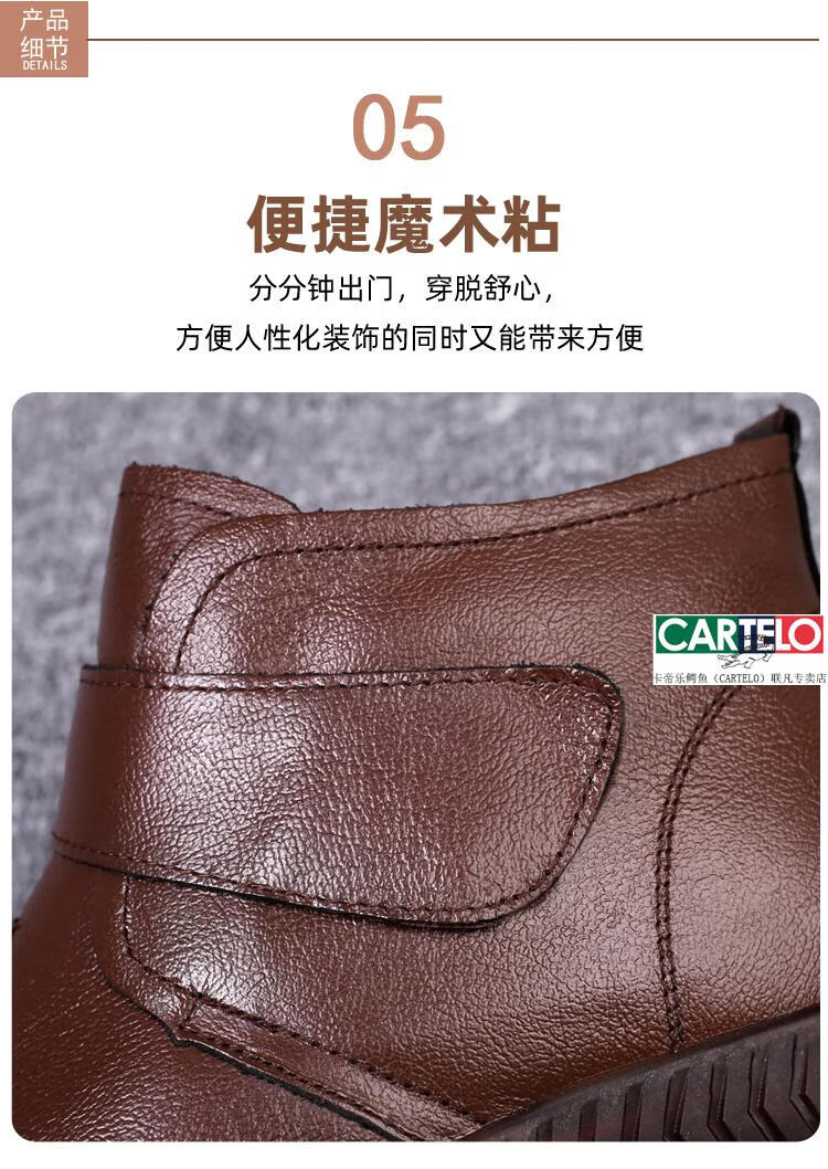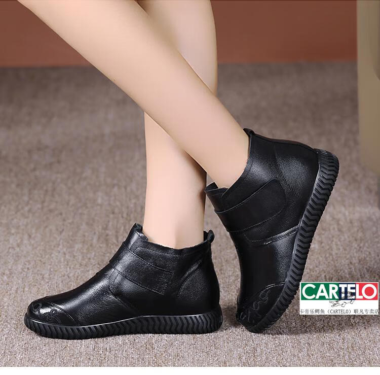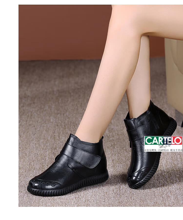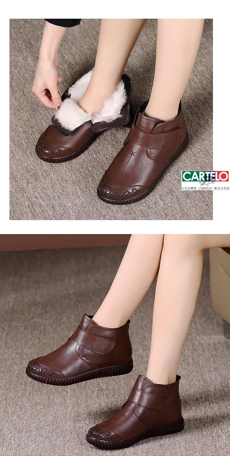 CARTELO genuine leather cotton shoes for the elderly, women's autumn and winter velvet snow boots, soft-soled leather shoes for middle-aged and elderly grandmothers, warm and non-slip mother's shoes, black (thick wool, take one size larger) 37