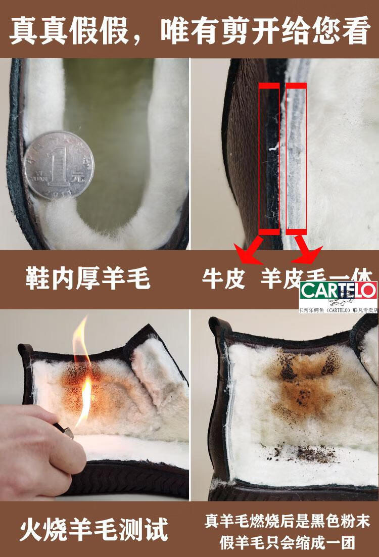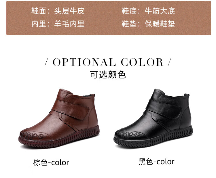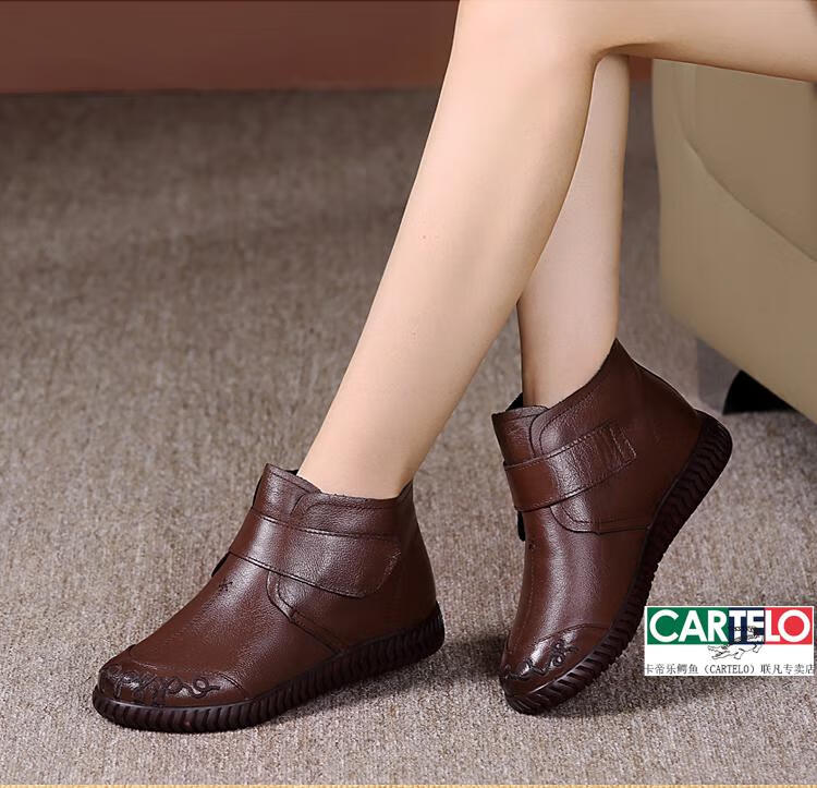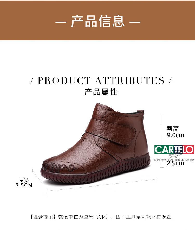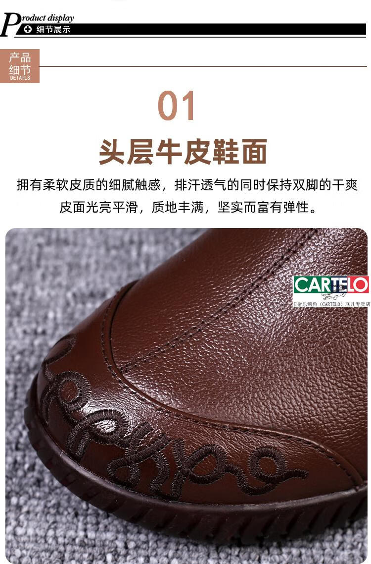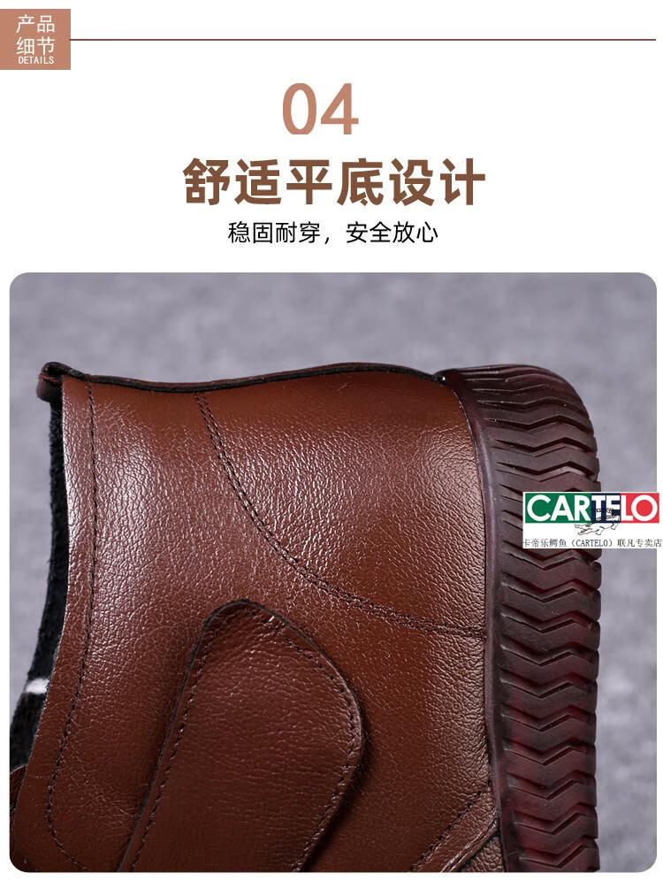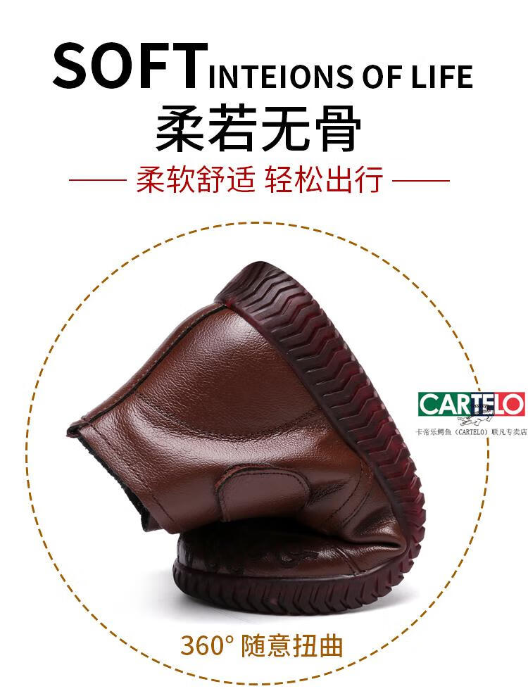 CARTELO genuine leather cotton shoes for the elderly, women's autumn and winter velvet snow boots, soft-soled leather shoes for middle-aged and elderly grandmothers, warm and non-slip mother's shoes, black (thick wool, take one size larger) 37