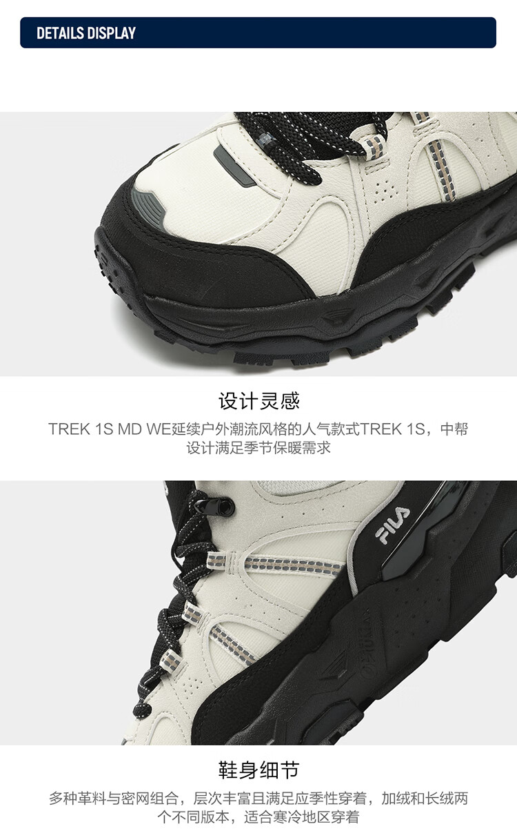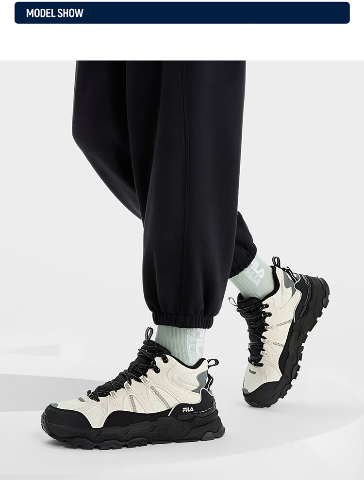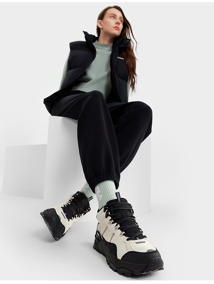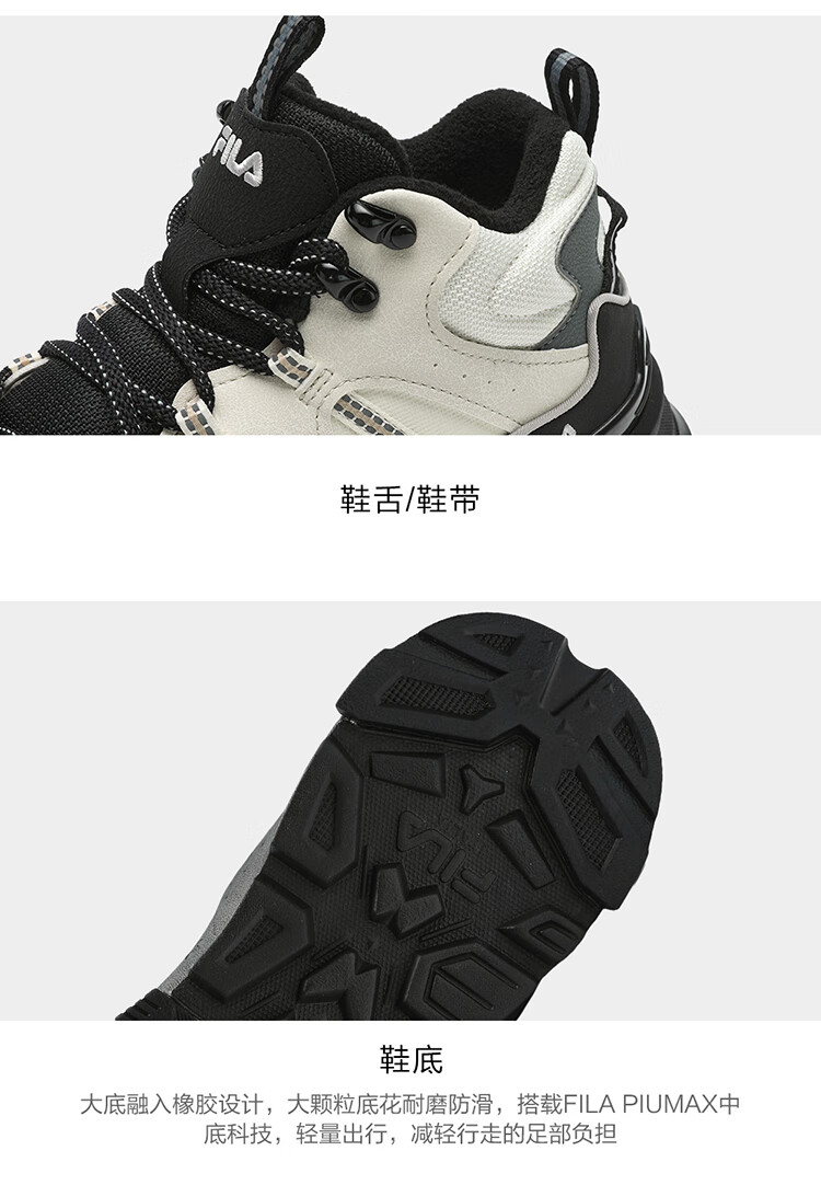 FILA women's mid-cut plus velvet dad shoes casual shoes winter warm thick-soled sneakers turtledove yellow/black-TB 37.5