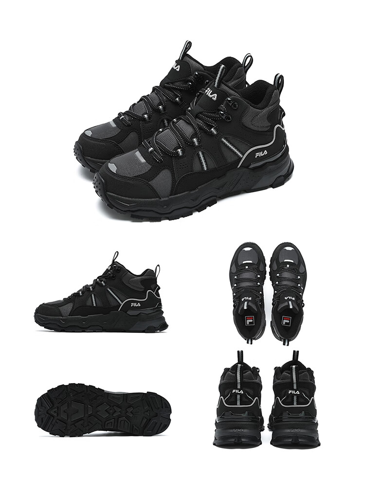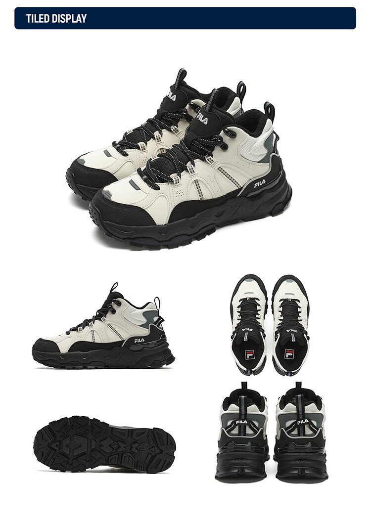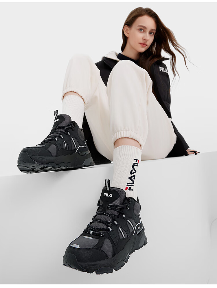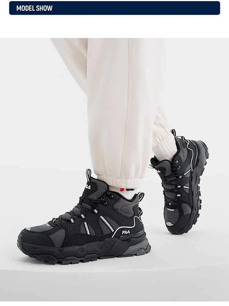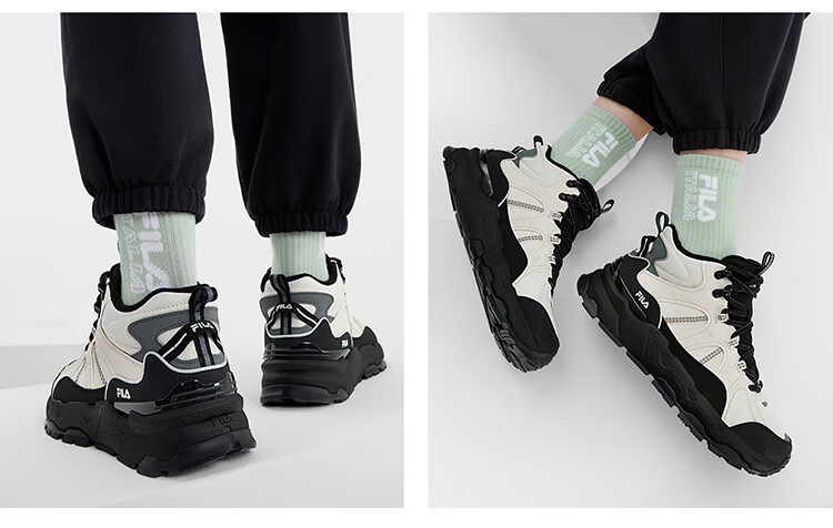 FILA women's mid-cut plus velvet dad shoes casual shoes winter warm thick-soled sneakers turtledove yellow/black-TB 37.5