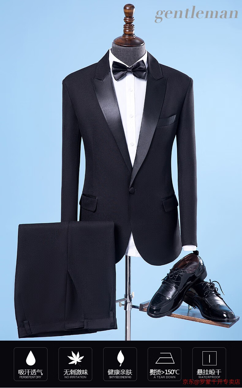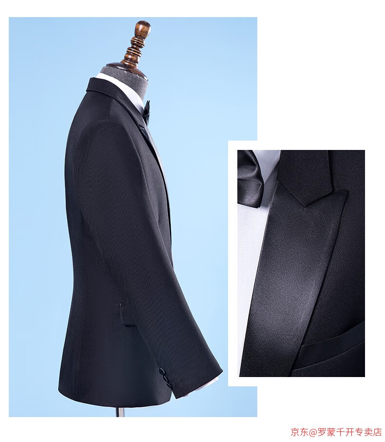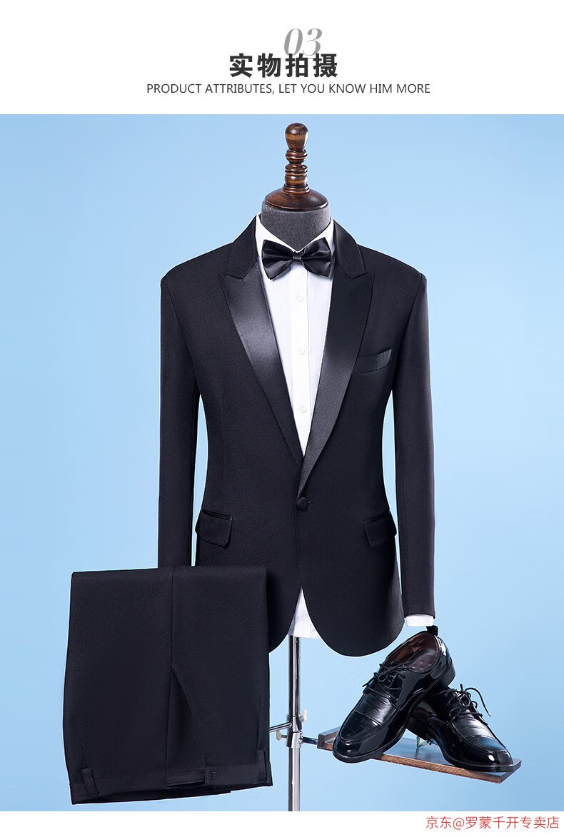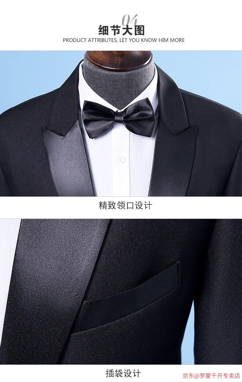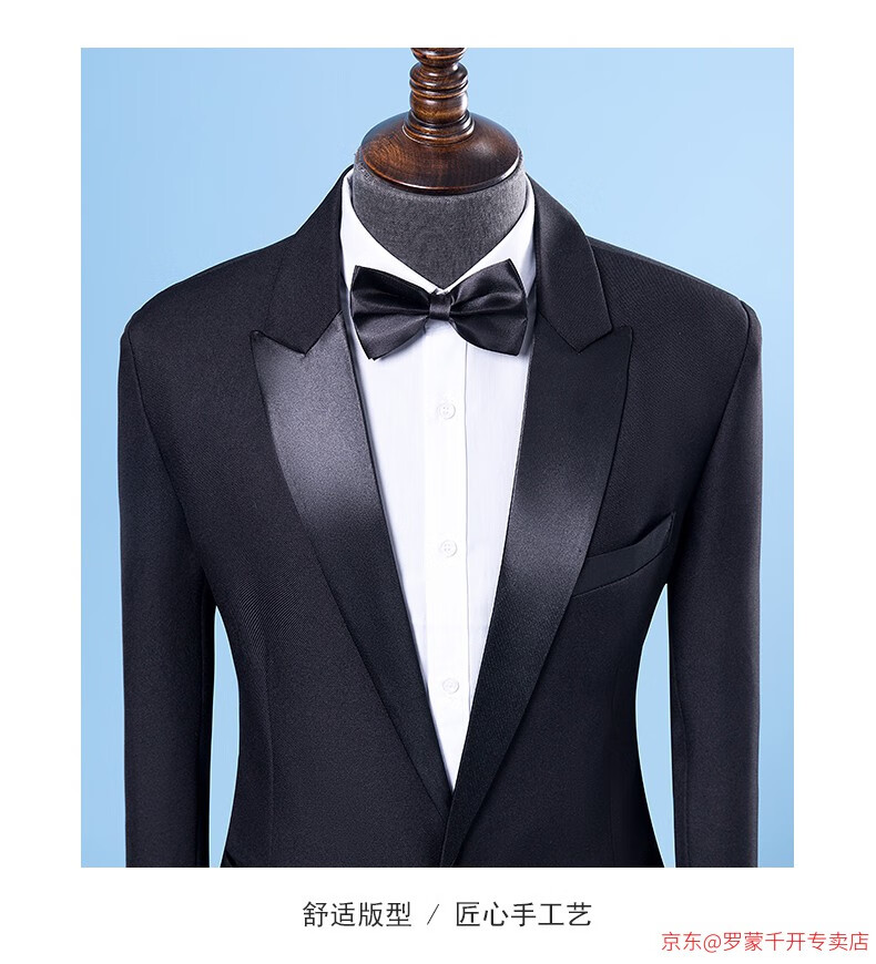 ROMON Performance Clothing Men's Suit Singer Host Dress Men's Adult Choral Clothing Performance Clothing Men's Black Jacket + Pants + Bow Tie XL 160Jin Jin is equal to about 0.5 kg