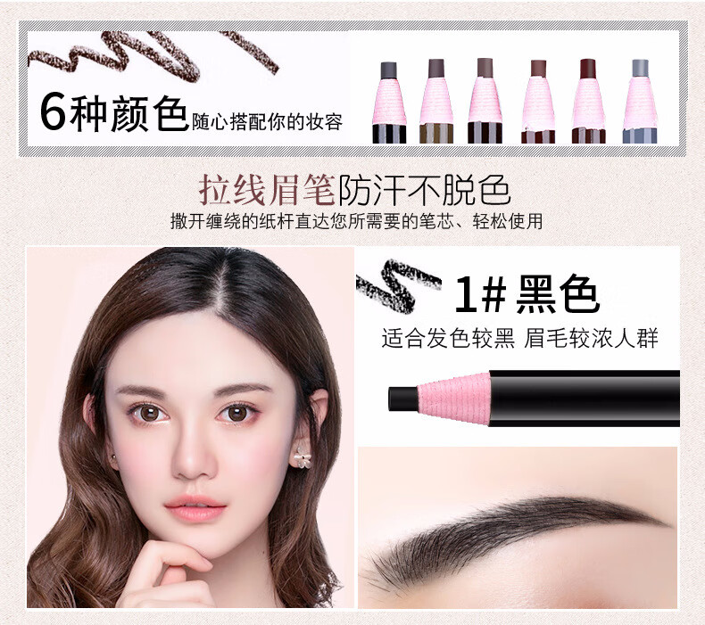 Eyebrow pencil can be sharpened and does not fade. Women's anti-sweat makeup tool, special for makeup, natural eyebrow pencil, 1 black eyebrow pencil