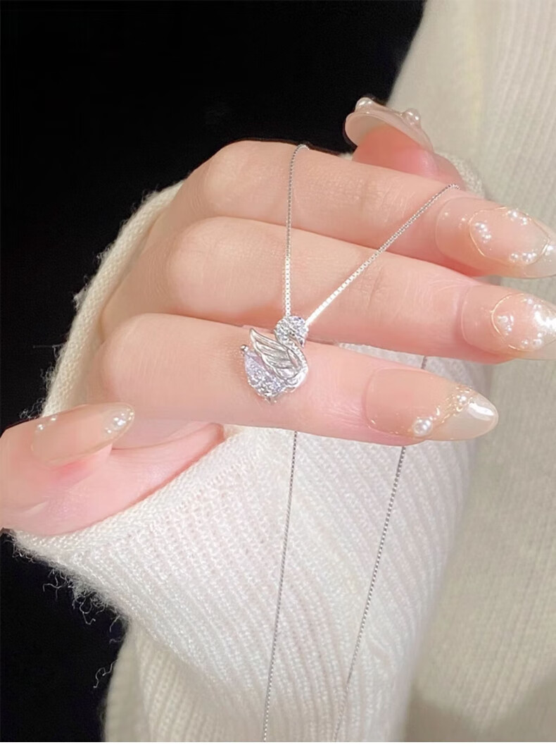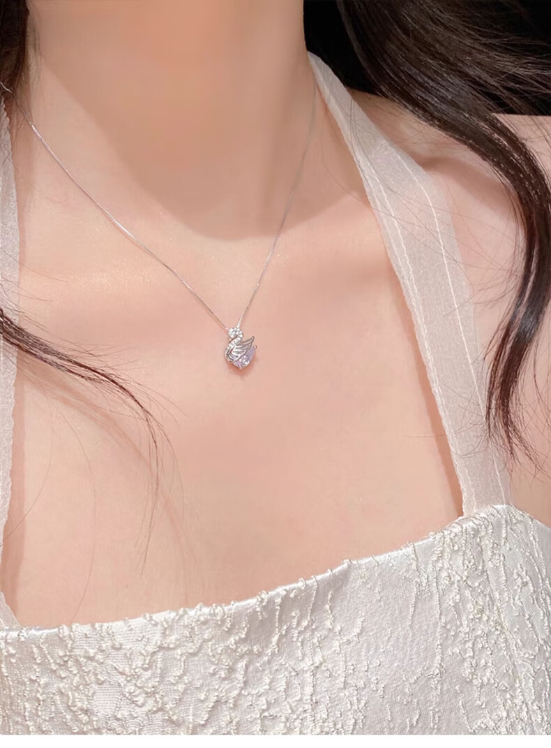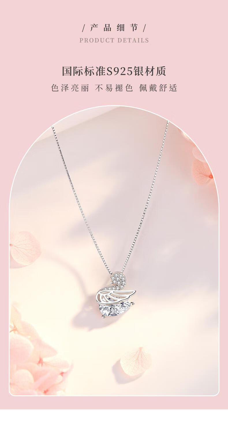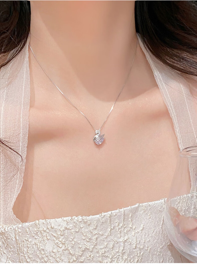 SAC light luxury Swarovski zirconium 925 sterling silver little swan eid necklace for women, odd student birthday gift for girlfriend, birthday gift rose gold necklace gift box