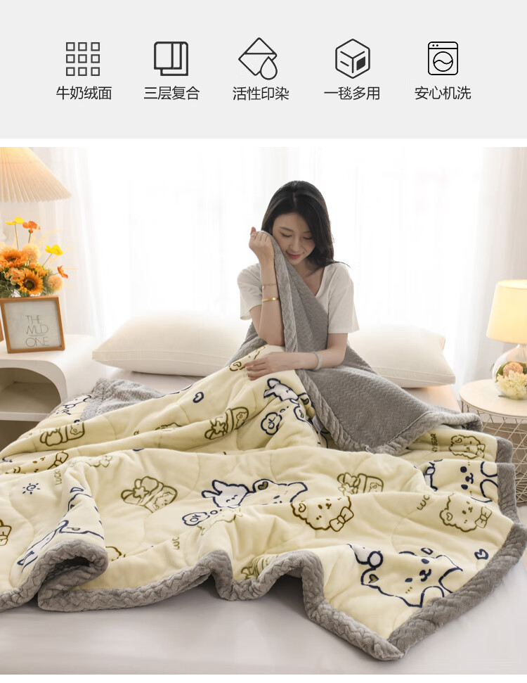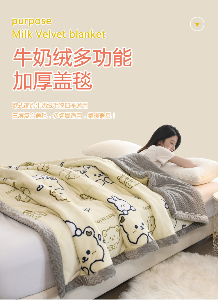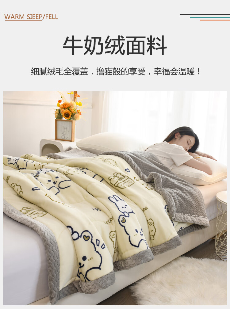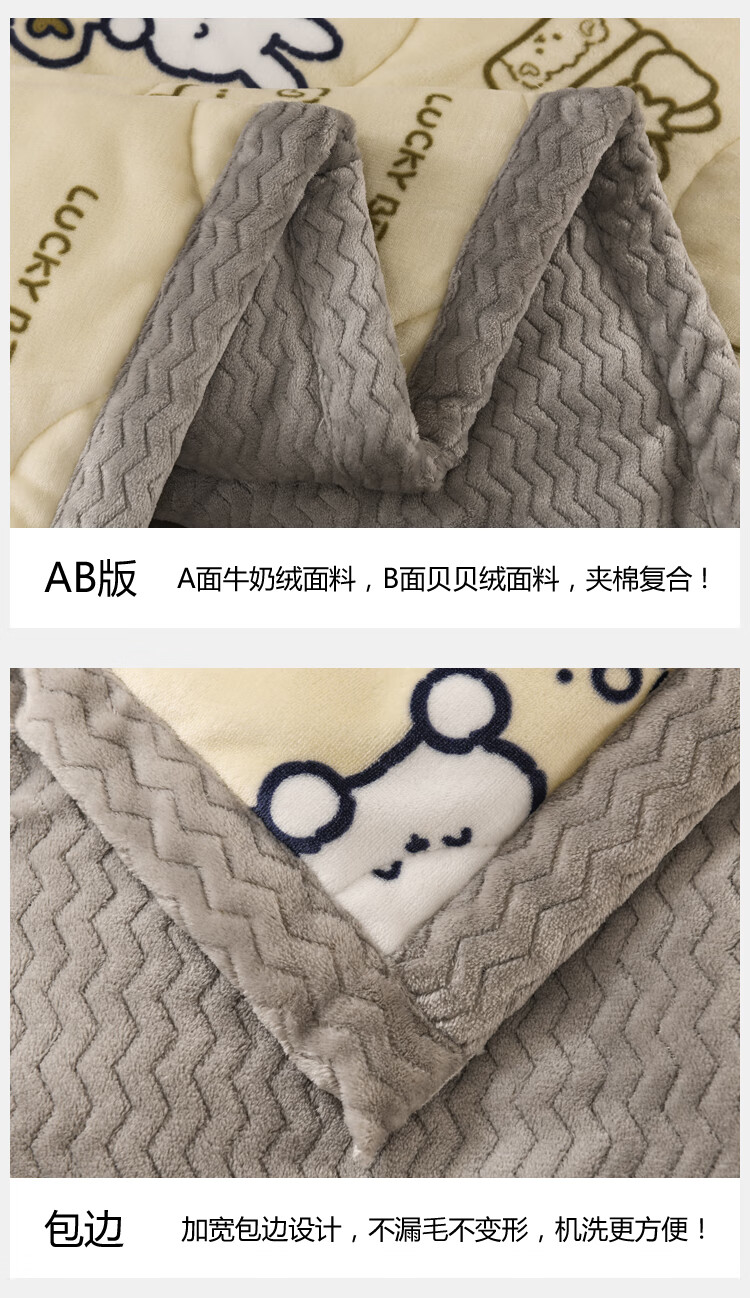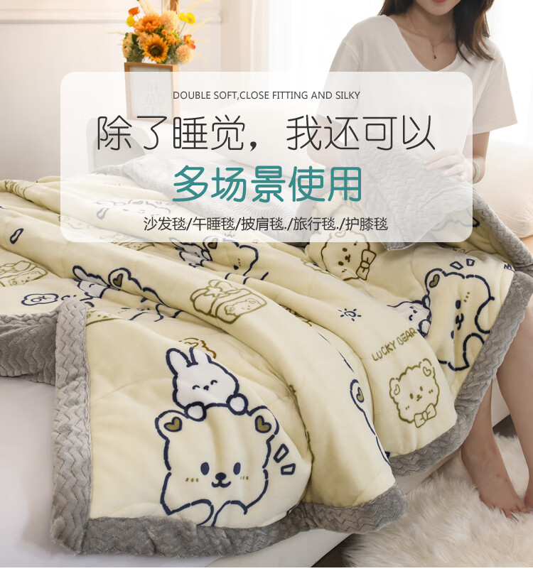 Nanjiren (Nanjiren) Blanket Quilt Coral Velvet Winter Thickened Baby Nap Blanket Office Air Conditioning Sofa Small Quilt Shawl Blanket Rabbit Bear-Grey Quilted Thickened Warmth 120x200cm Nap Blanket