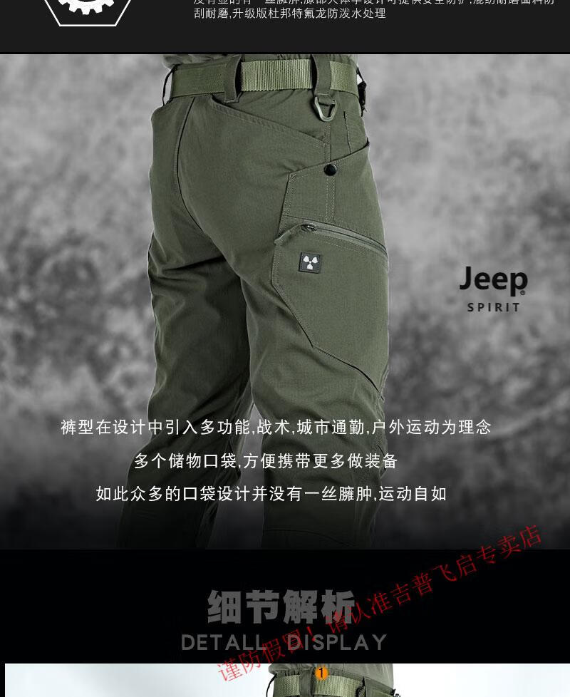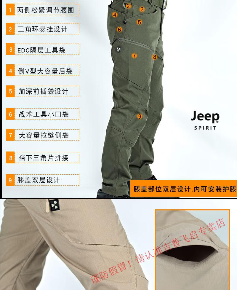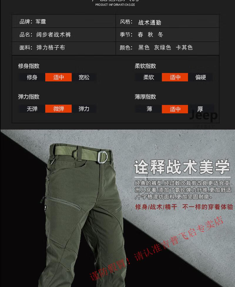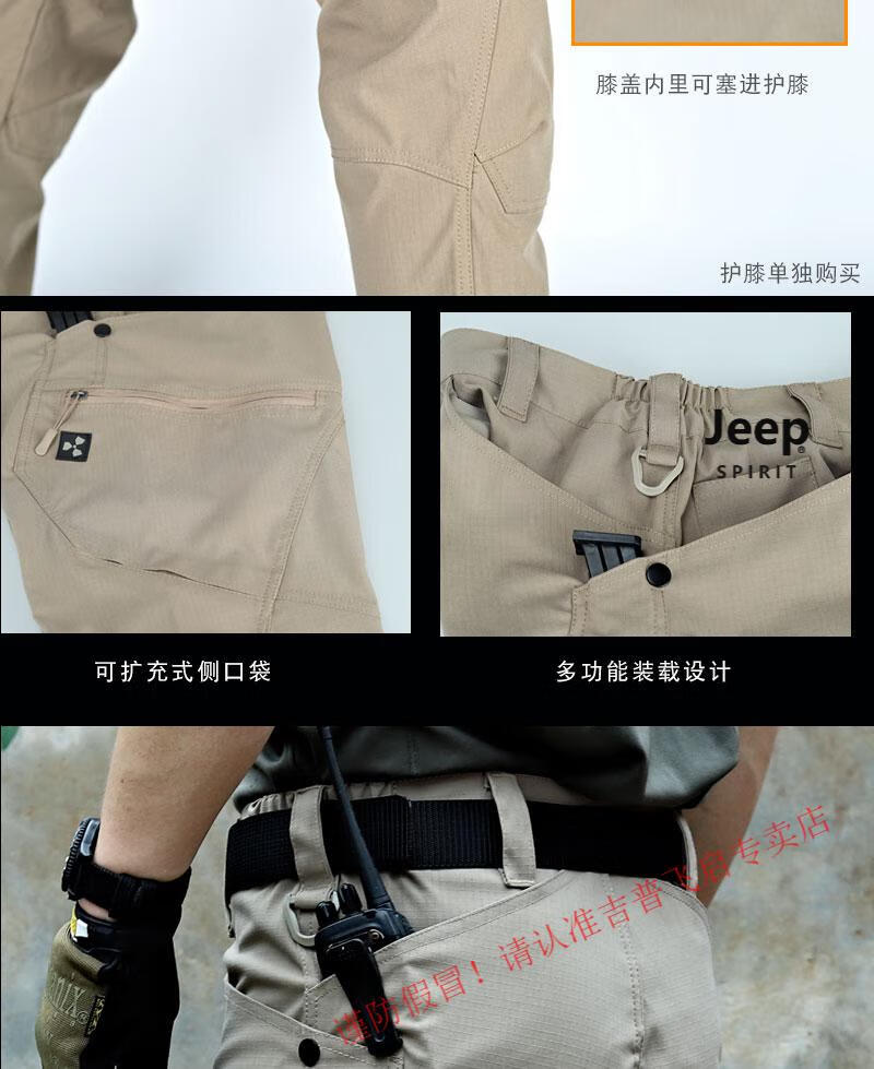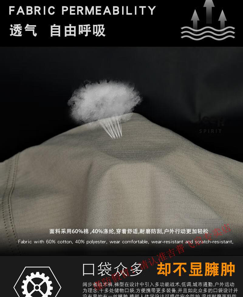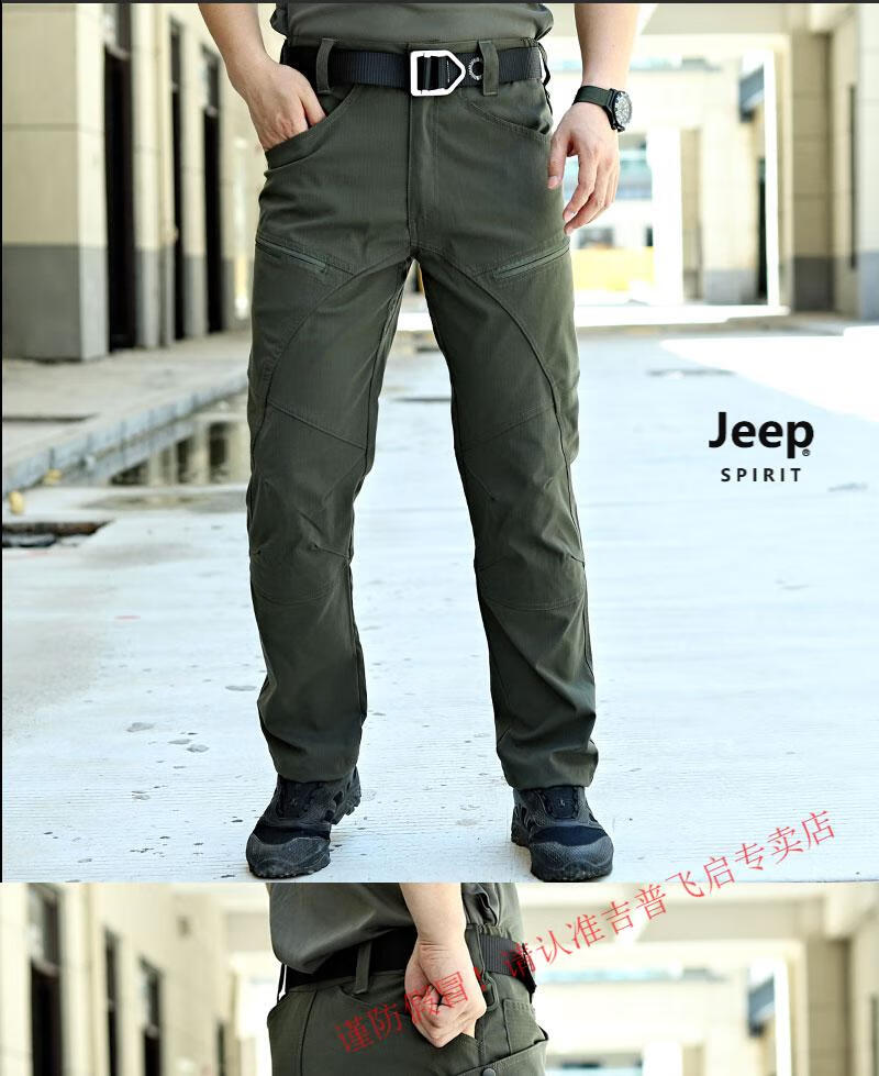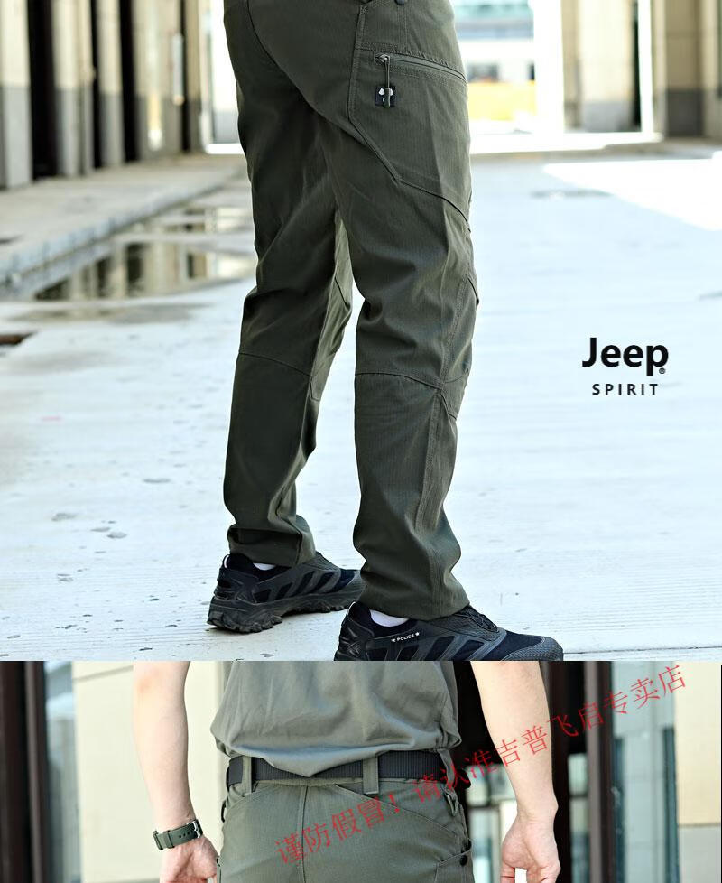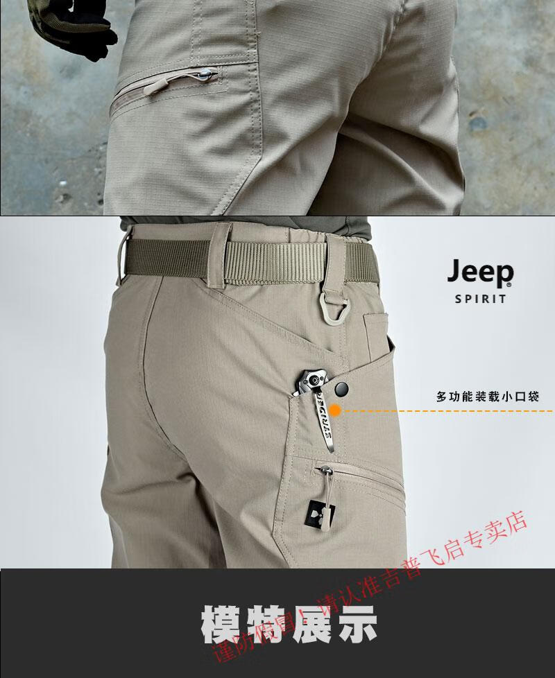 JEEP SPIRIT Jeep tactical trousers men's spring and autumn new loose training multi-pocket straight pants stretch casual outdoor overalls Khaki XL