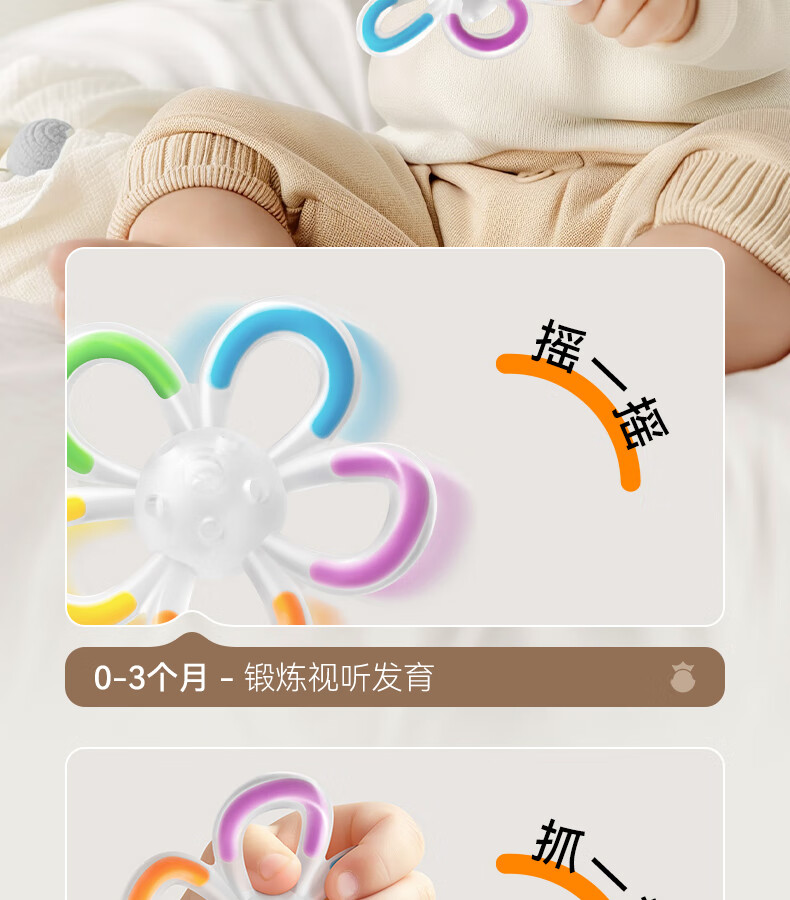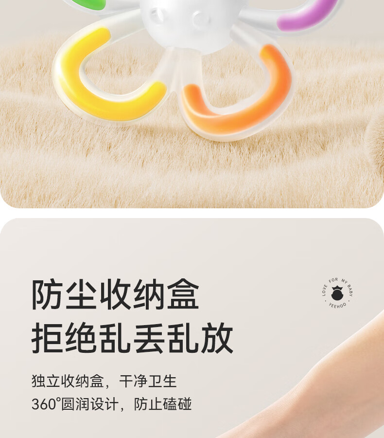 YEEHOO Manhattan hand ball baby rattle toy silicone chewable teether for small-month-old babies 3-6 months old rattle toy teether with free storage box