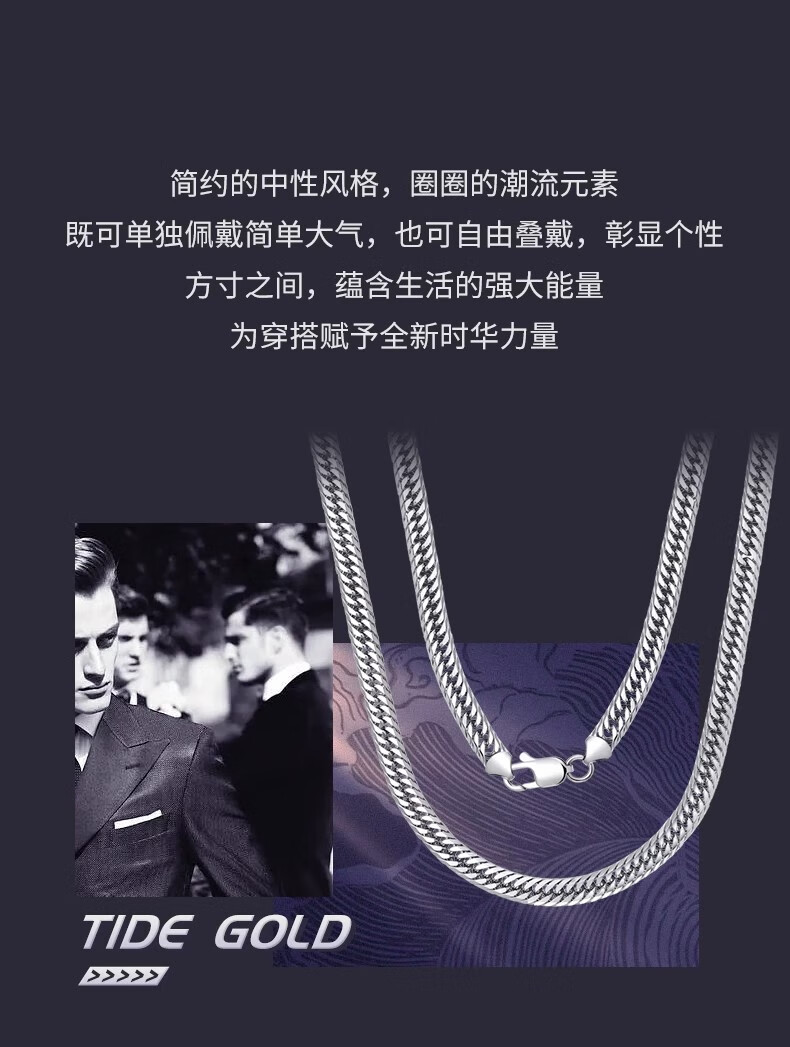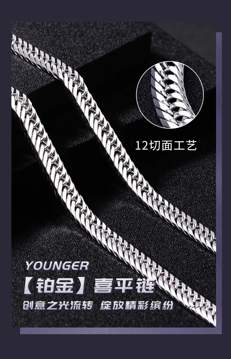 Ruofei platinum necklace men's pt950 solid men's platinum necklace 12-cut Japanese Kihei chain versatile platinum Cuban chain platinum 950 length 52cm 53.85g thick 5.0mm