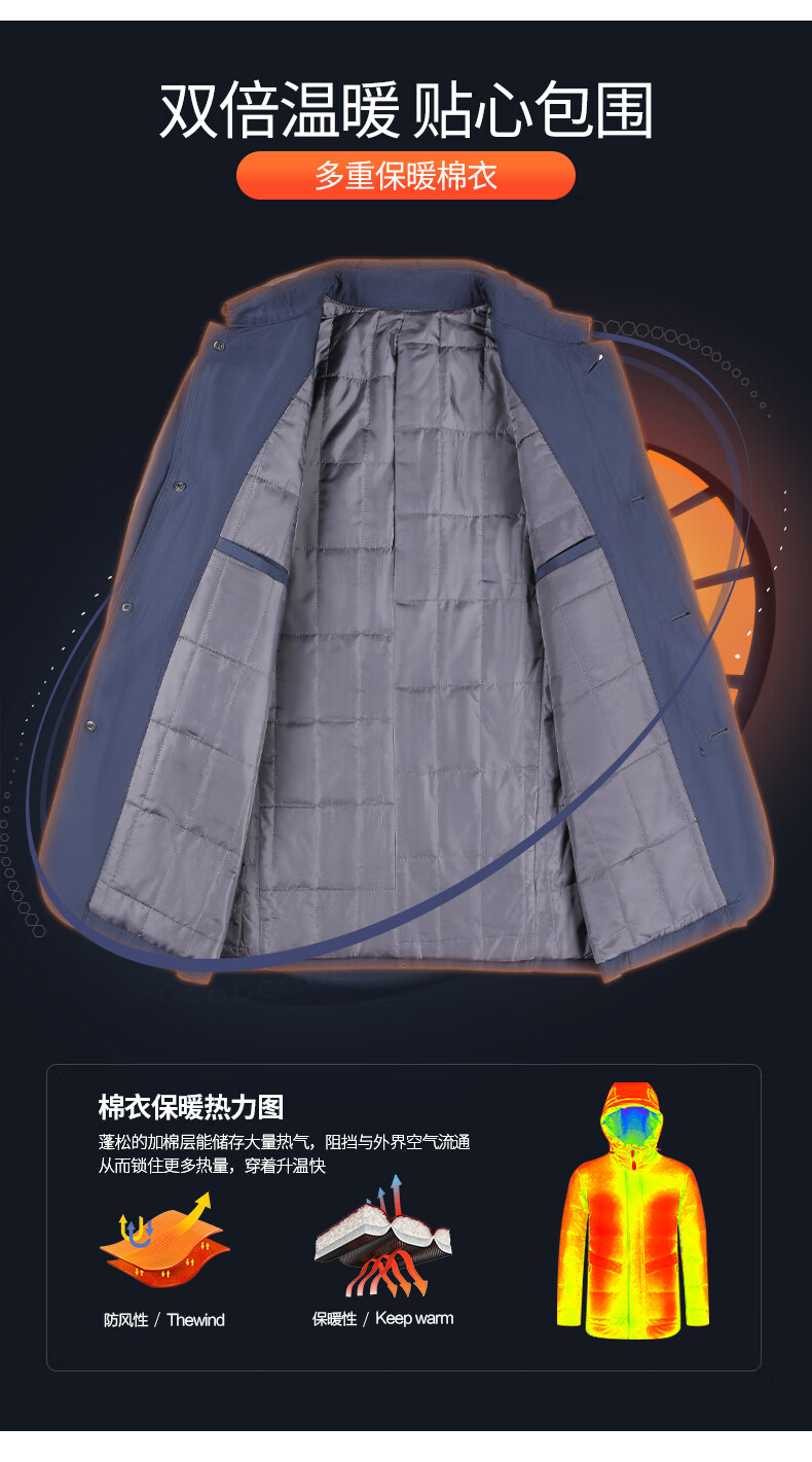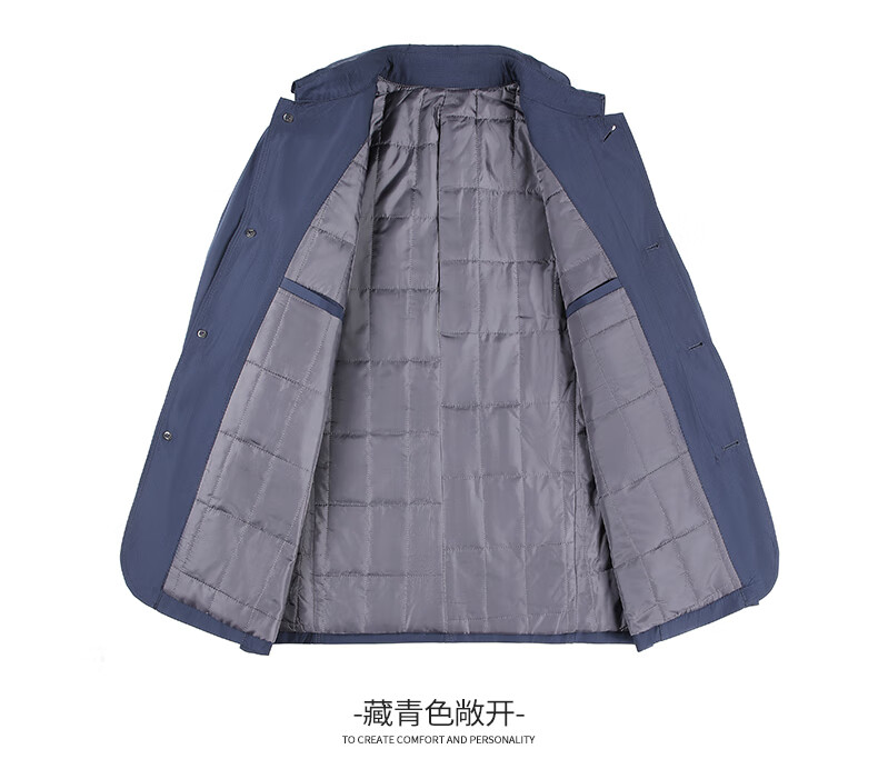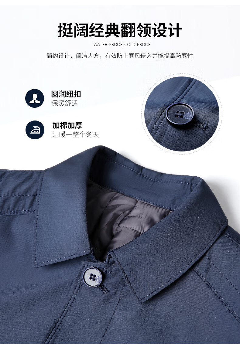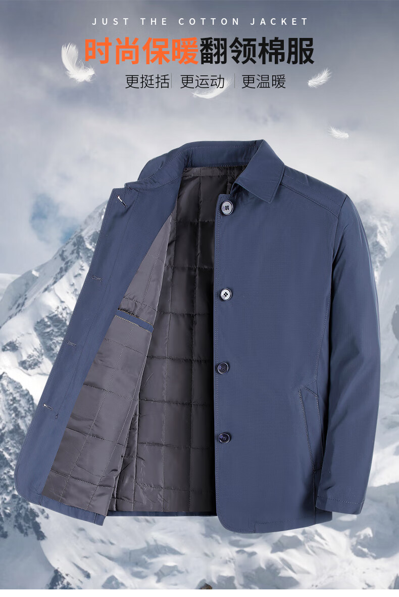 SHANSHAN Shanshan Cotton Clothing Men's Autumn and Winter New Single-breasted Lapel Men's Jacket Thickened Warm and Cold-Resistant Men's Top Commuting Navy Blue L/175