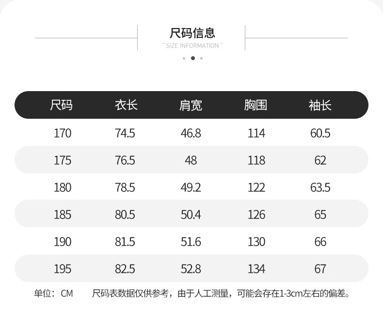 China (cm) 165 / 88-90 170 / 96-98 175 / 108-110 180 / 118-122 185 / 126-130