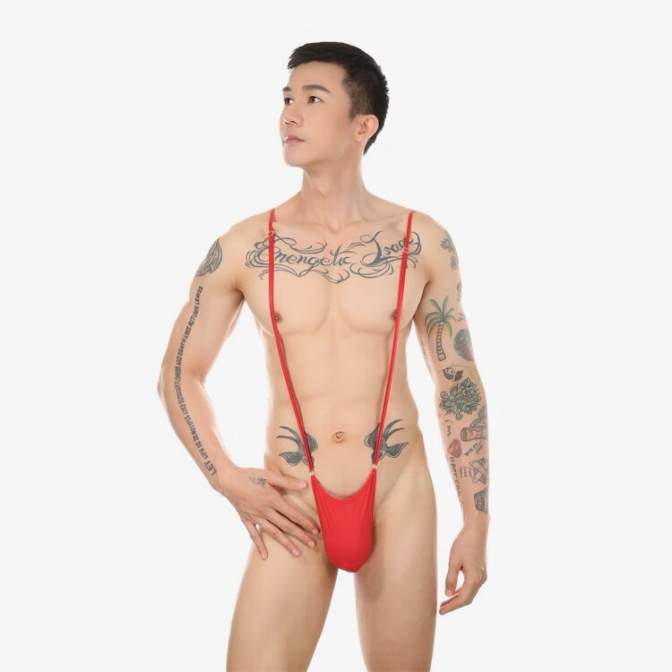 Men's sexy one-piece underwear, sexy suspender-type adjustable one-piece thong T-pants with U convex bag design, Nongniu 0, rose red, 1 piece, one size fits all, can be worn