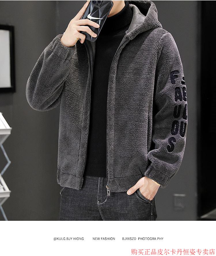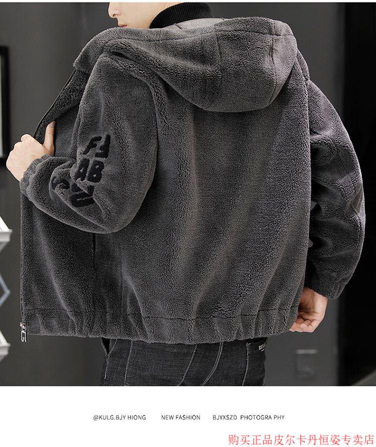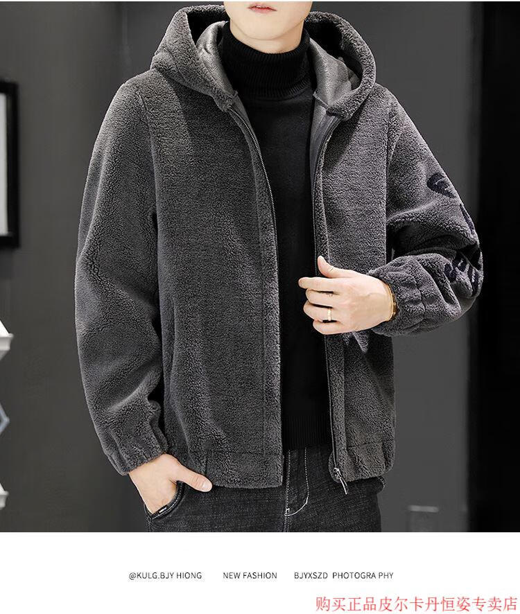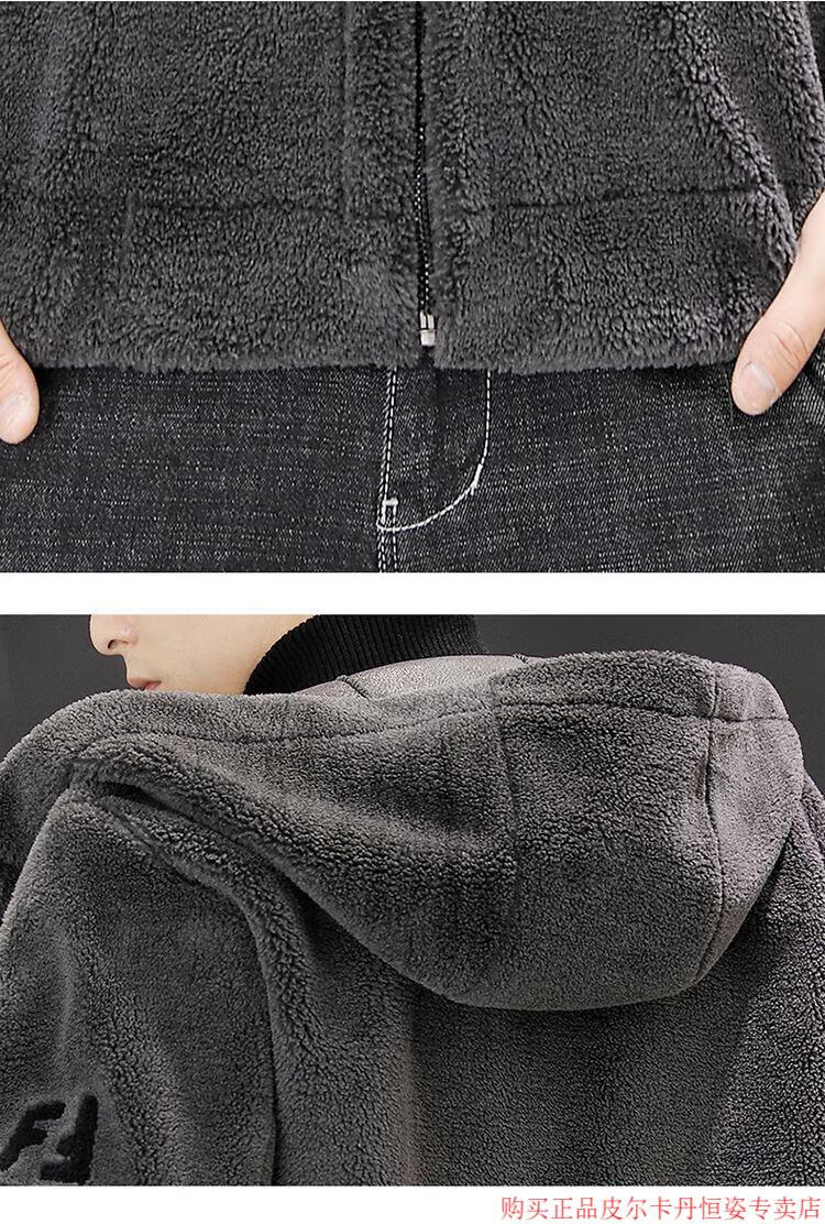 Pierre Cardin sherpa hooded jacket men's autumn and winter polar fleece plus velvet thickened warm jacket men's coat knitted hooded gray 3XL (recommended 145-160Jin Jin equals 0.5 kg)
