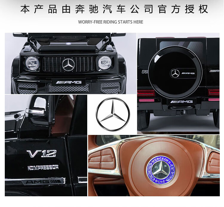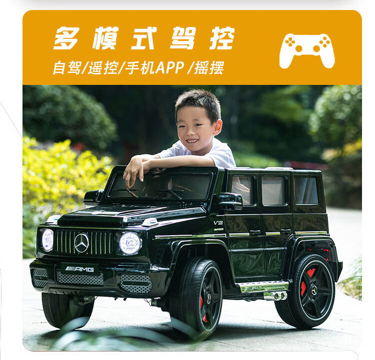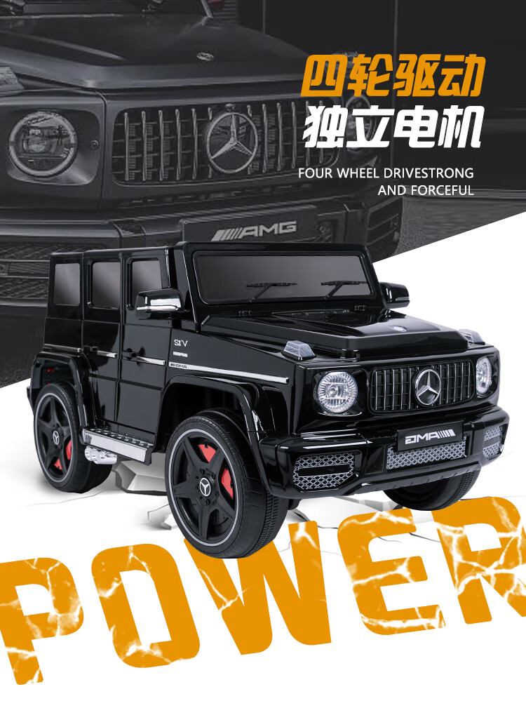 Xiong Yan Mercedes-Benz Big G children's electric car four-wheel remote control car can sit in a baby stroller child baby toy car black LCD instrument + lithium battery + soft wheel leather seat