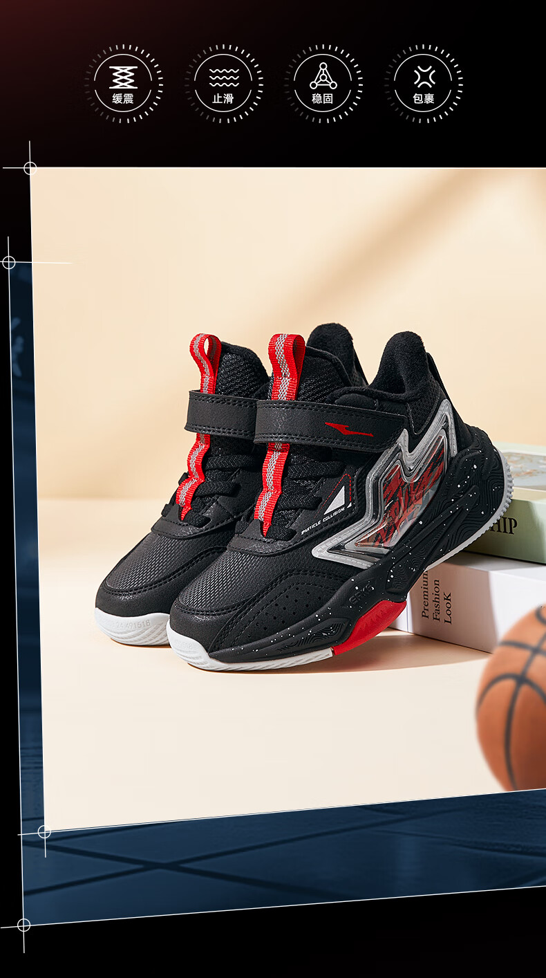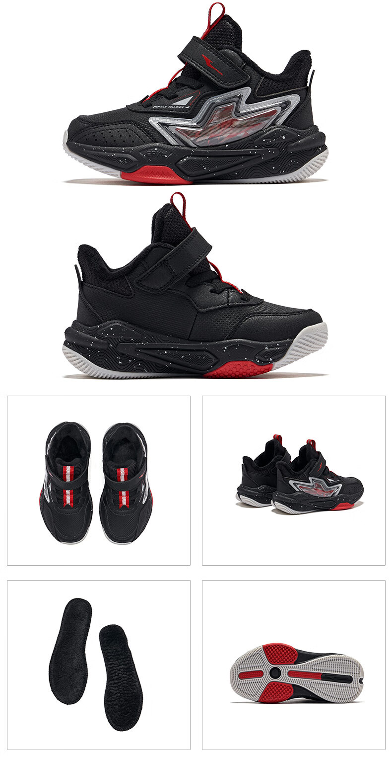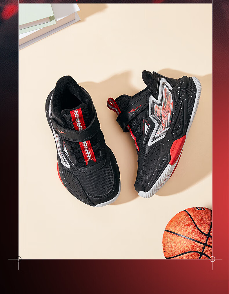 Hongxing Erke boys' shoes, girls' cotton shoes, winter children's cotton-padded basketball shoes, children's sports shoes, New Year greetings for the Year of the Horse | Star Sword, black/red - 1 size too small 30