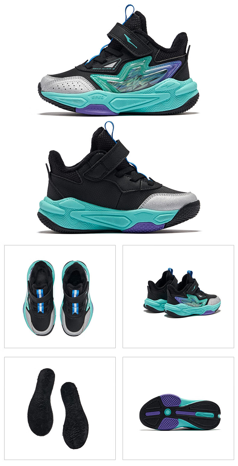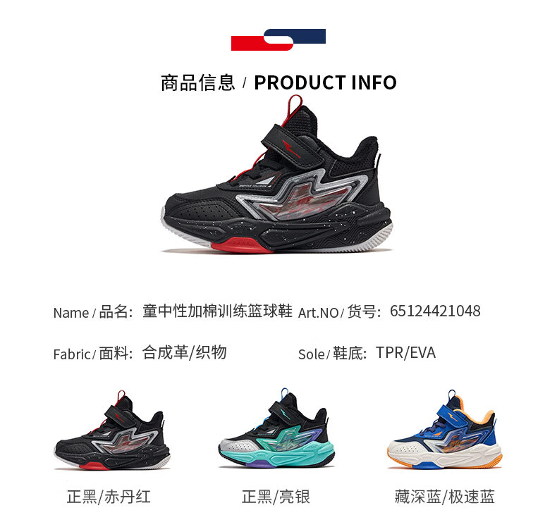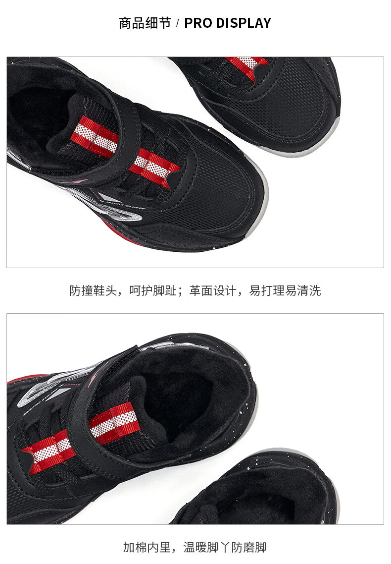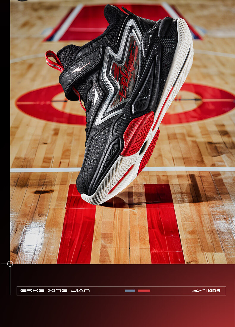 Hongxing Erke boys' shoes, girls' cotton shoes, winter children's cotton-padded basketball shoes, children's sports shoes, New Year greetings for the Year of the Horse | Star Sword, black/red - 1 size too small 30