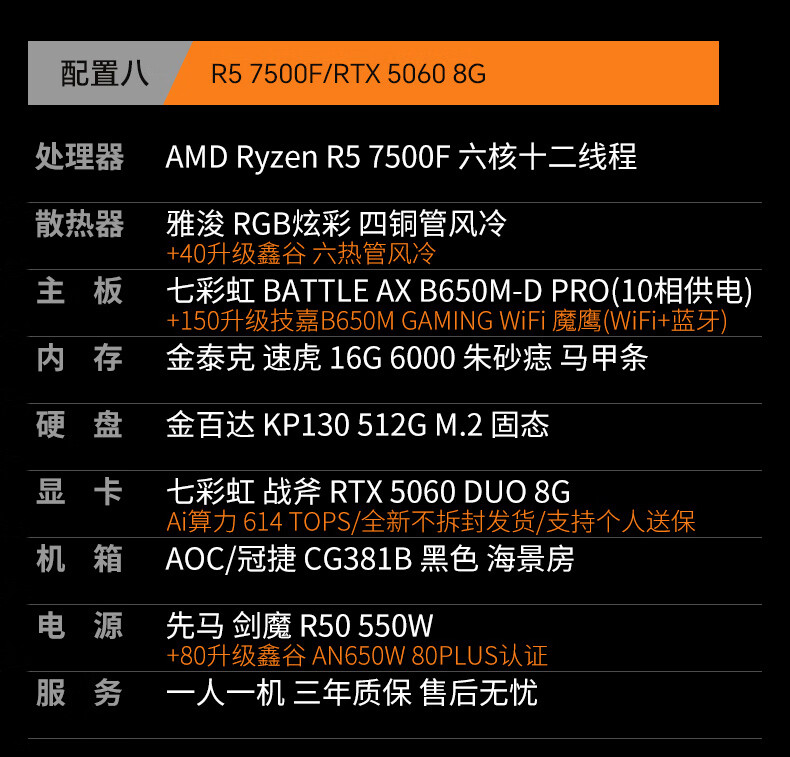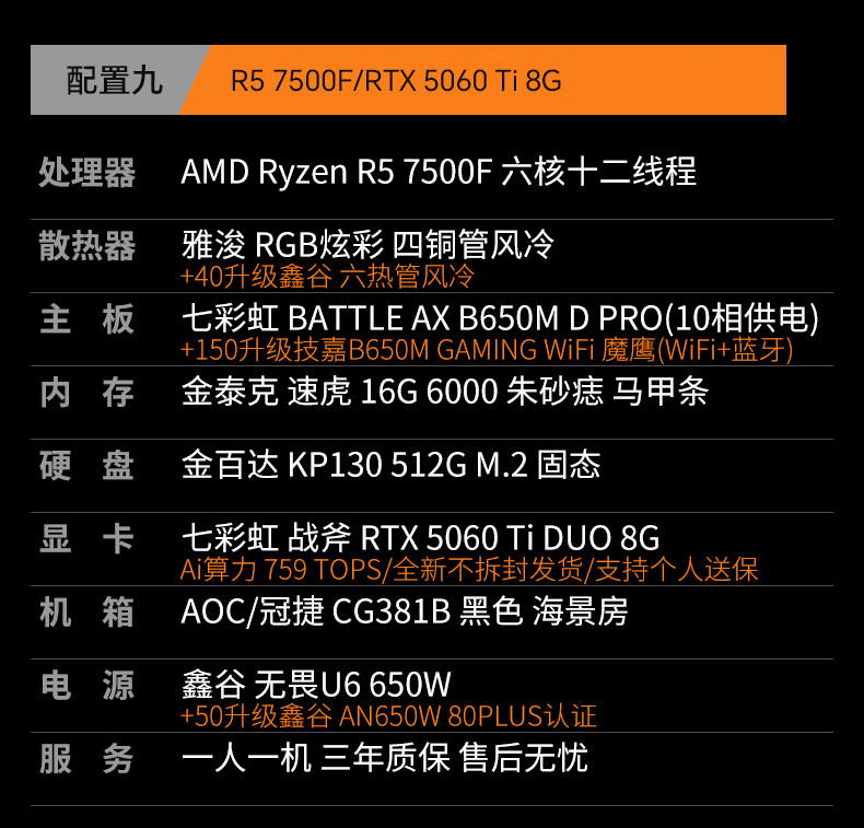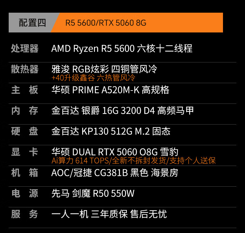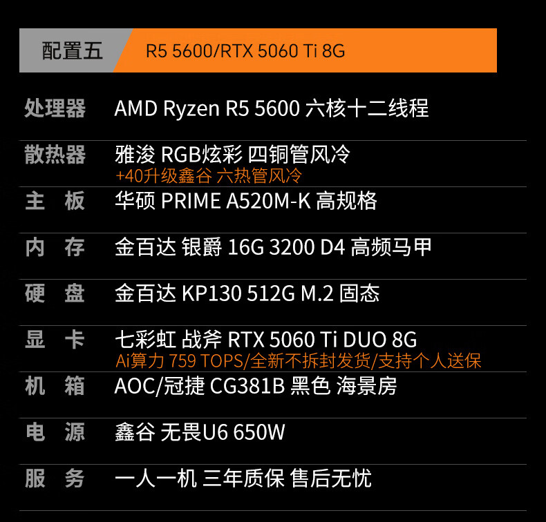 Colorful 24-issue interest-free AMD R5 5600/7500F/RTX5060Ti/5070/6500XT/7650GRE e-sports gaming desktop assembly computer host DIY package four R5 5600+RTX5060