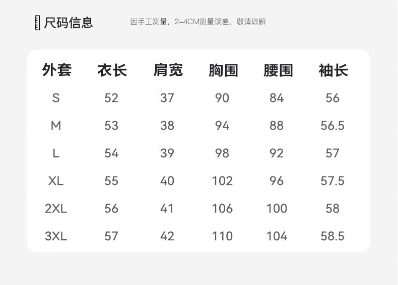 Size (cm) 42 44 46 48 50