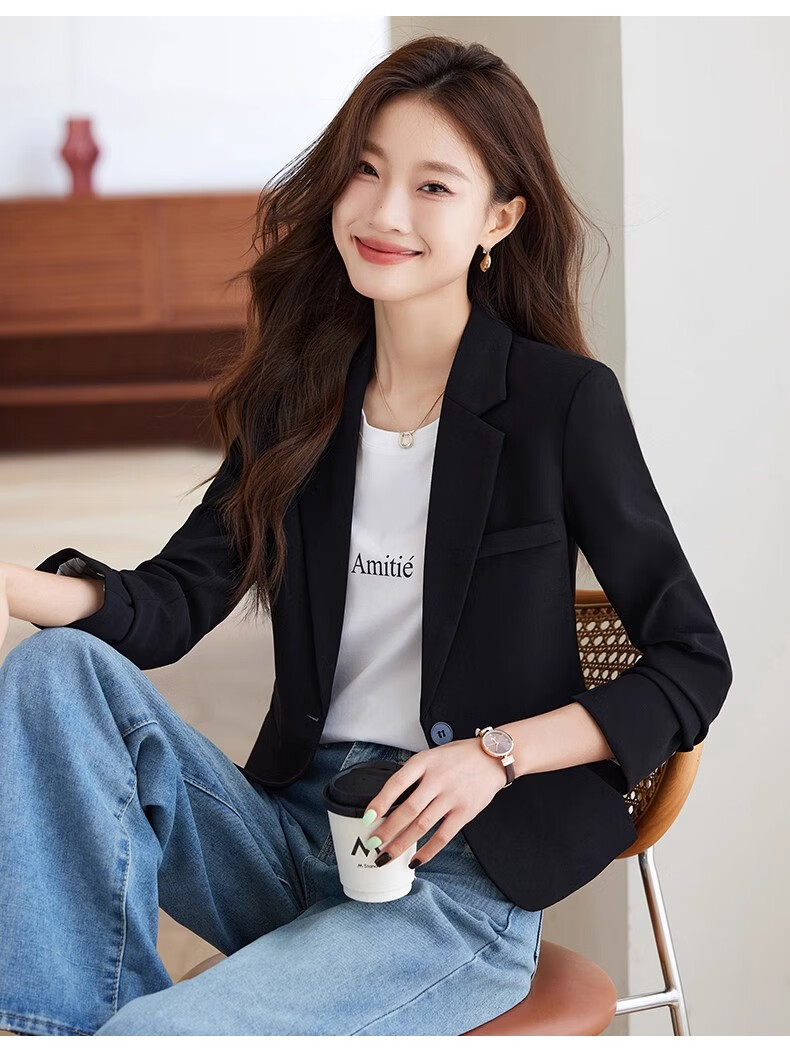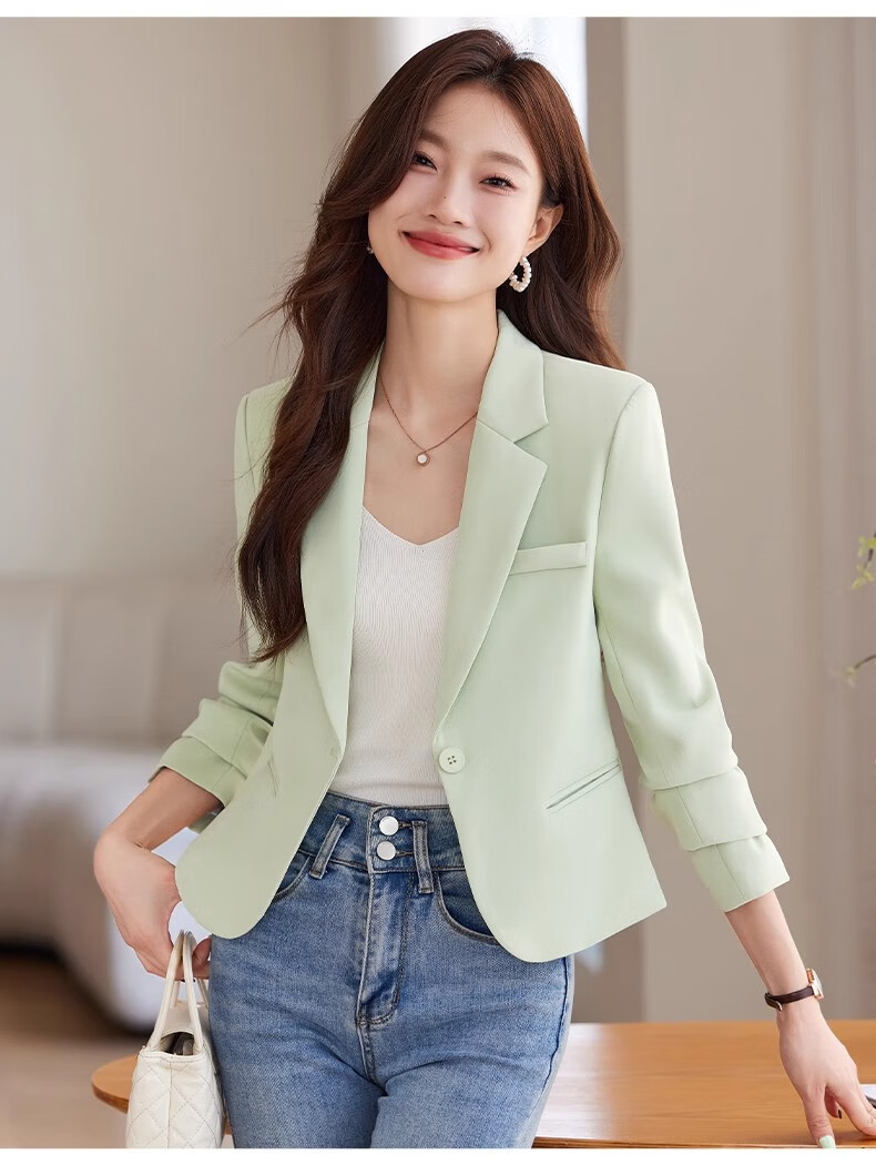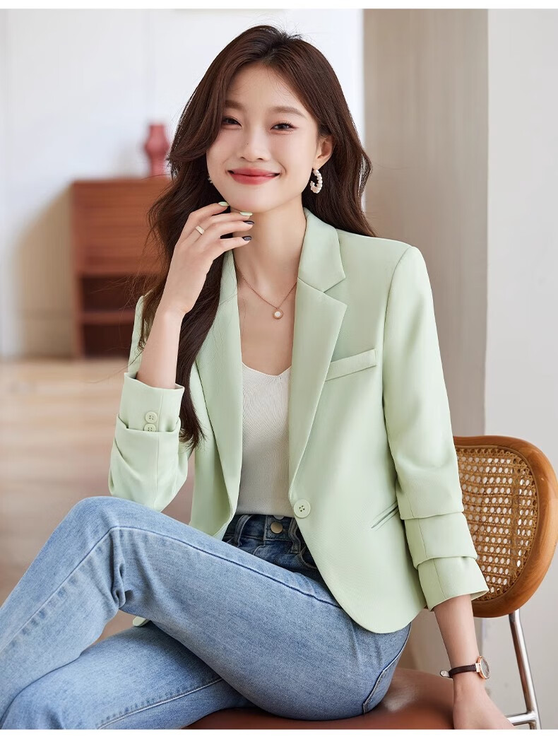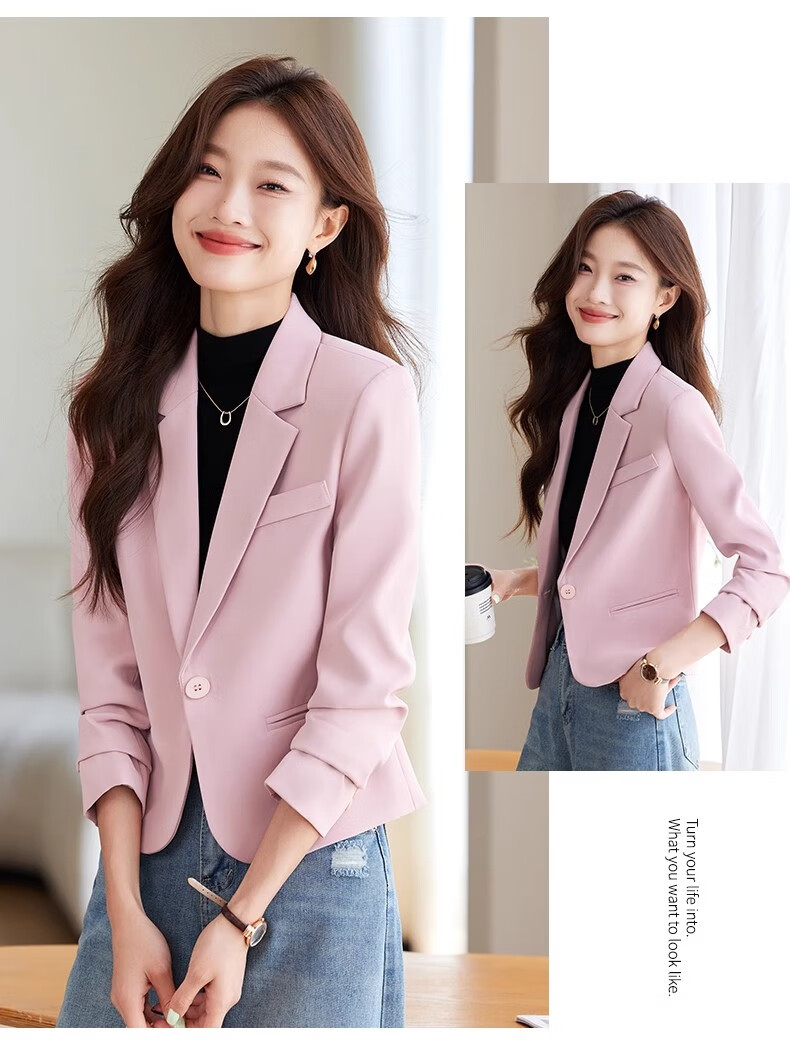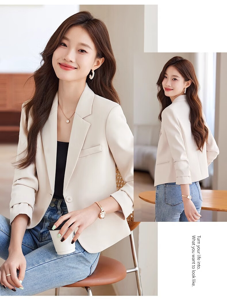 Jian Ting Spring and Autumn Fashion New Off-White Small Suit Jacket Women's Korean Slim Short Casual Small Suit Top Single Off-White Suit L