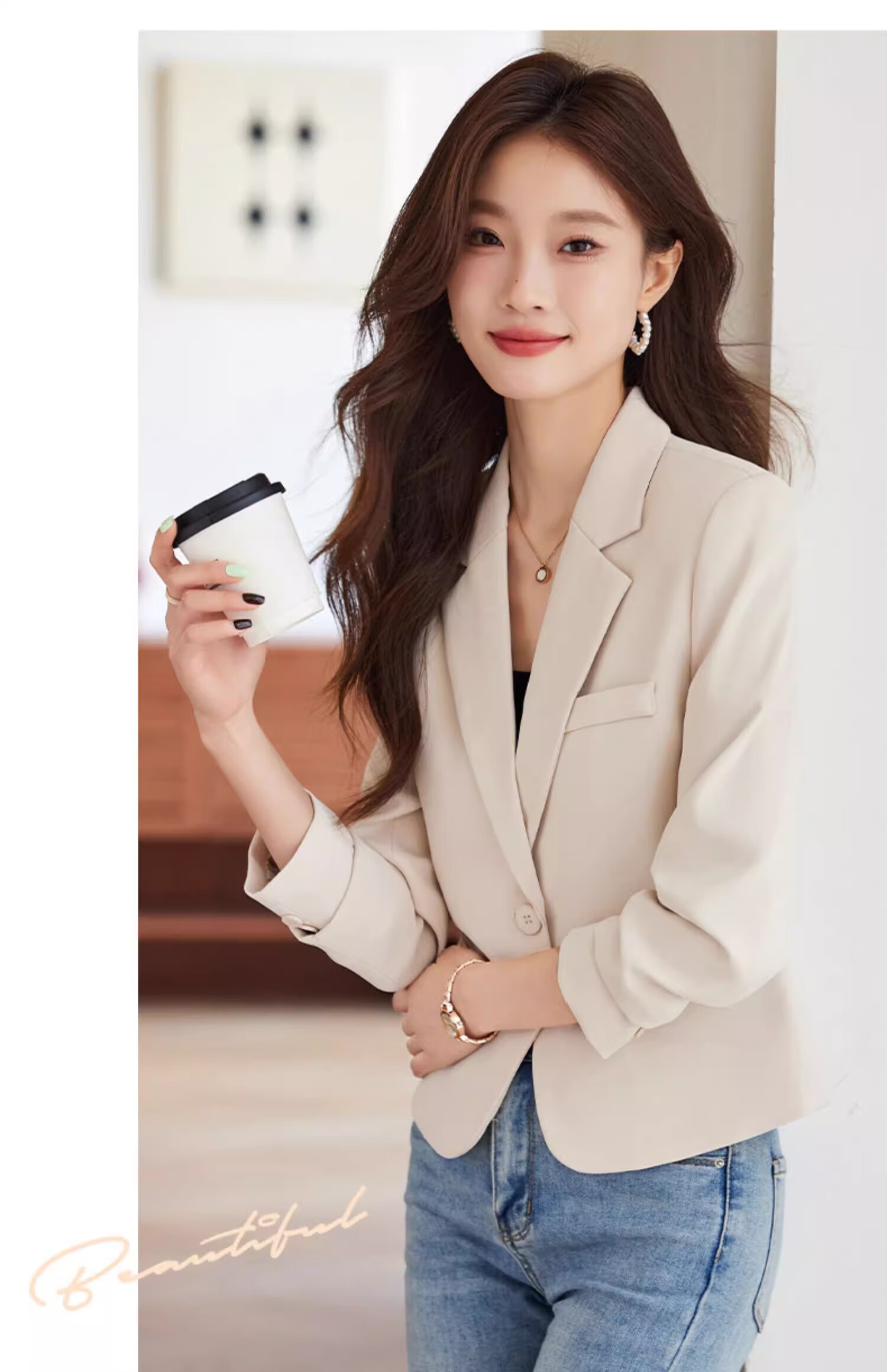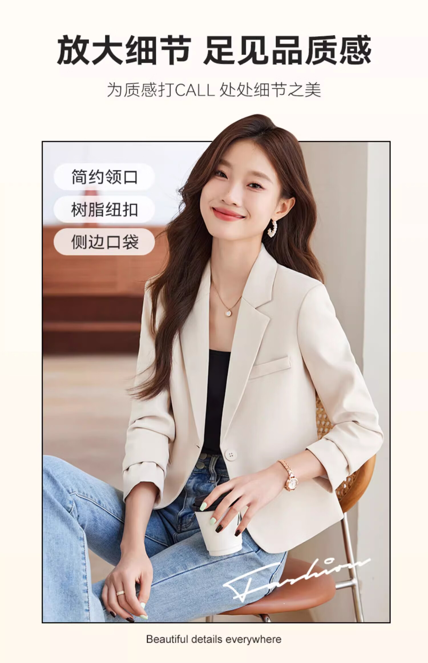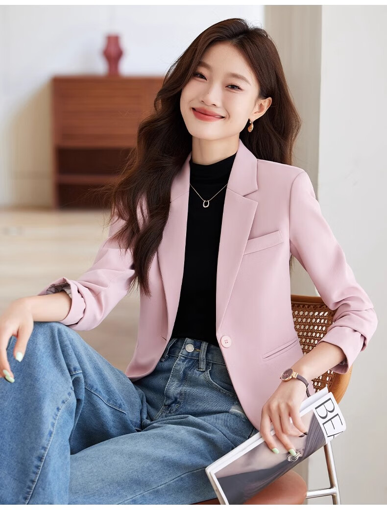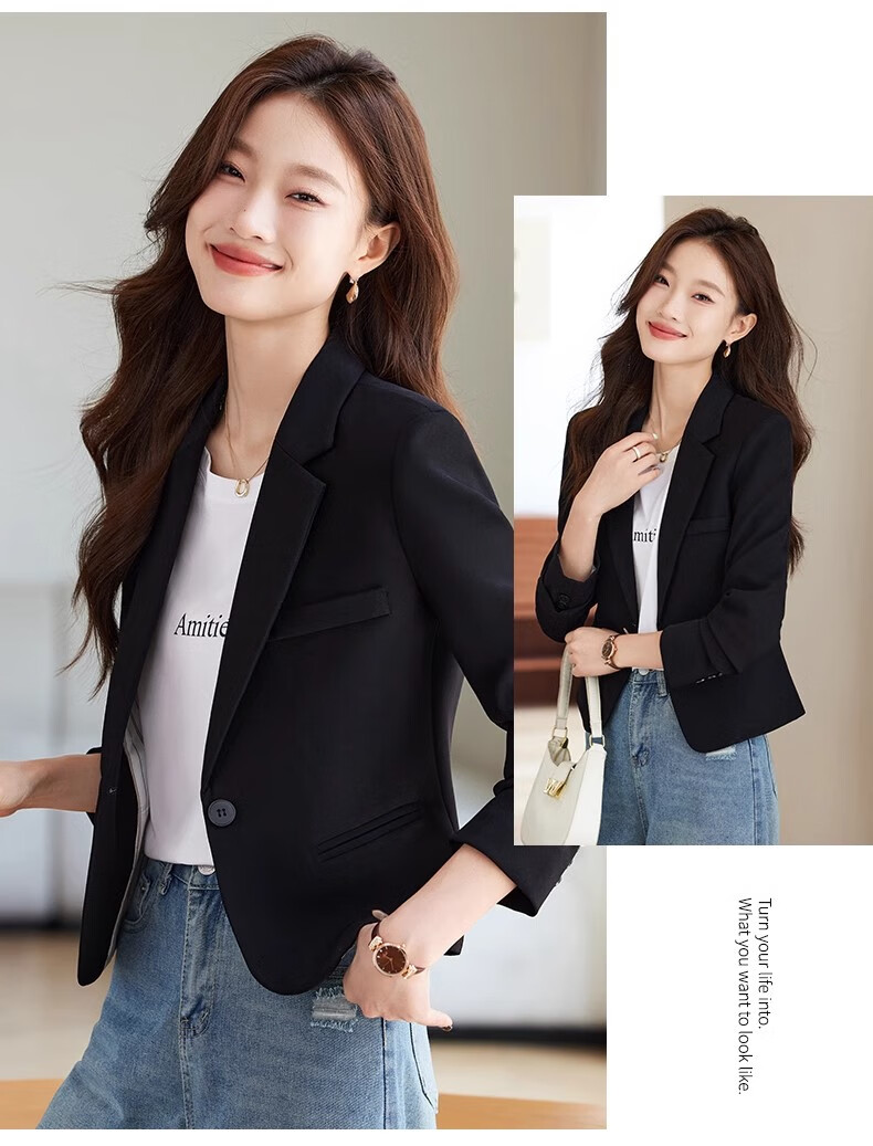 Jian Ting Spring and Autumn Fashion New Off-White Small Suit Jacket Women's Korean Slim Short Casual Small Suit Top Single Off-White Suit L