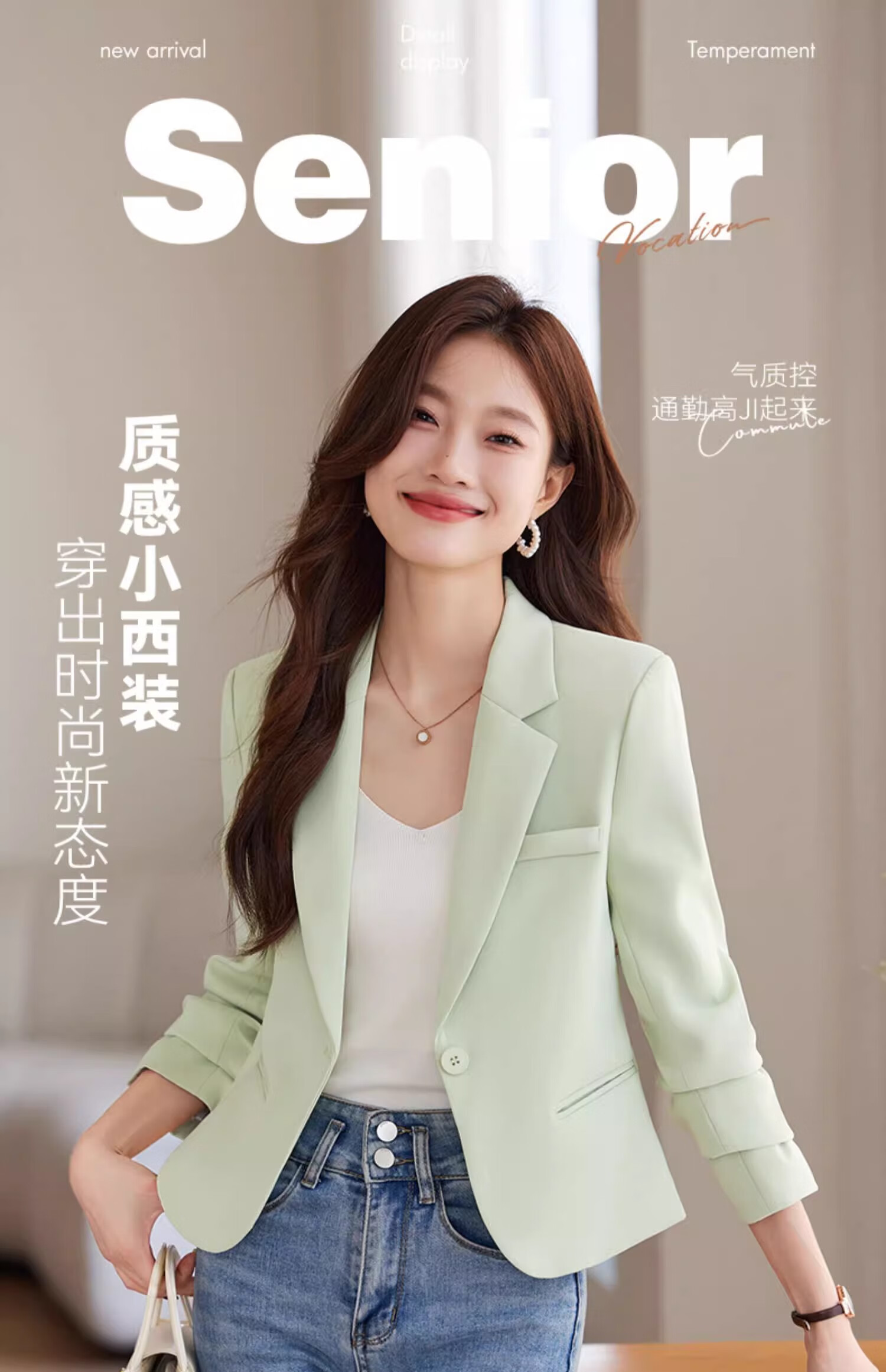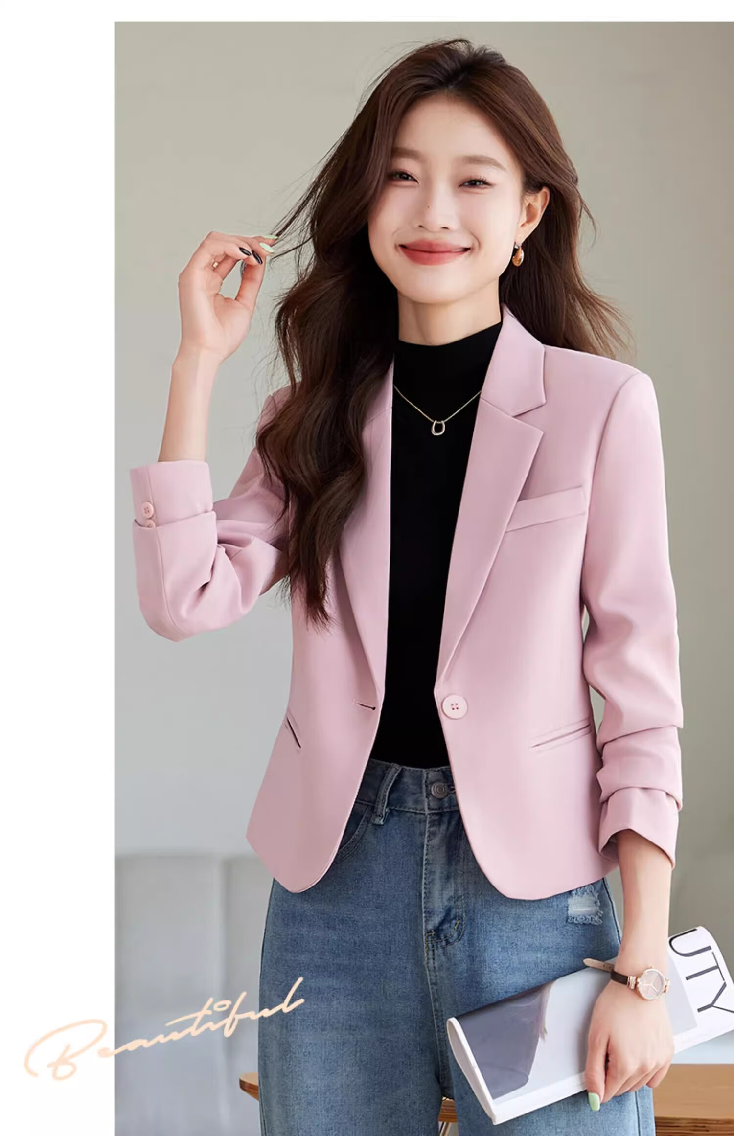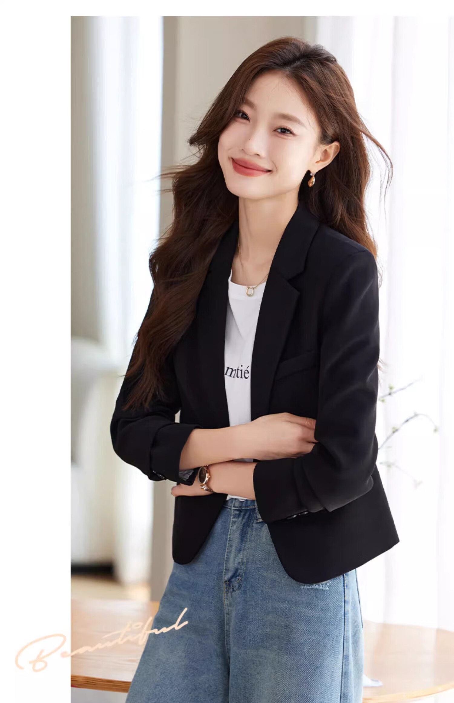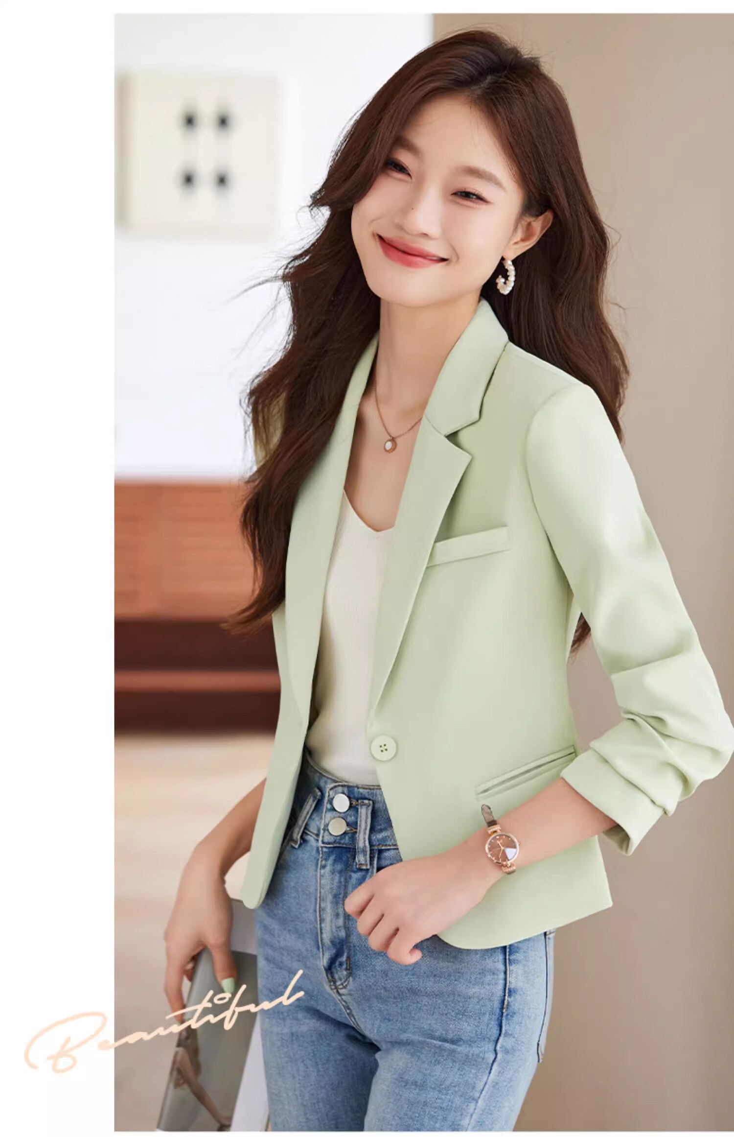 Jian Ting Spring and Autumn Fashion New Off-White Small Suit Jacket Women's Korean Slim Short Casual Small Suit Top Single Off-White Suit L