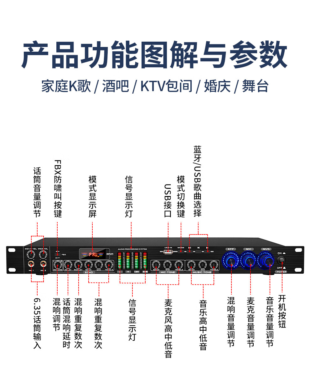 Depusheng Depusheng FX8 professional effector anti-howling KTV Bluetooth wireless microphone home feedback suppression audio set karaoke conference stage performance professional KTV anti-howling effector (with wireless microphone)