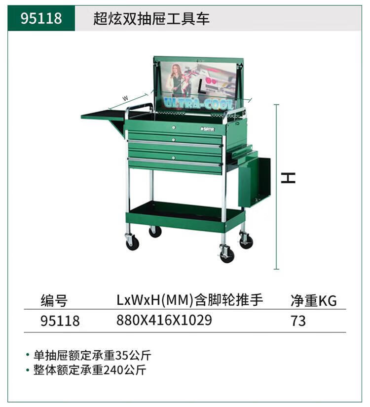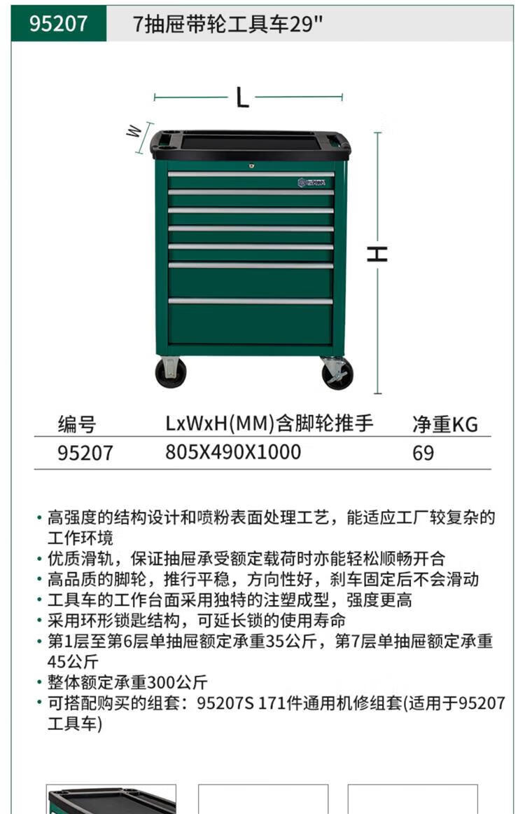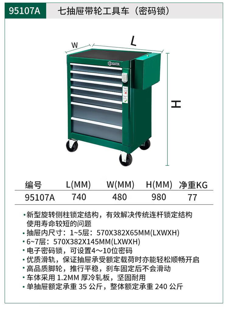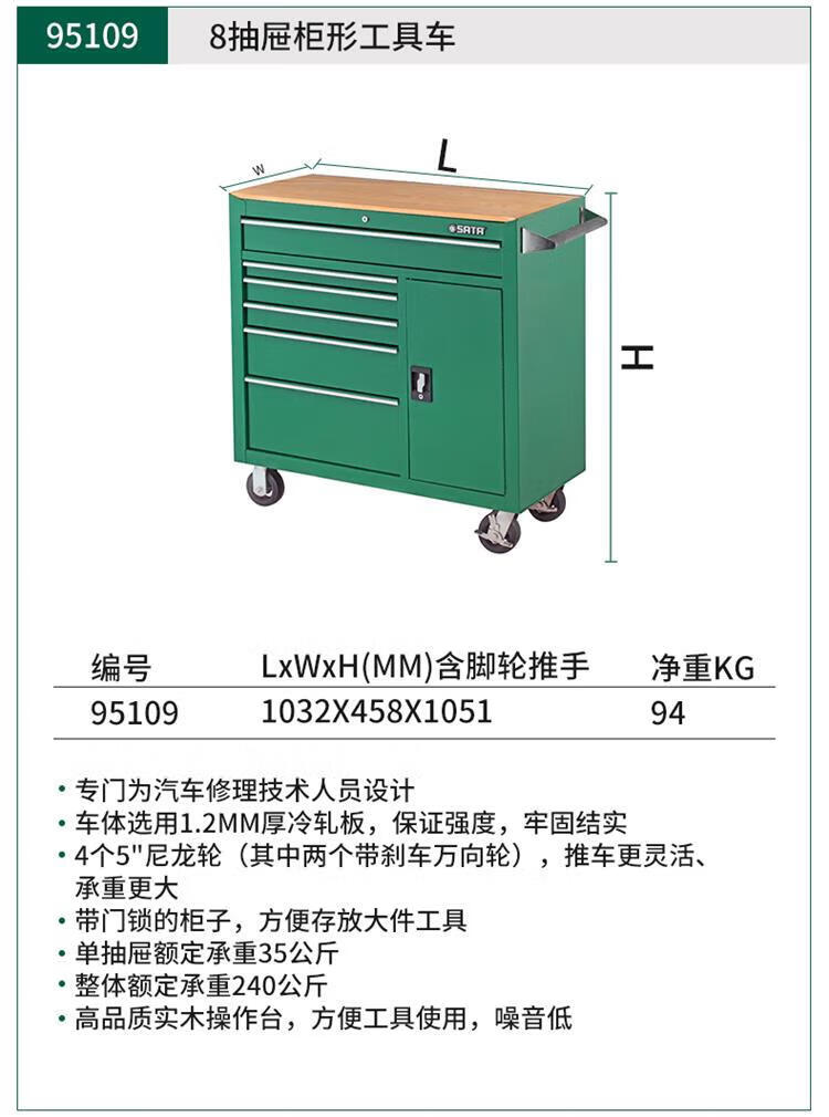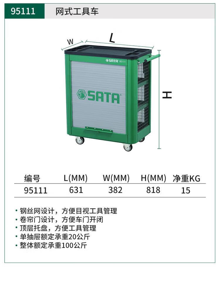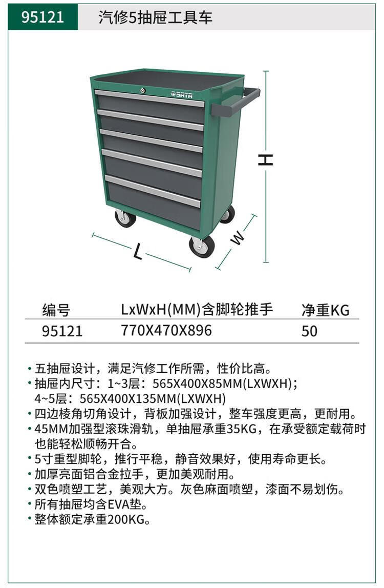 SATA tool cart drawer-type auto repair tool storage cabinet multi-functional mobile car repair hardware cabinet with wheels 95107/7 drawer tool cart