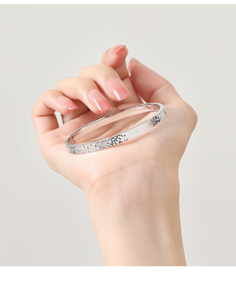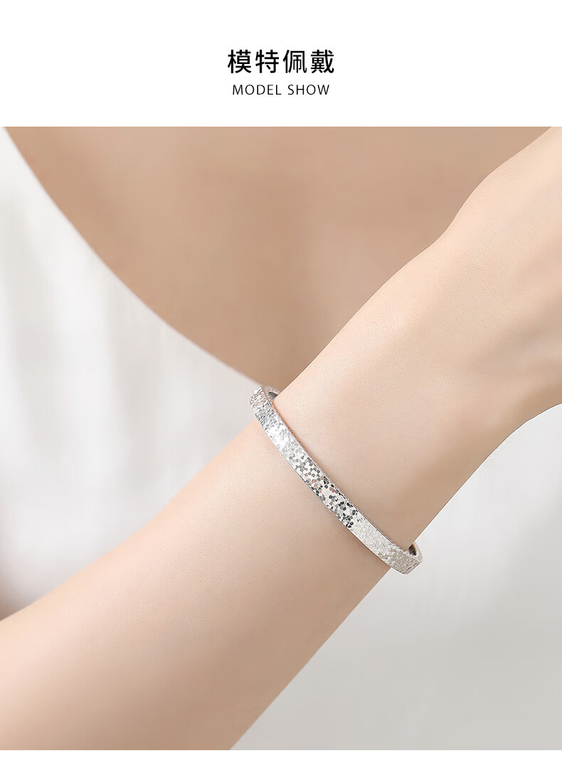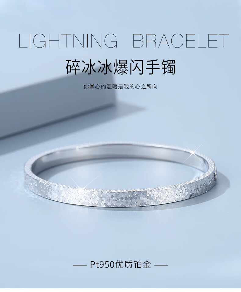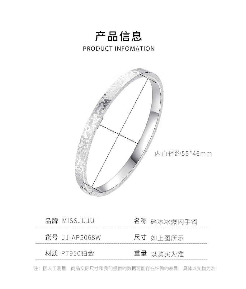 Miss JuJu pt950 platinum bracelet for women, platinum crushed ice bracelet, oval semi-solid royal concubine bracelet, inner diameter 58mm, weight 12.30g, thickness about 3.2mm