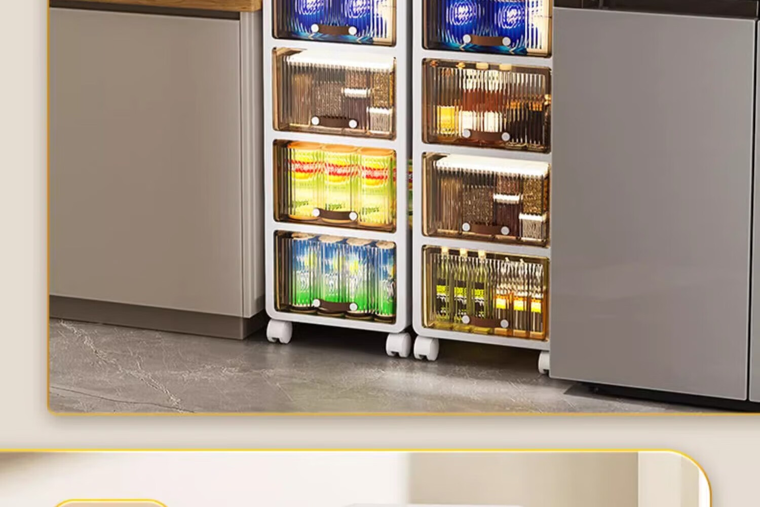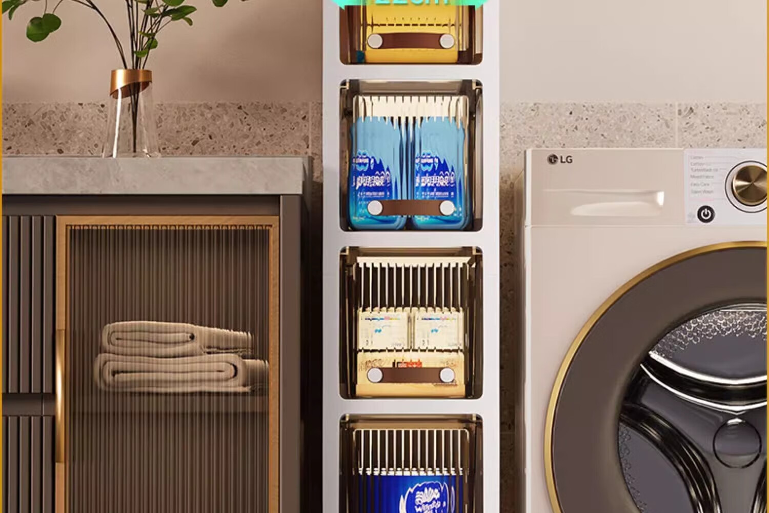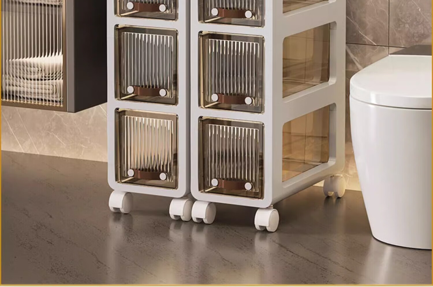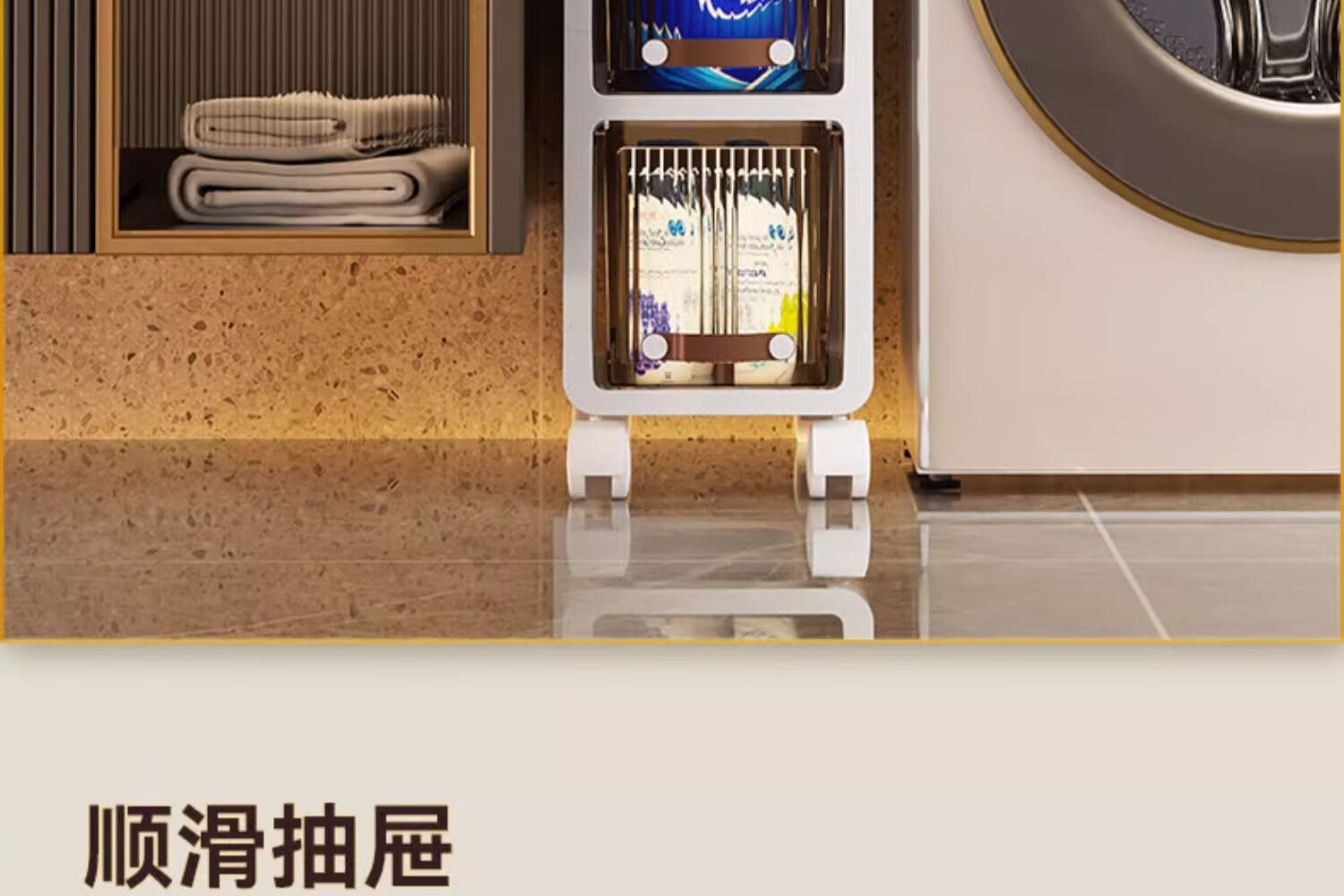 Hanlan sandwich storage cabinet drawer-type home multi-layer bathroom storage rack bathroom narrow gap installation-free kitchen storage cabinet 28cm wide - 4 layers leather handle - with pulleys