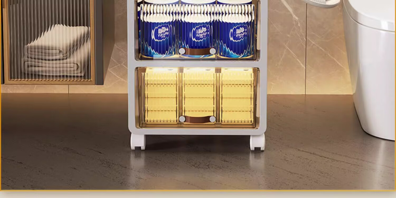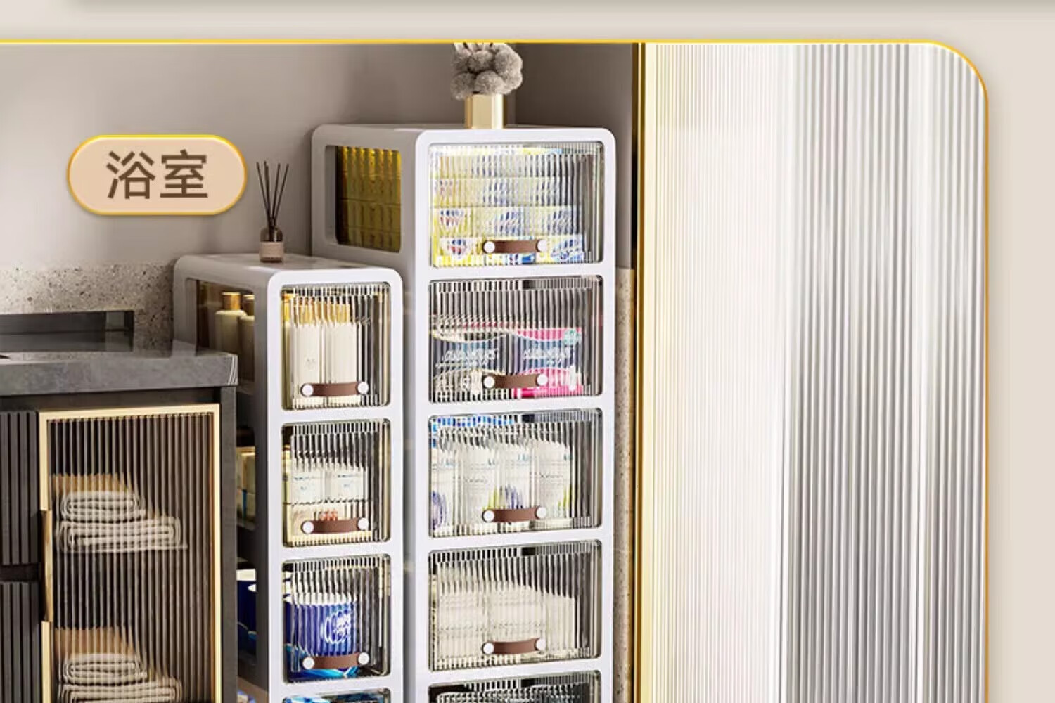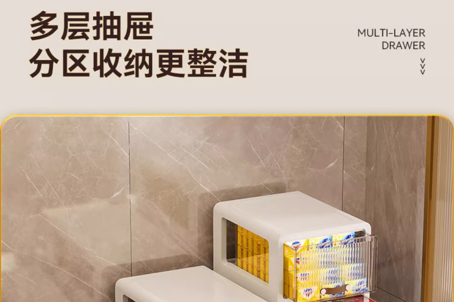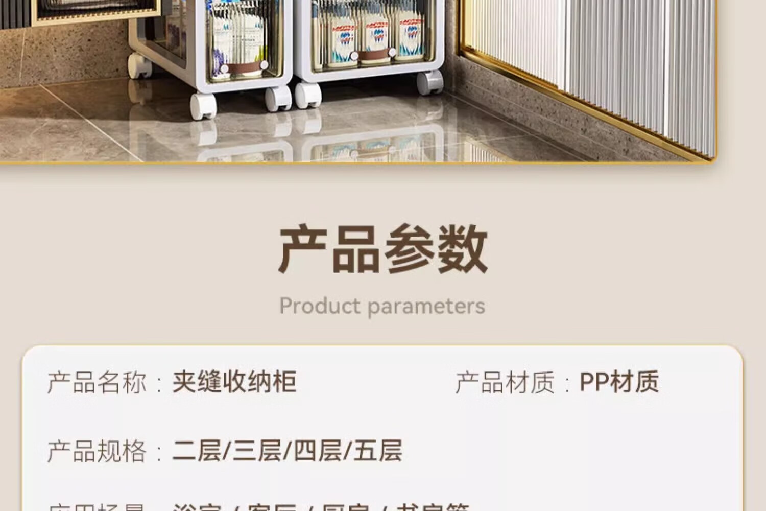 Hanlan sandwich storage cabinet drawer-type home multi-layer bathroom storage rack bathroom narrow gap installation-free kitchen storage cabinet 28cm wide - 4 layers leather handle - with pulleys