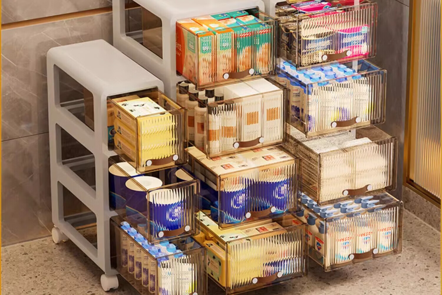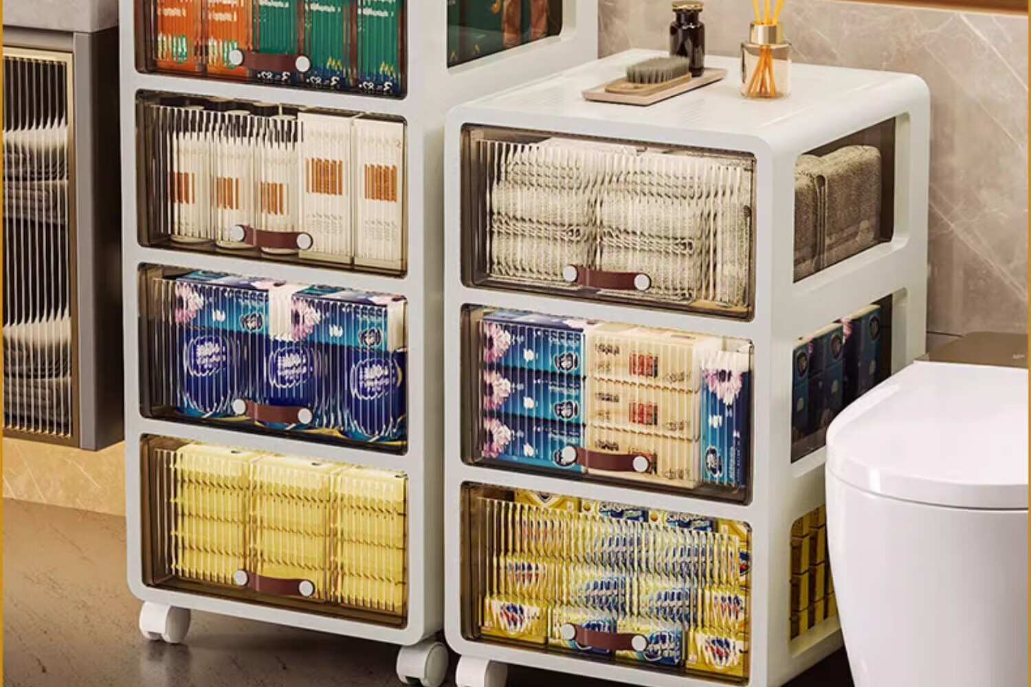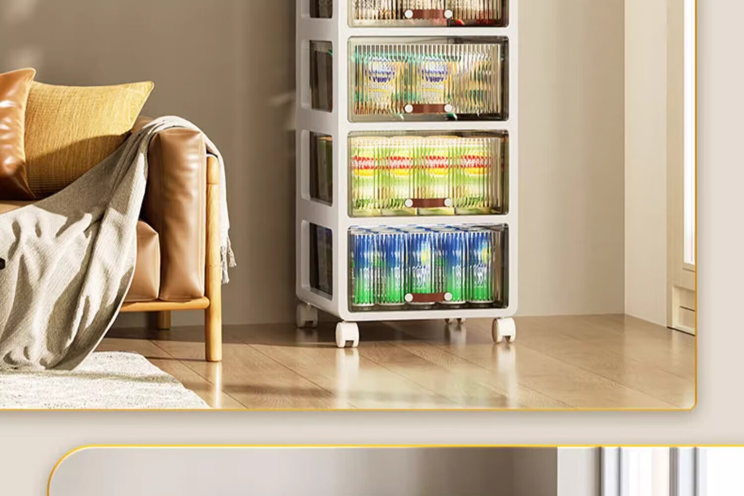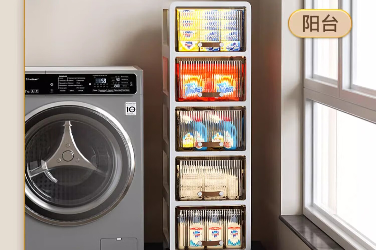 Hanlan sandwich storage cabinet drawer-type home multi-layer bathroom storage rack bathroom narrow gap installation-free kitchen storage cabinet 28cm wide - 4 layers leather handle - with pulleys
