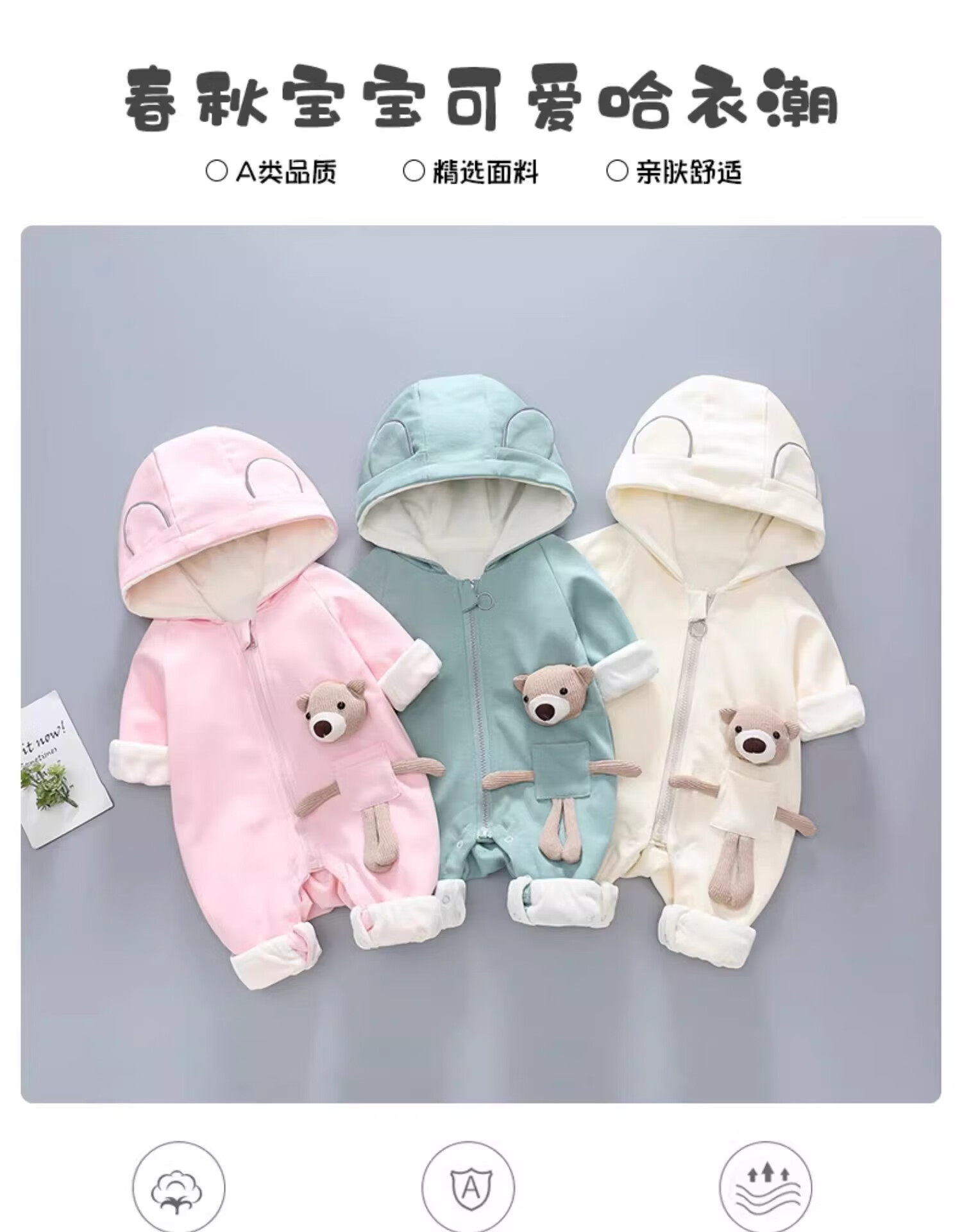 Wing Paper Kite Baby Clothes One-piece Autumn and Winter Outerwear Suit Newborn Plush Jacket Spring and Autumn Baby Clothes for Men Apricot Spring and Autumn Plus Velvet 73cm