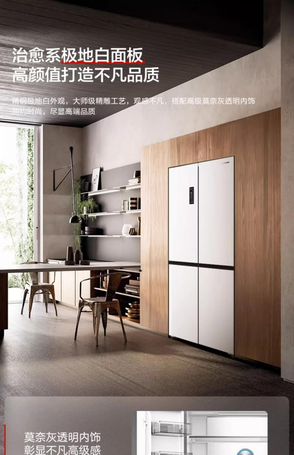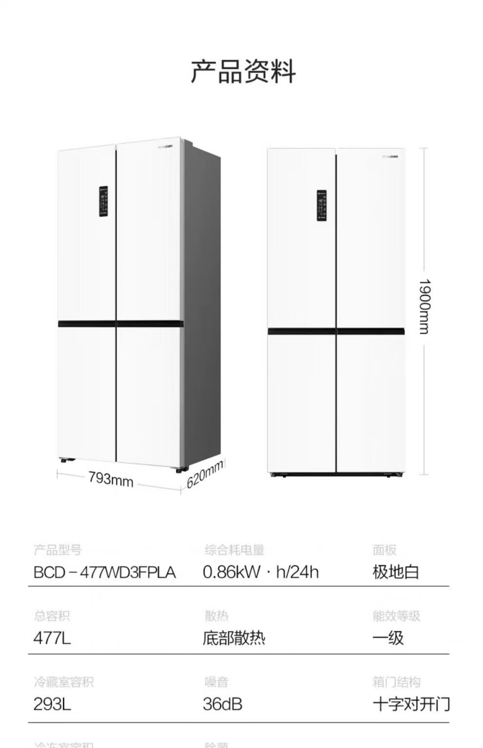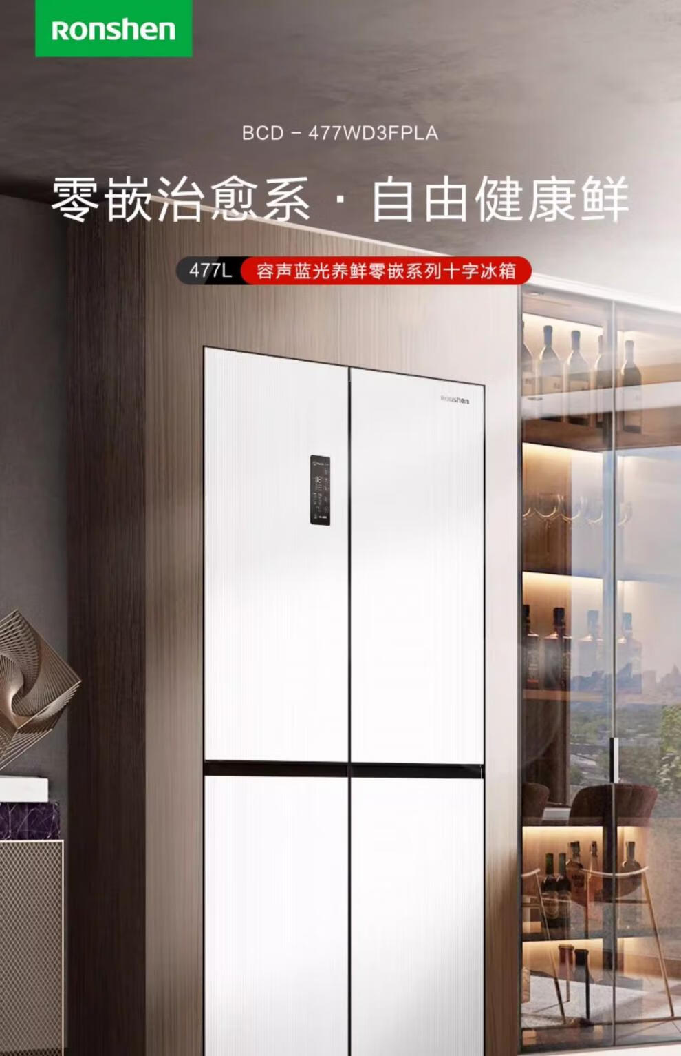 Rongsheng 477L cross-fold built-in first-class air-cooled frost-free white refrigerator BCD-477WD3FPLA white