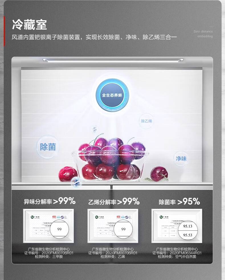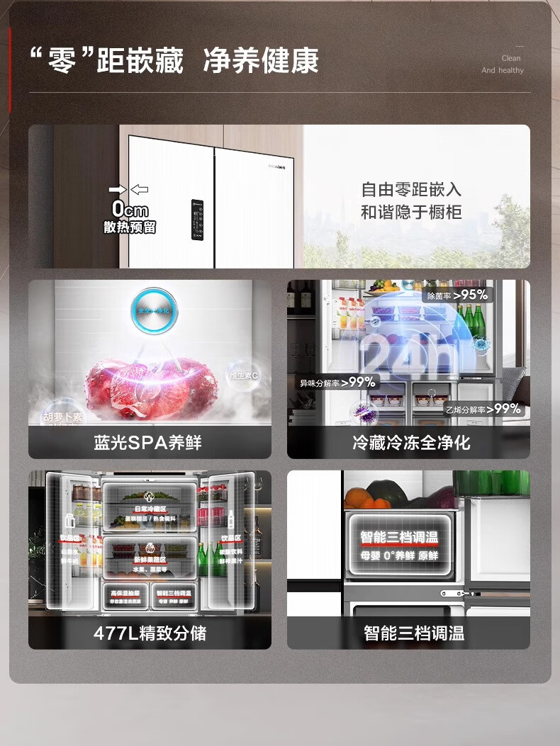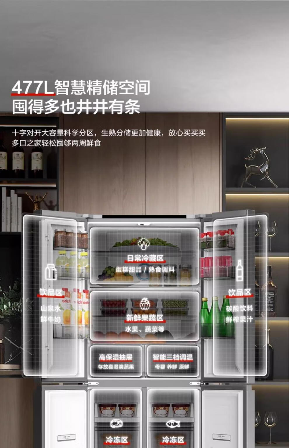 Rongsheng 477L cross-fold built-in first-class air-cooled frost-free white refrigerator BCD-477WD3FPLA white
