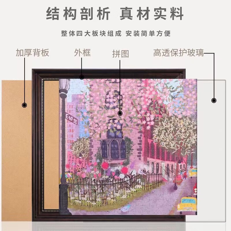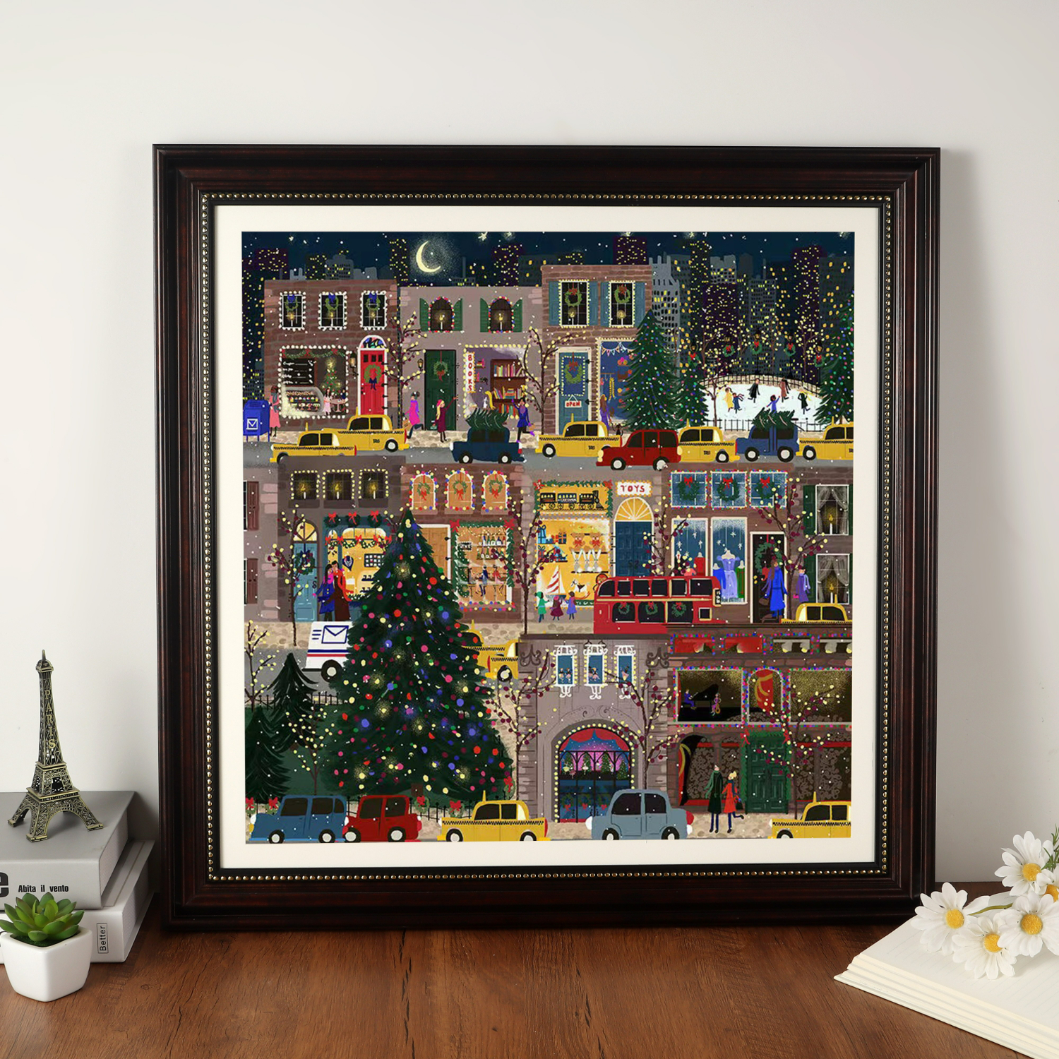 500-piece Christmas winter lights puzzle 50.8*50.8 cm galison picture frame custom square photo frame European retro coffee color (puzzle full floor)