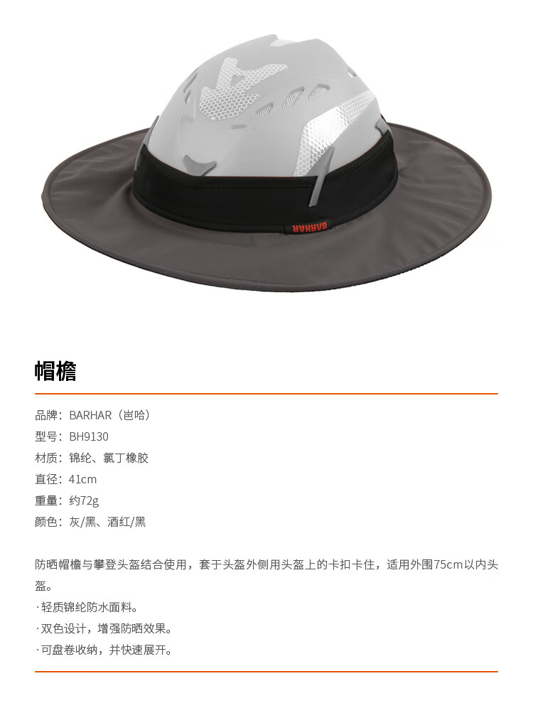 BARHAR hat brim folding outdoor sun protection waterproof visor hat adventure caving rock climbing canyoning climbing gray/black