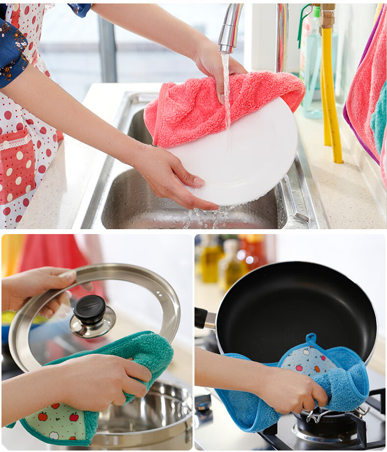 Bei Jingjie kitchen hand towel hanging cute towel rag can absorb water for home bathroom thickened handcloth handkerchief coral velvet cute hanging hand towel 3 random colors