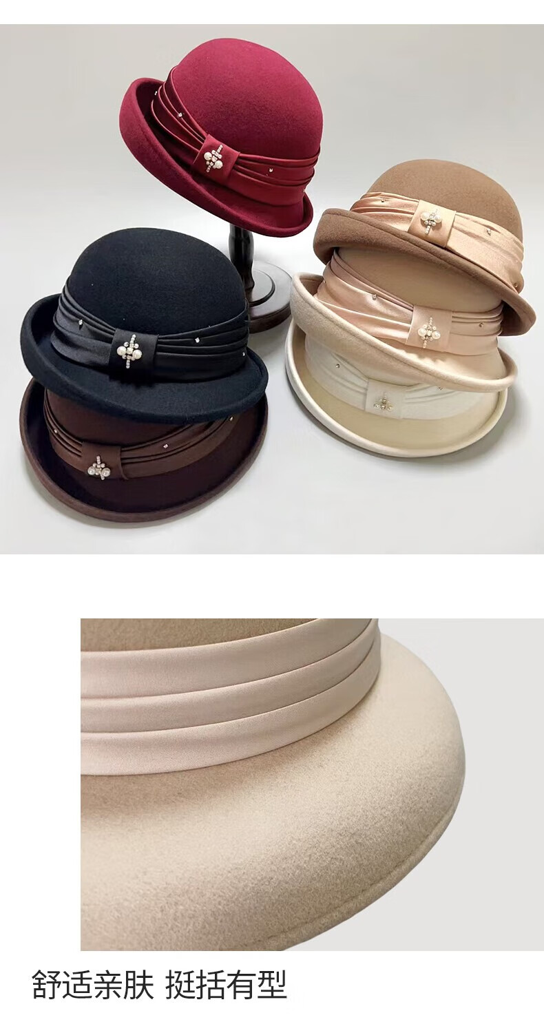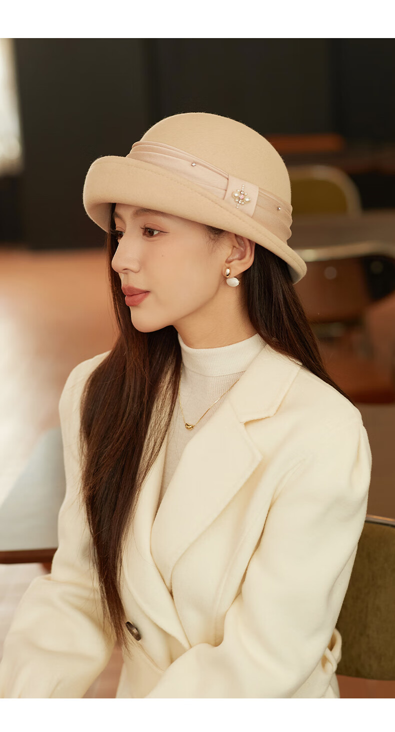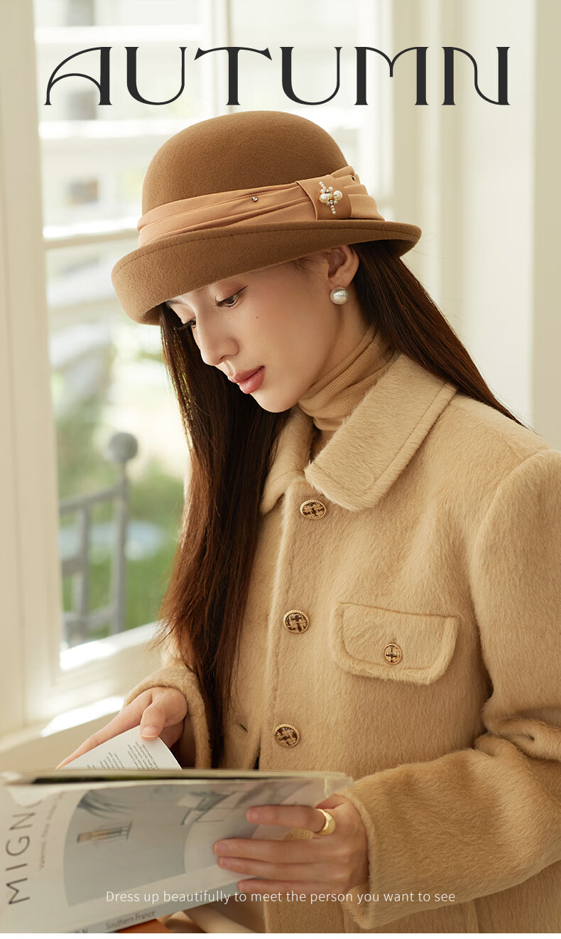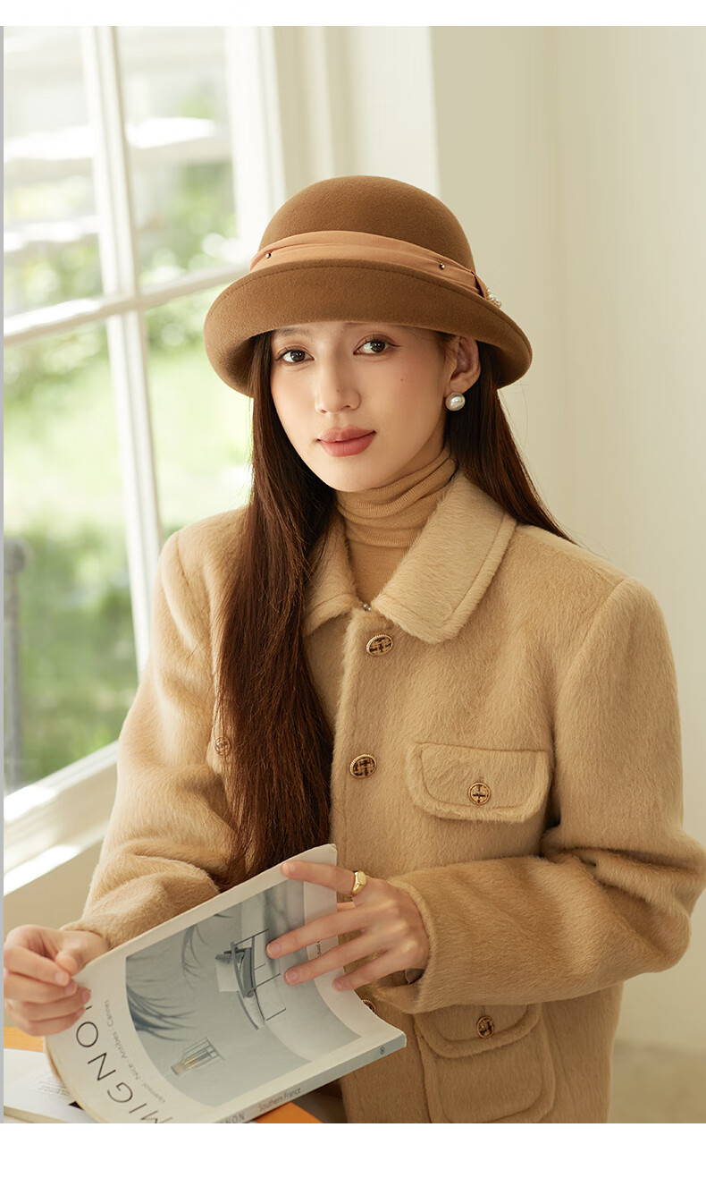 Xiangxue Yuxiu high-end French wool hat for women autumn and winter 2025 new elegant versatile felt hat Hepburn style face-showing small hat for women camel M (56-58cm)