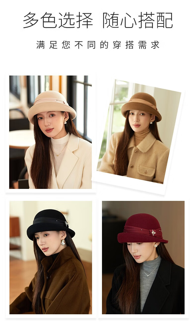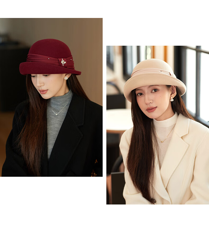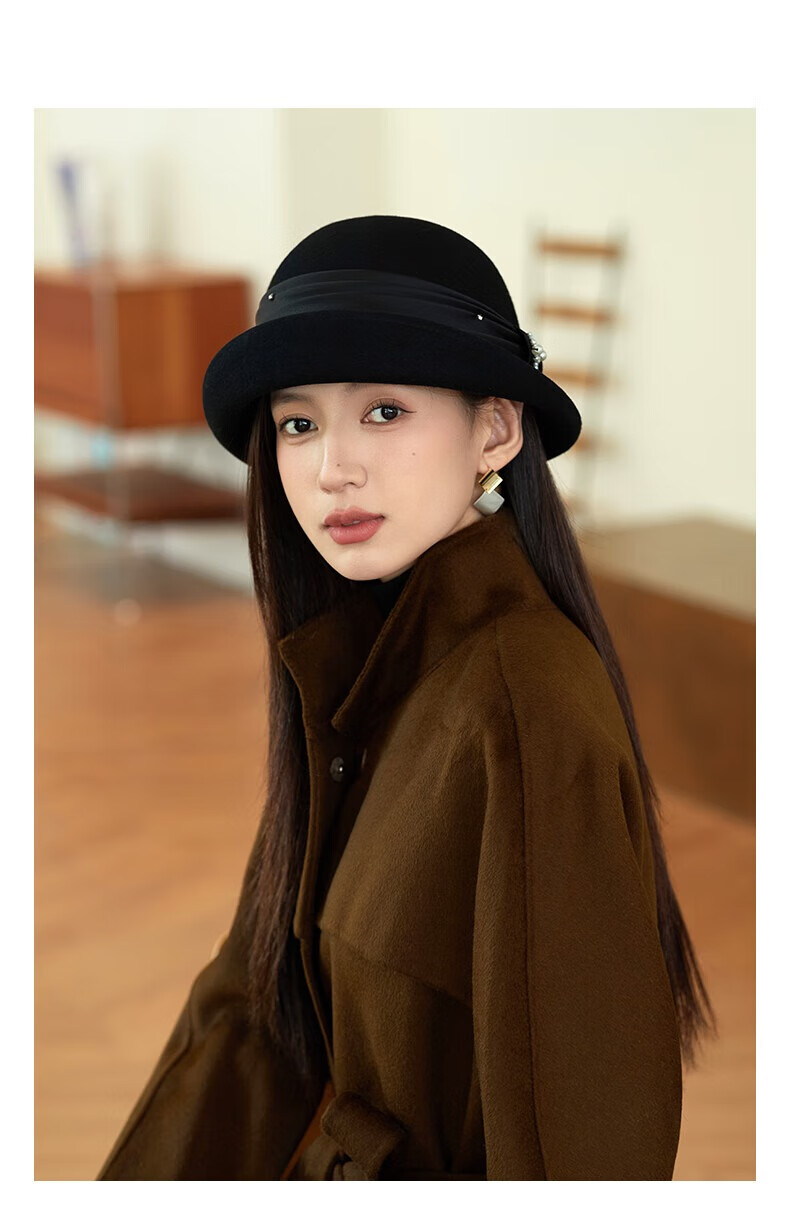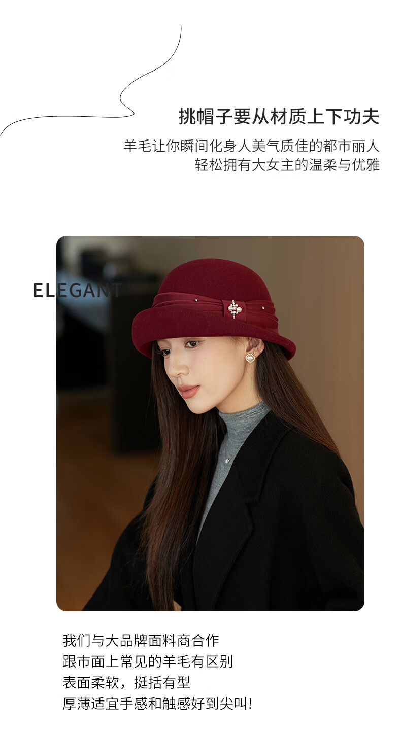 Xiangxue Yuxiu high-end French wool hat for women autumn and winter 2025 new elegant versatile felt hat Hepburn style face-showing small hat for women camel M (56-58cm)