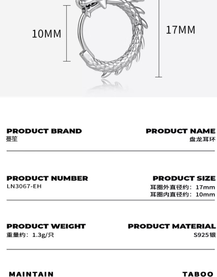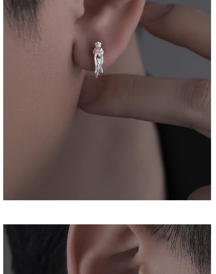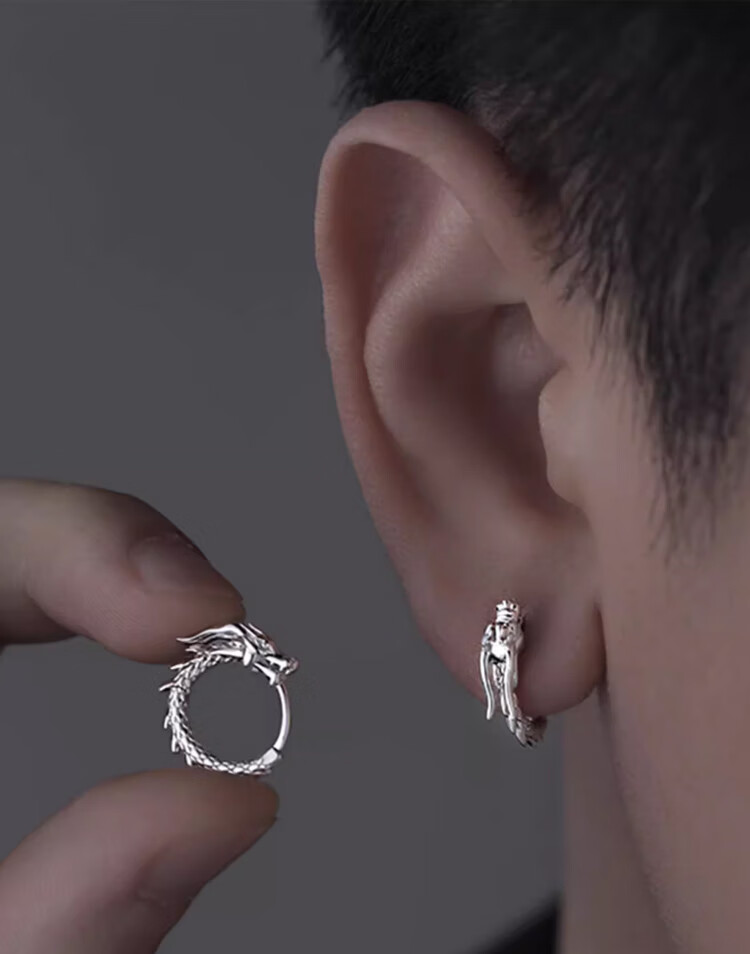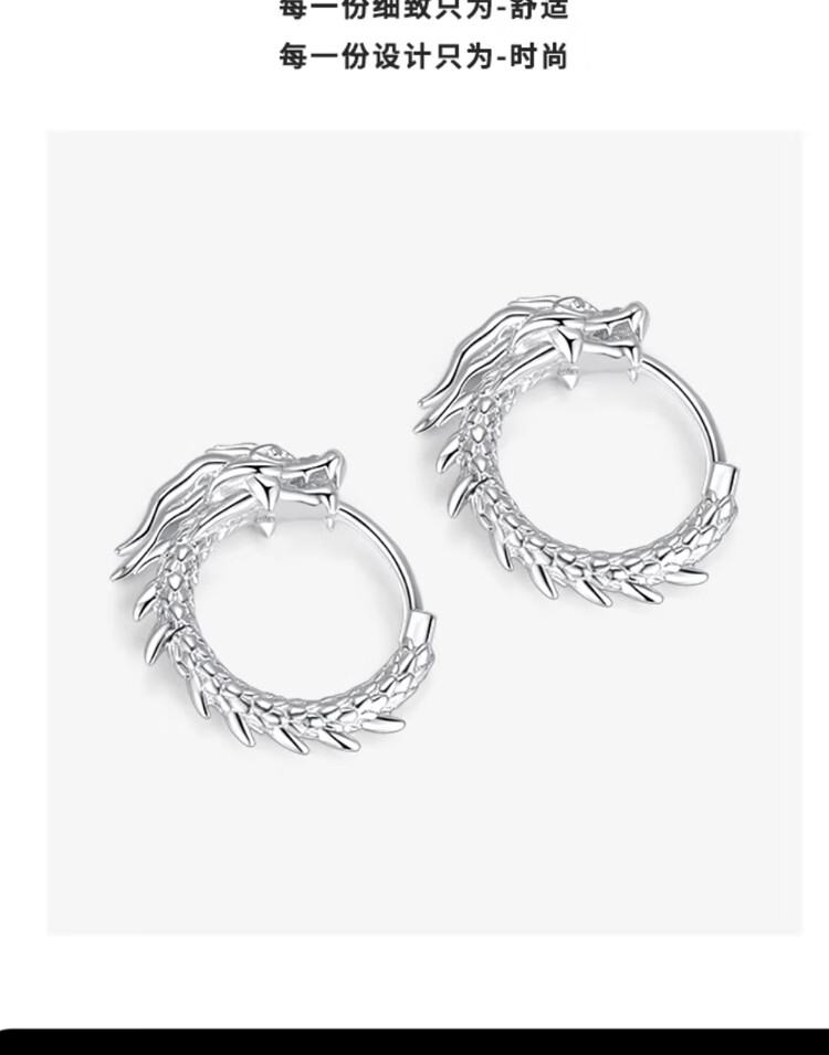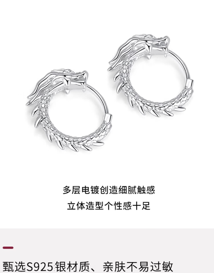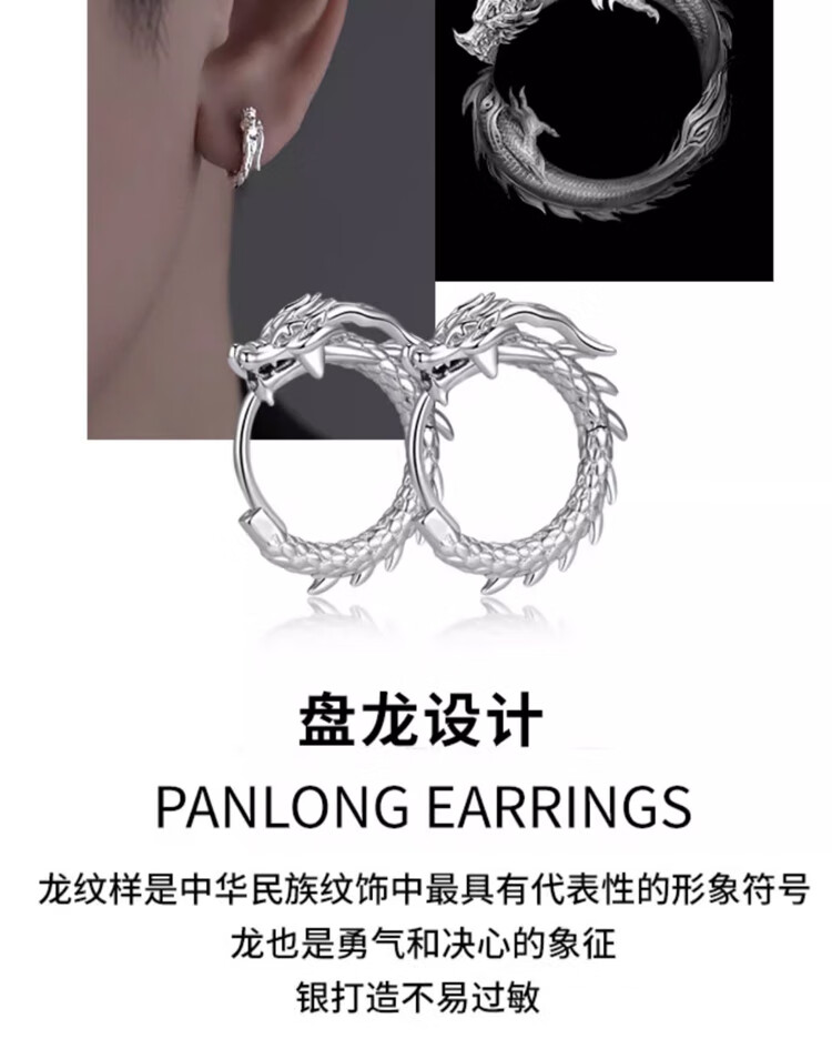 Mansheng pure 925 silver earrings men's high-end coiled dragon earrings for boys new Chinese style women's earrings 2026 new earrings 925 silver coiled dragon ear buckle single