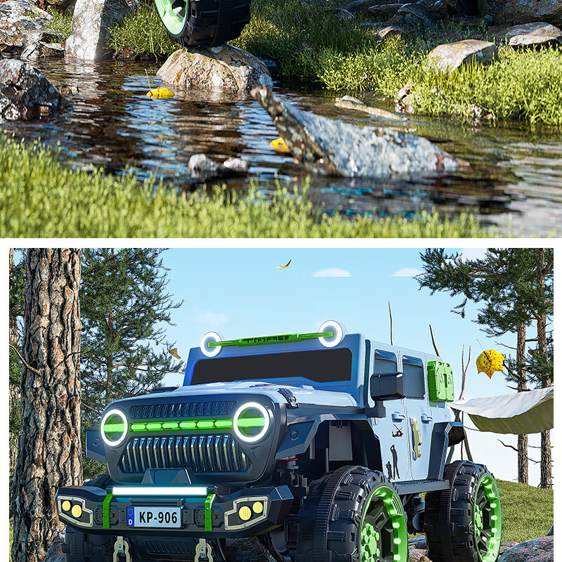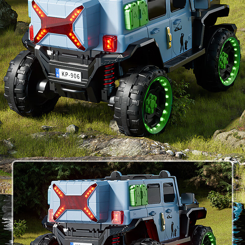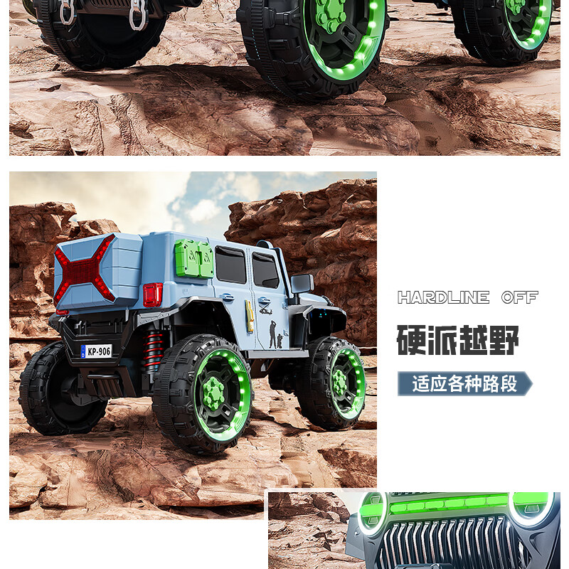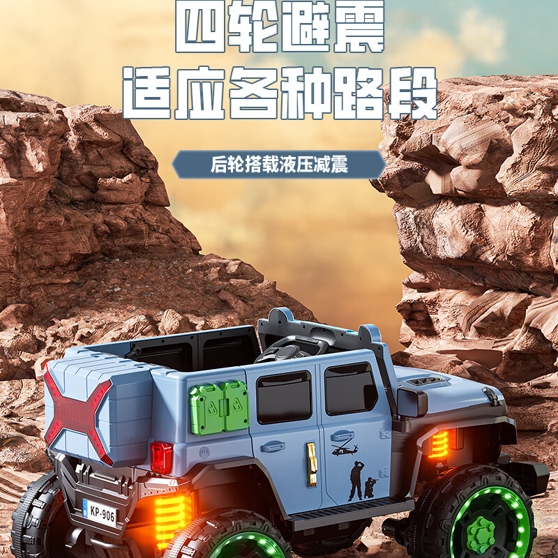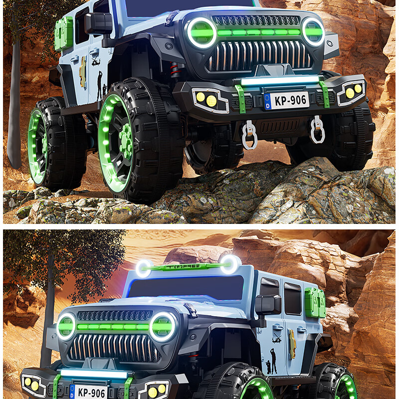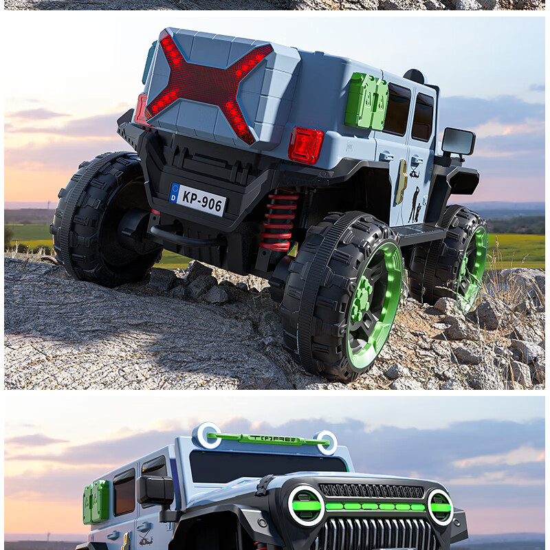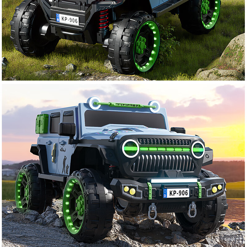 Jazz Coolpad children's electric car with four wheels and dual batteries can sit on an adult off-road vehicle. Remote control car for boys and girls. It can be used as a toy car for boys and girls. Gray + two 12v14 Chaowei batteries + 550 motor. Luminous soft tires + shock absorbers + soft seats + full functions.
