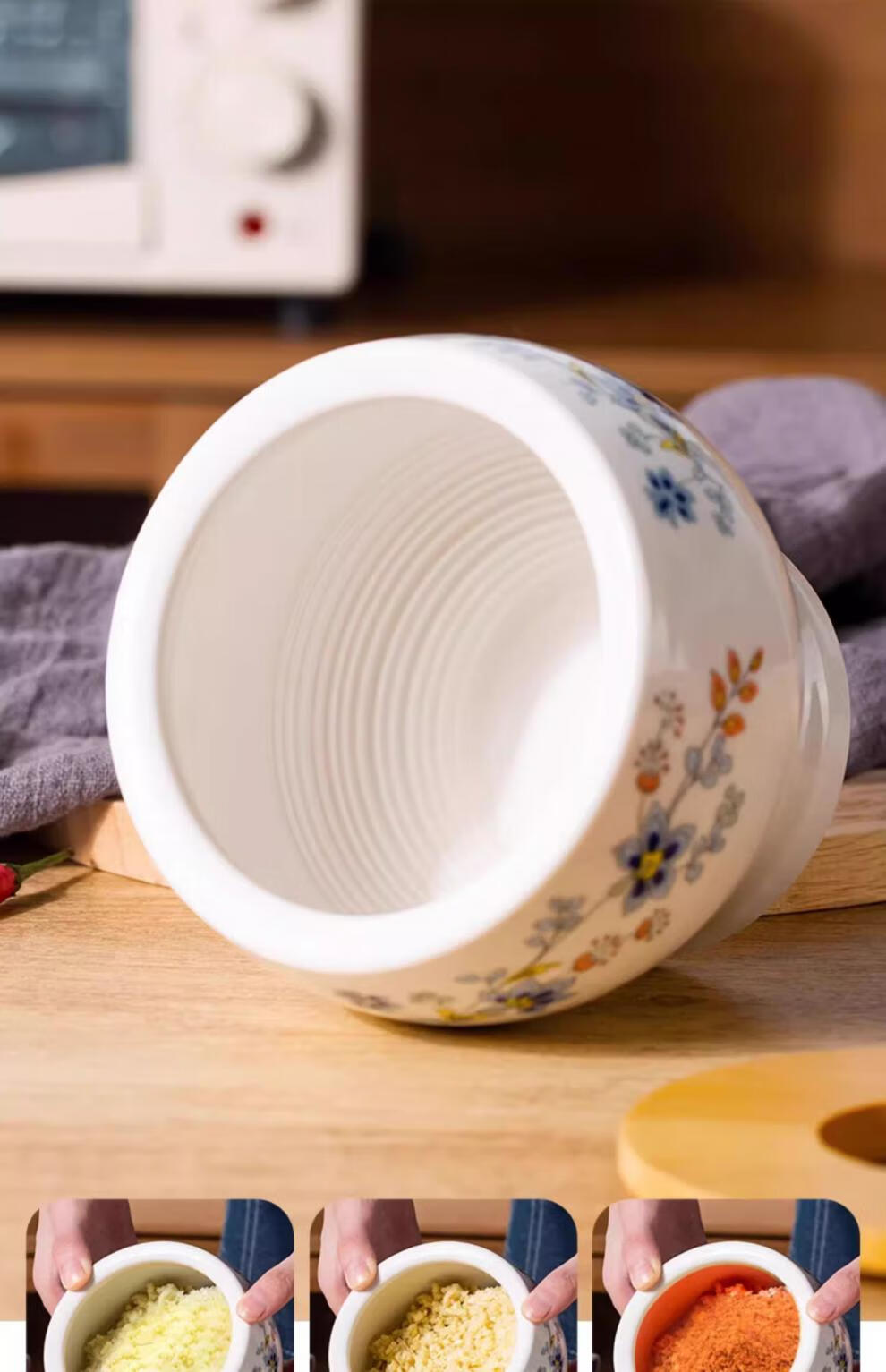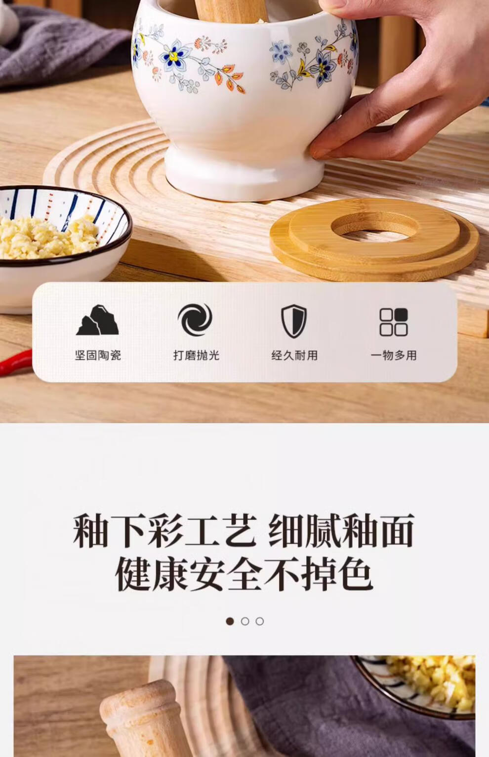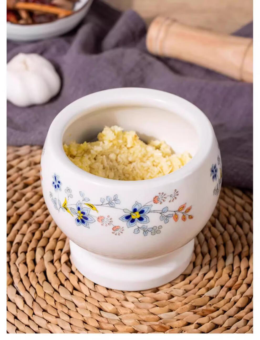 CLCEY garlic mortar household ceramic garlic mortar artifact manual mortar chili garlic masher stone mortar old-fashioned mortar masher Chunhuiman ceramic garlic masher-400ml + wooden